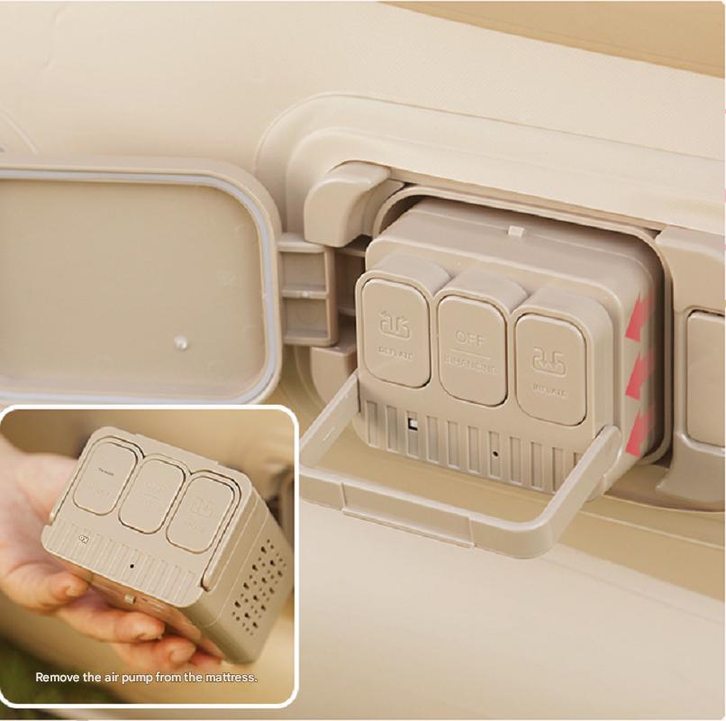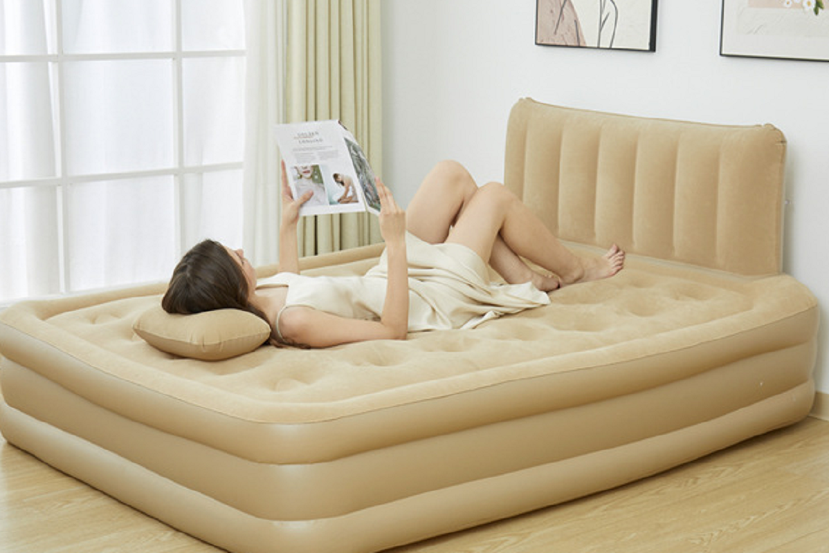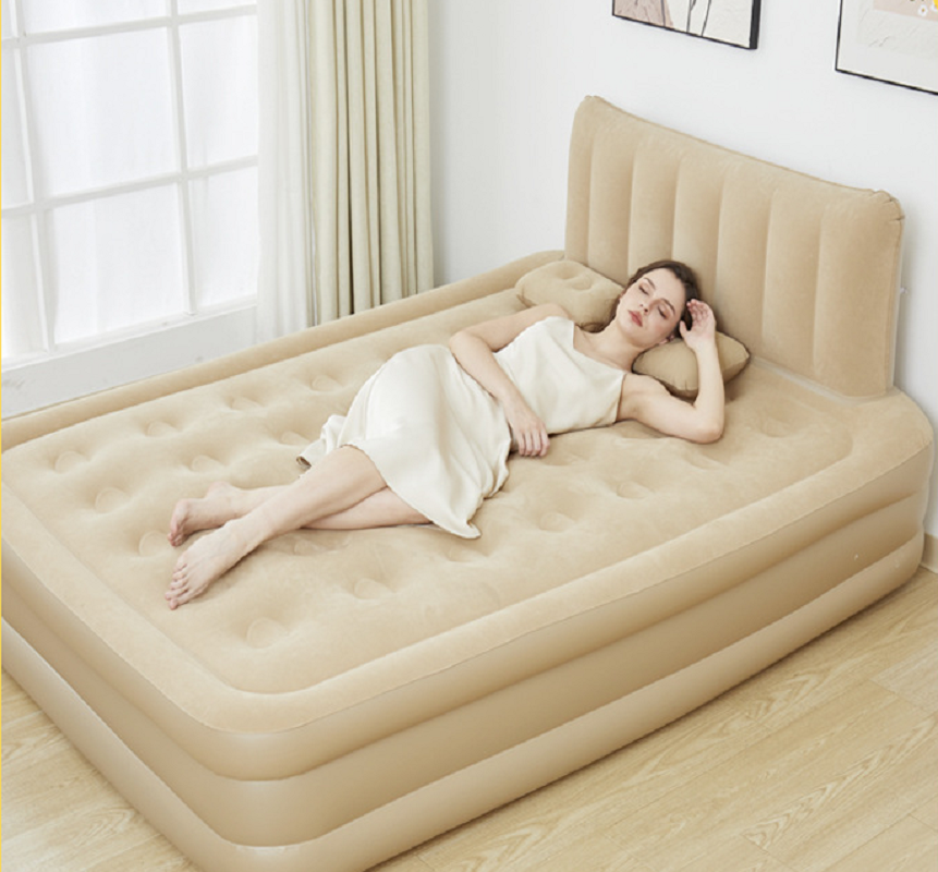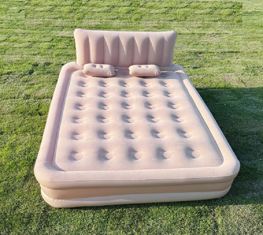 Flocking Fabric & PVC triple layer & foldable Inflatable Bed Mattress portable & with electric air pump & thicken Solid beige PC