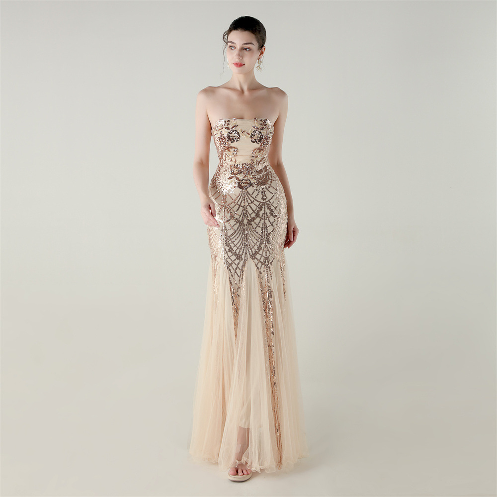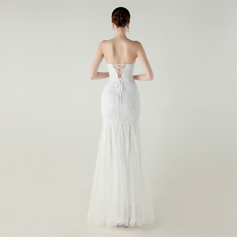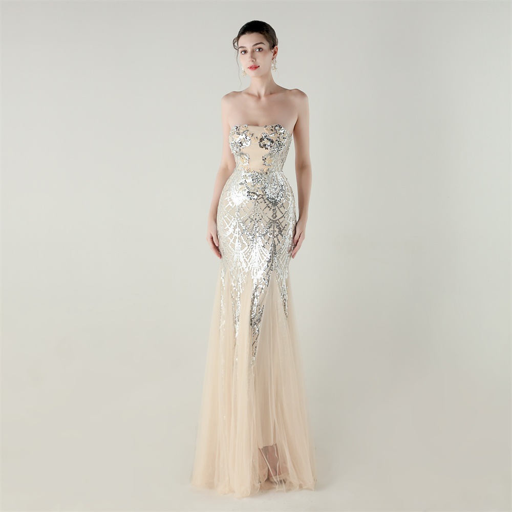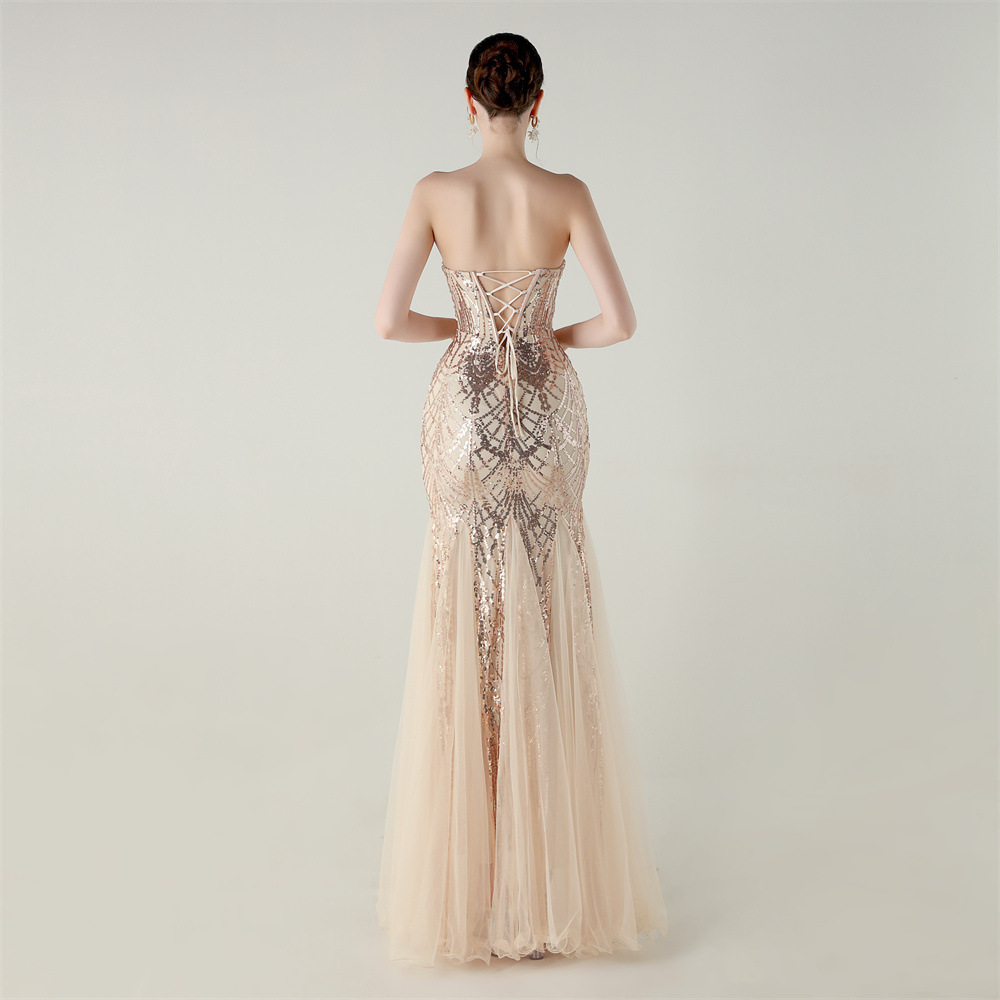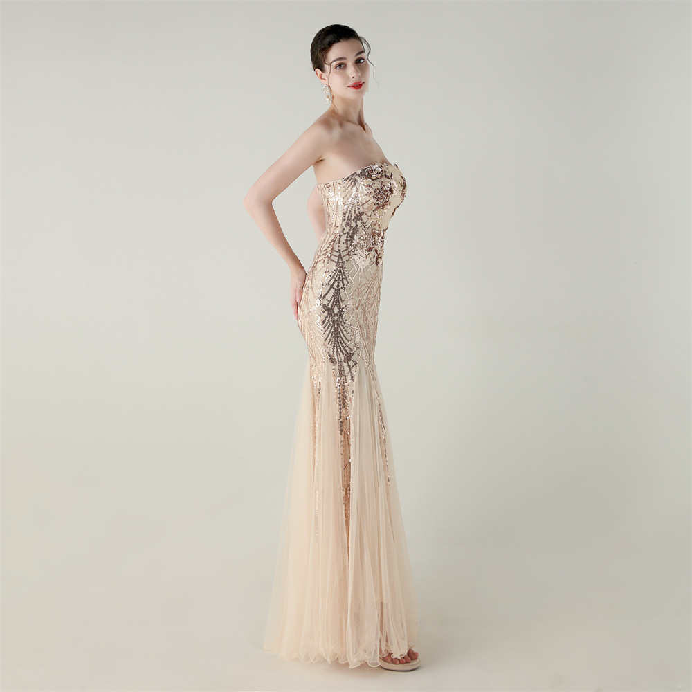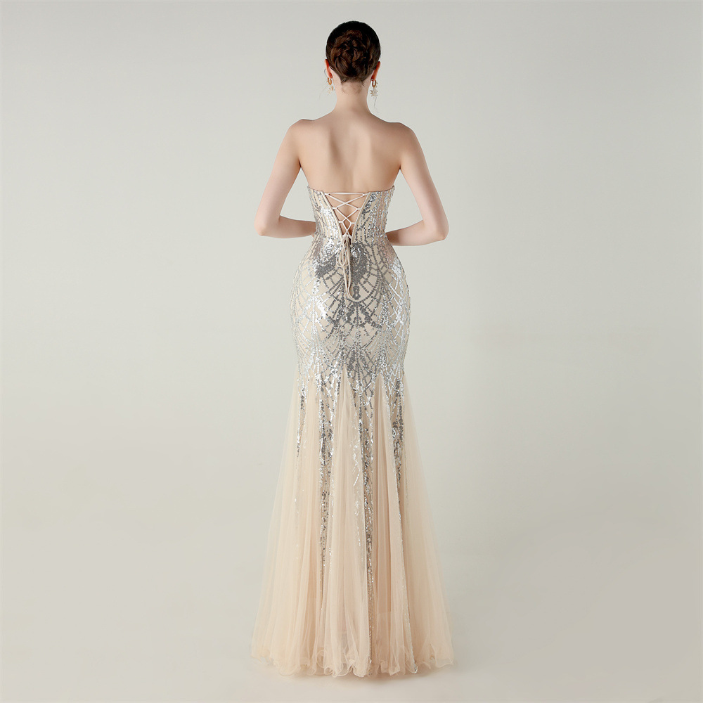 Gauze & Polyester Soft & Slim Long Evening Dress backless Sequin embroidered :XXL PC