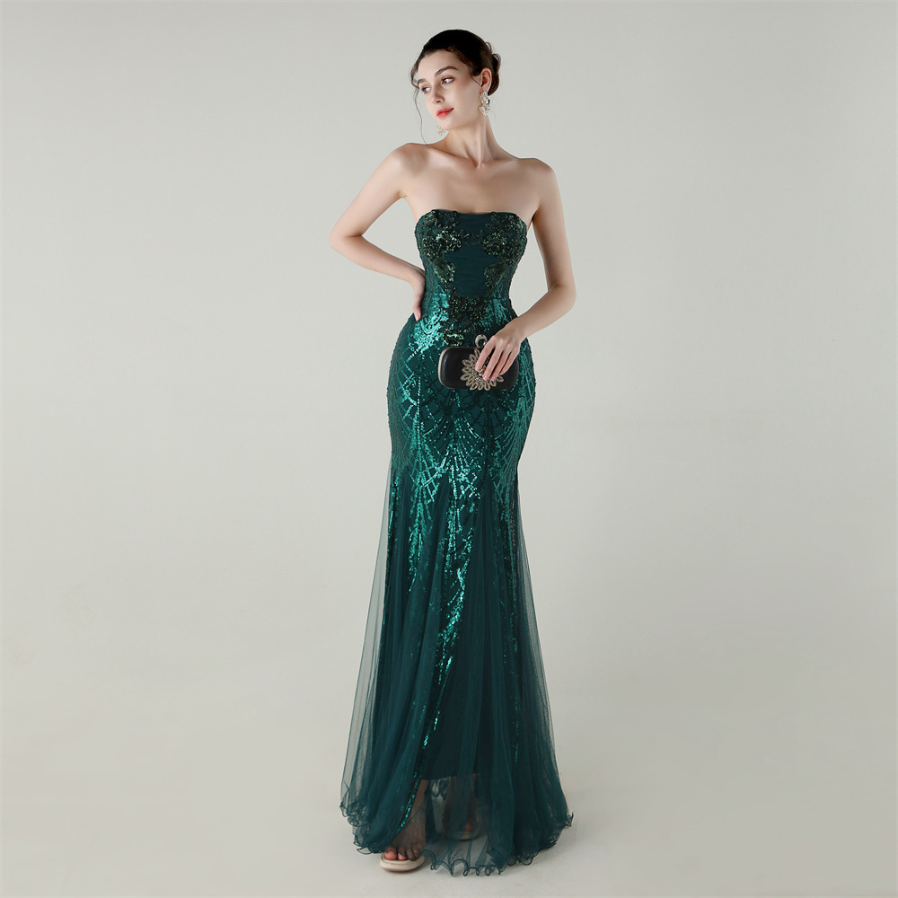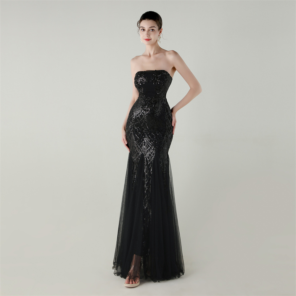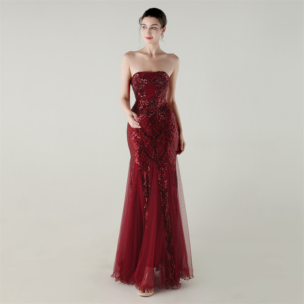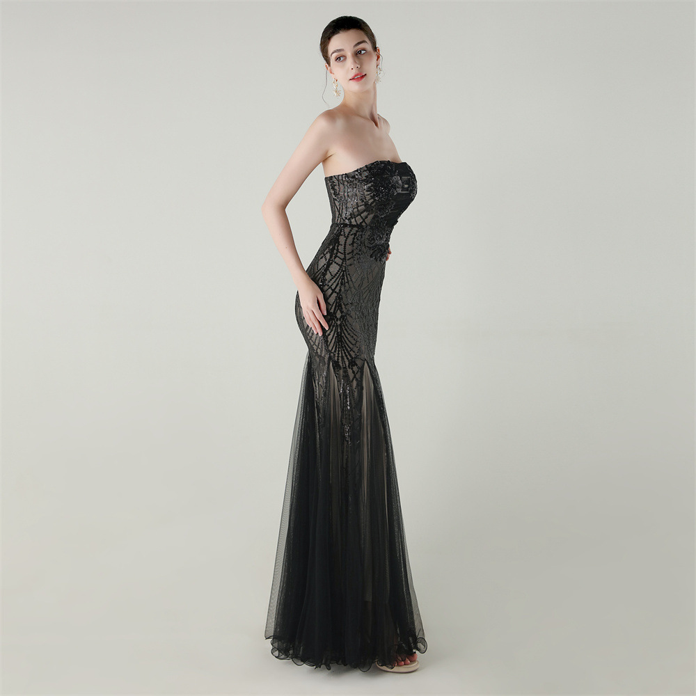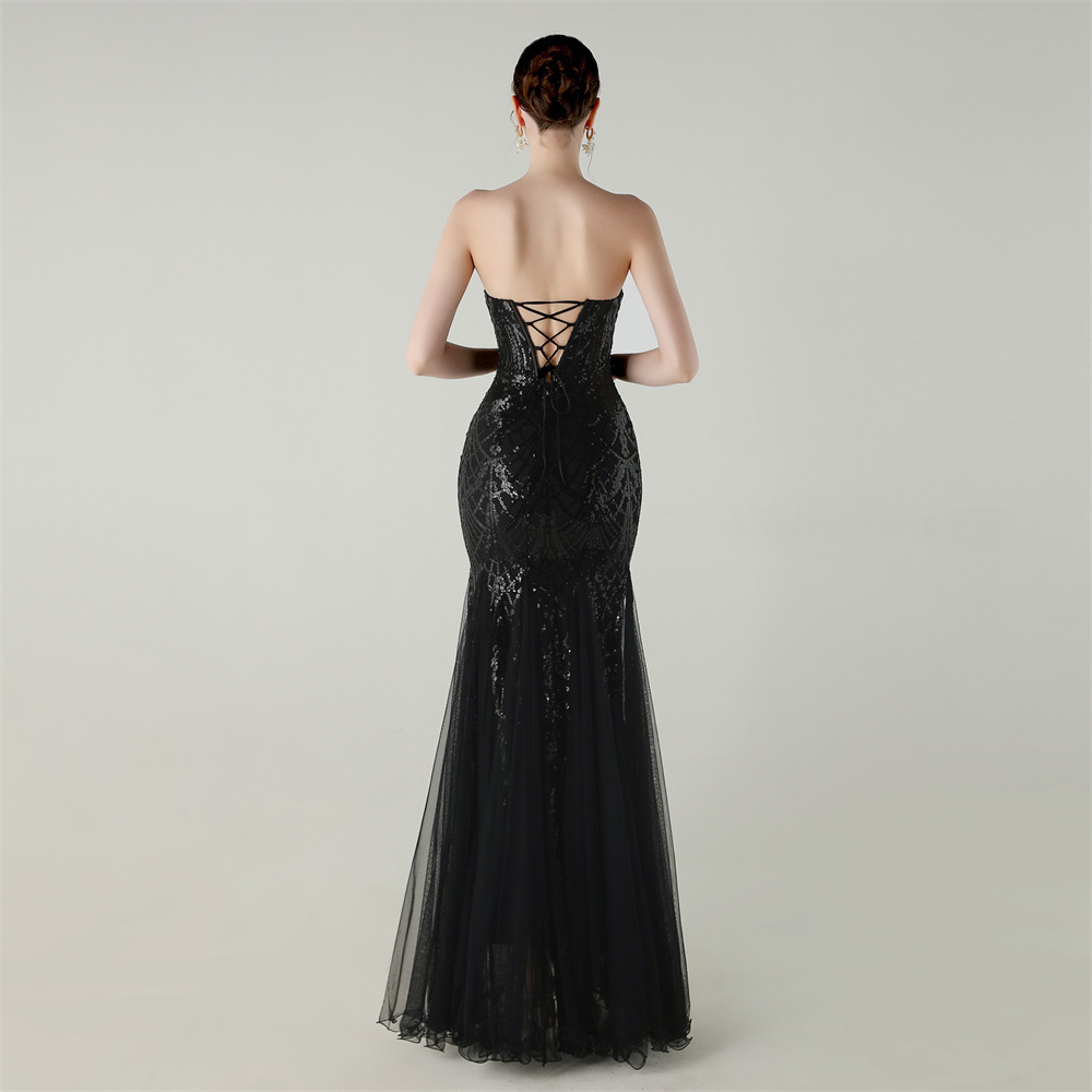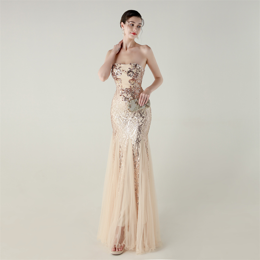 Gauze & Polyester Soft & Slim Long Evening Dress backless Sequin embroidered :XXL PC