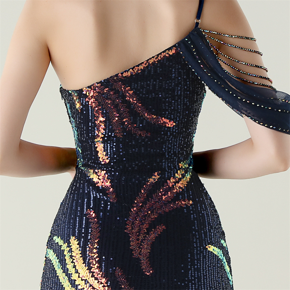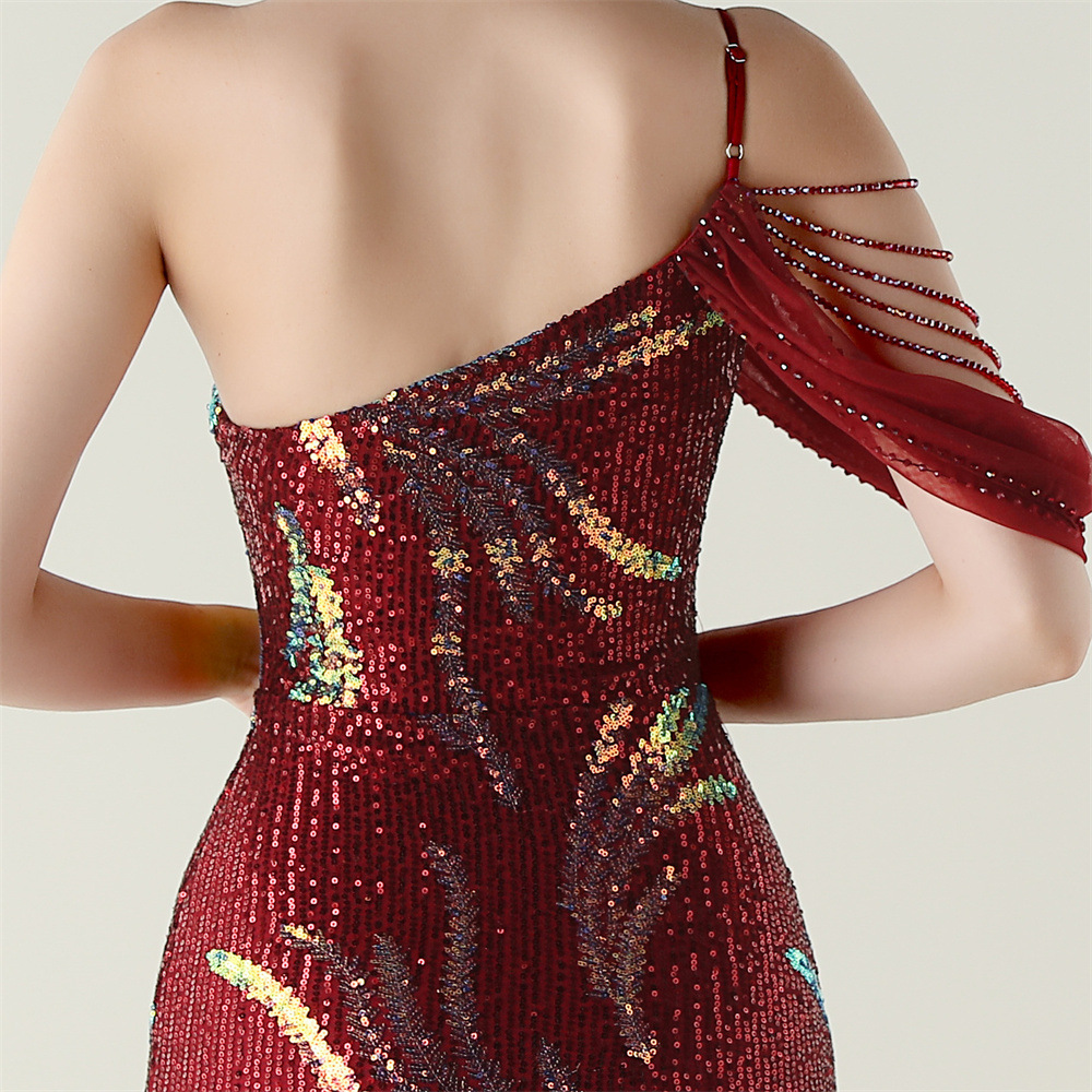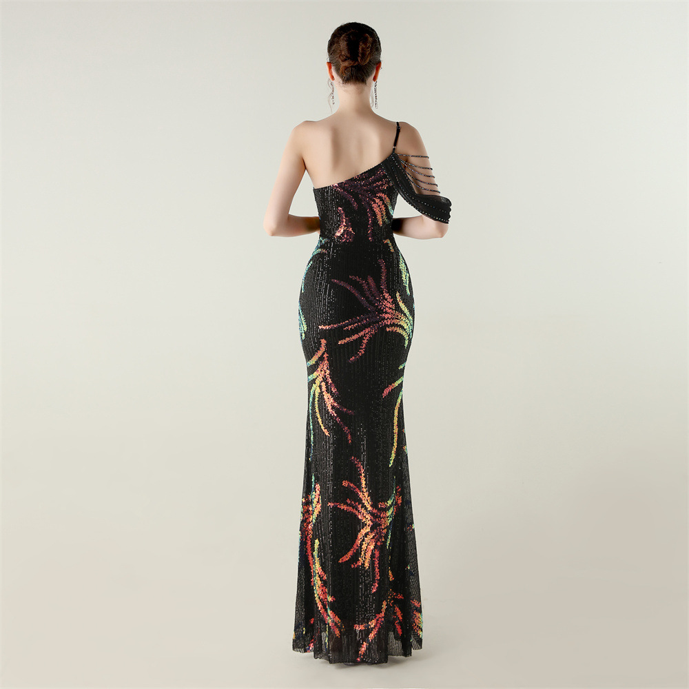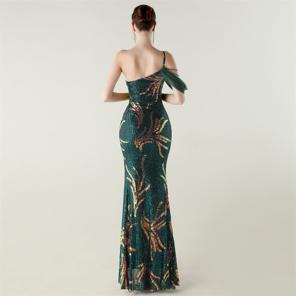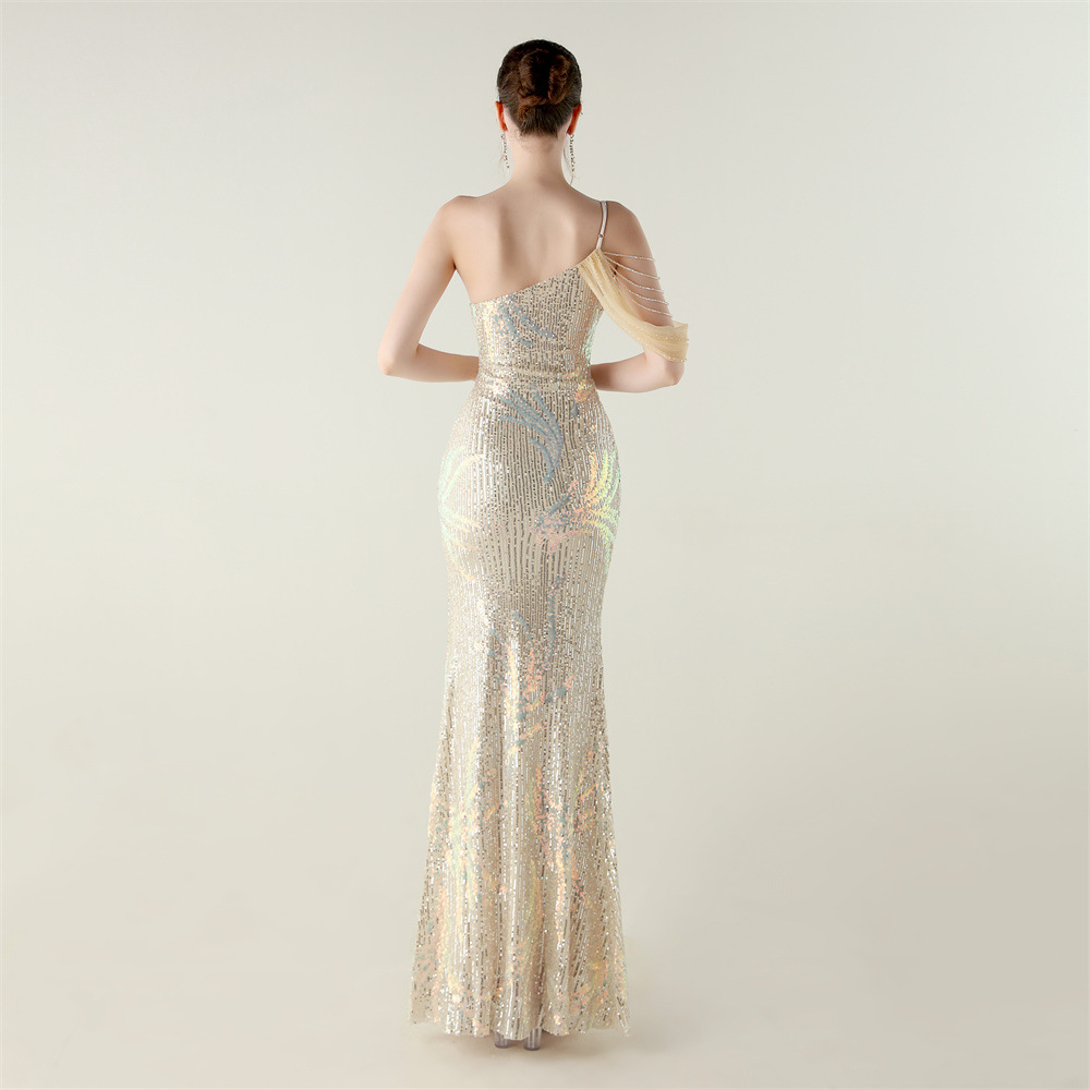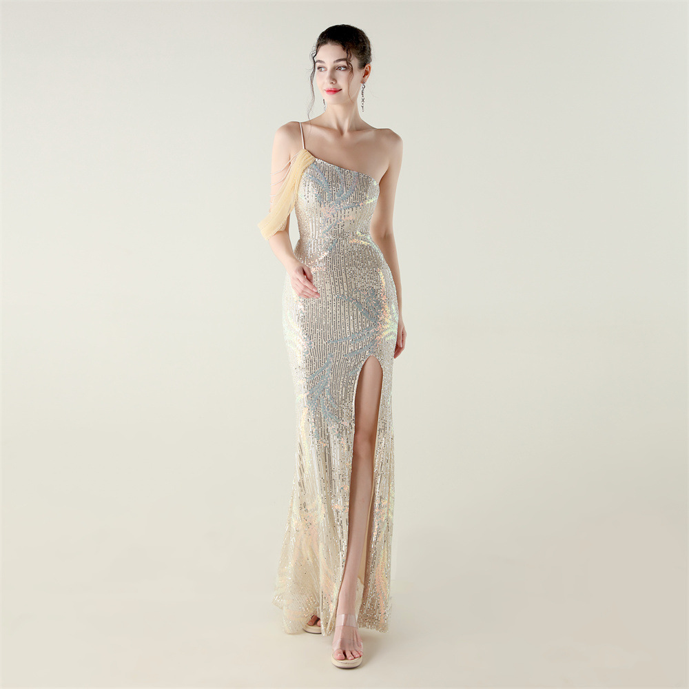 Gauze & Polyester Soft & Slim Long Evening Dress side slit & off shoulder & One Shoulder Sequin patchwork :XXL PC
