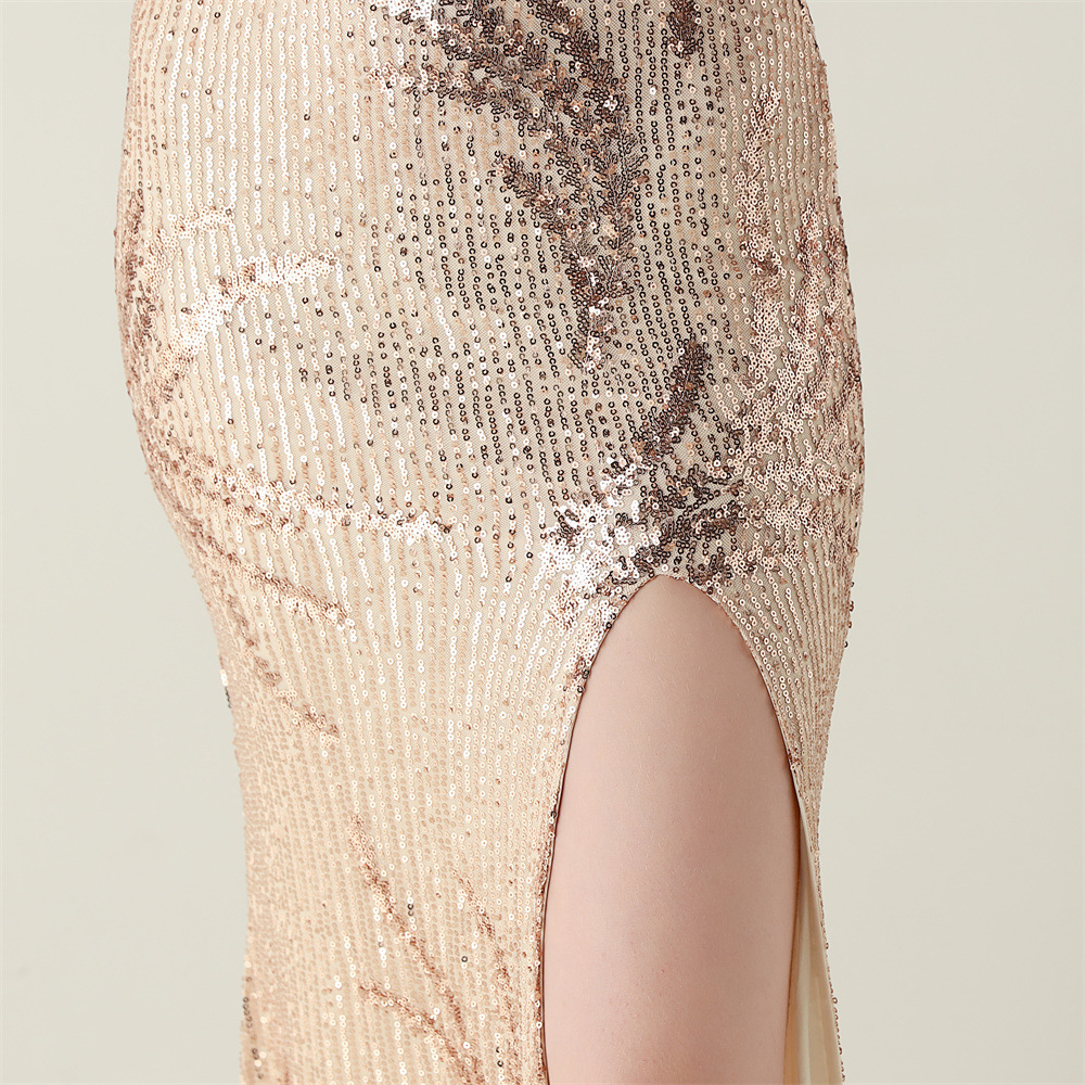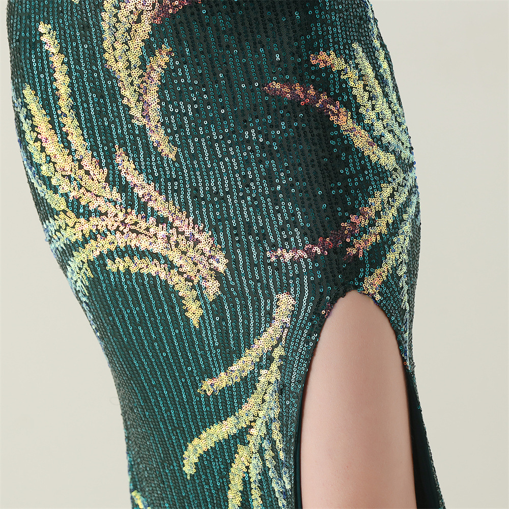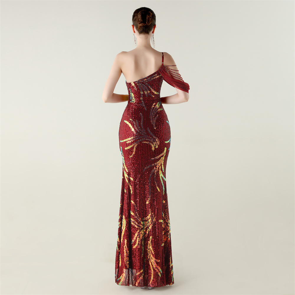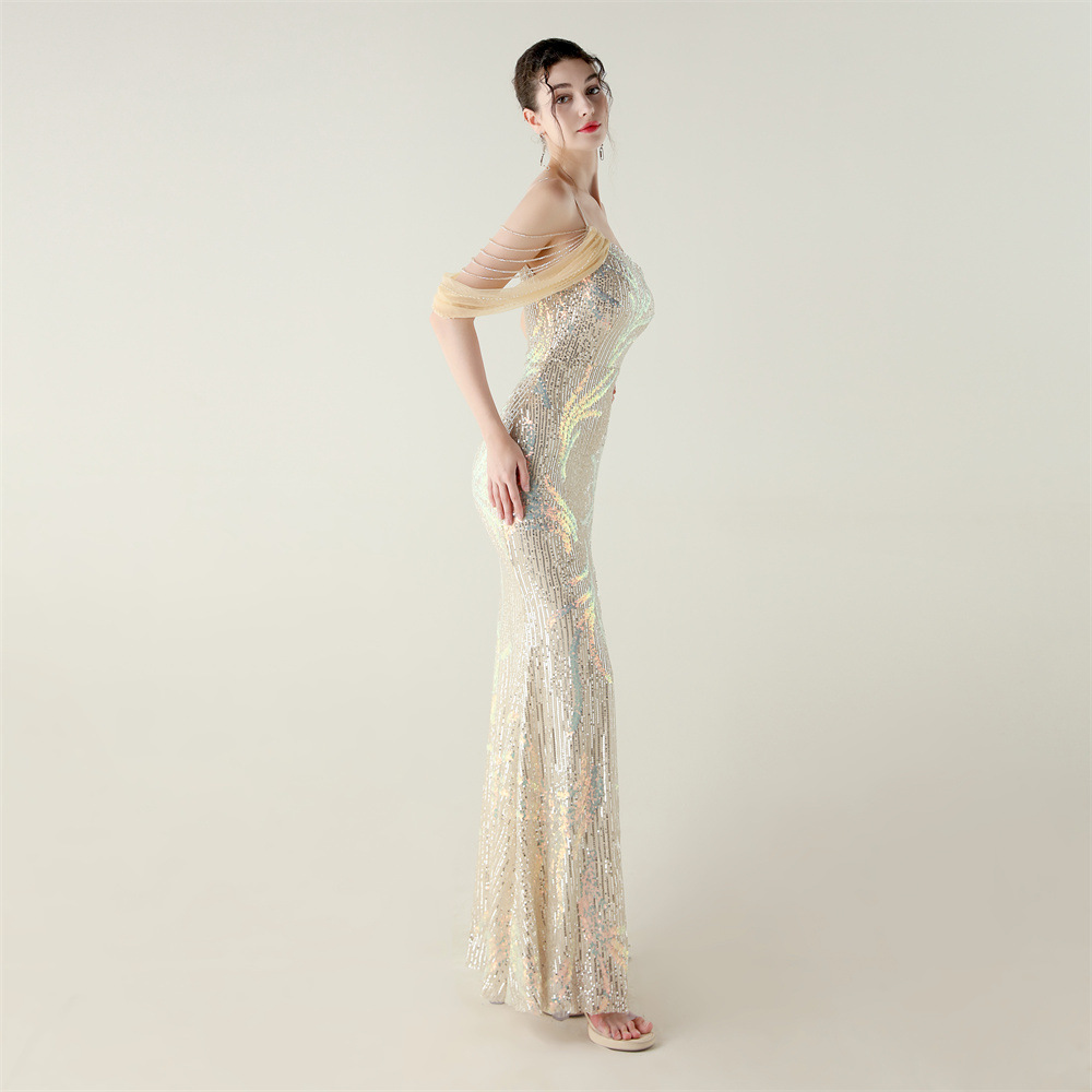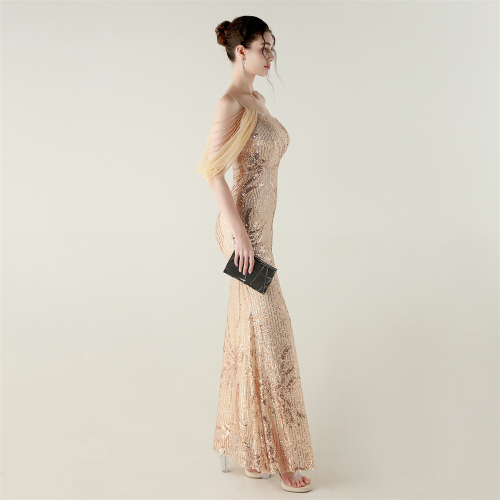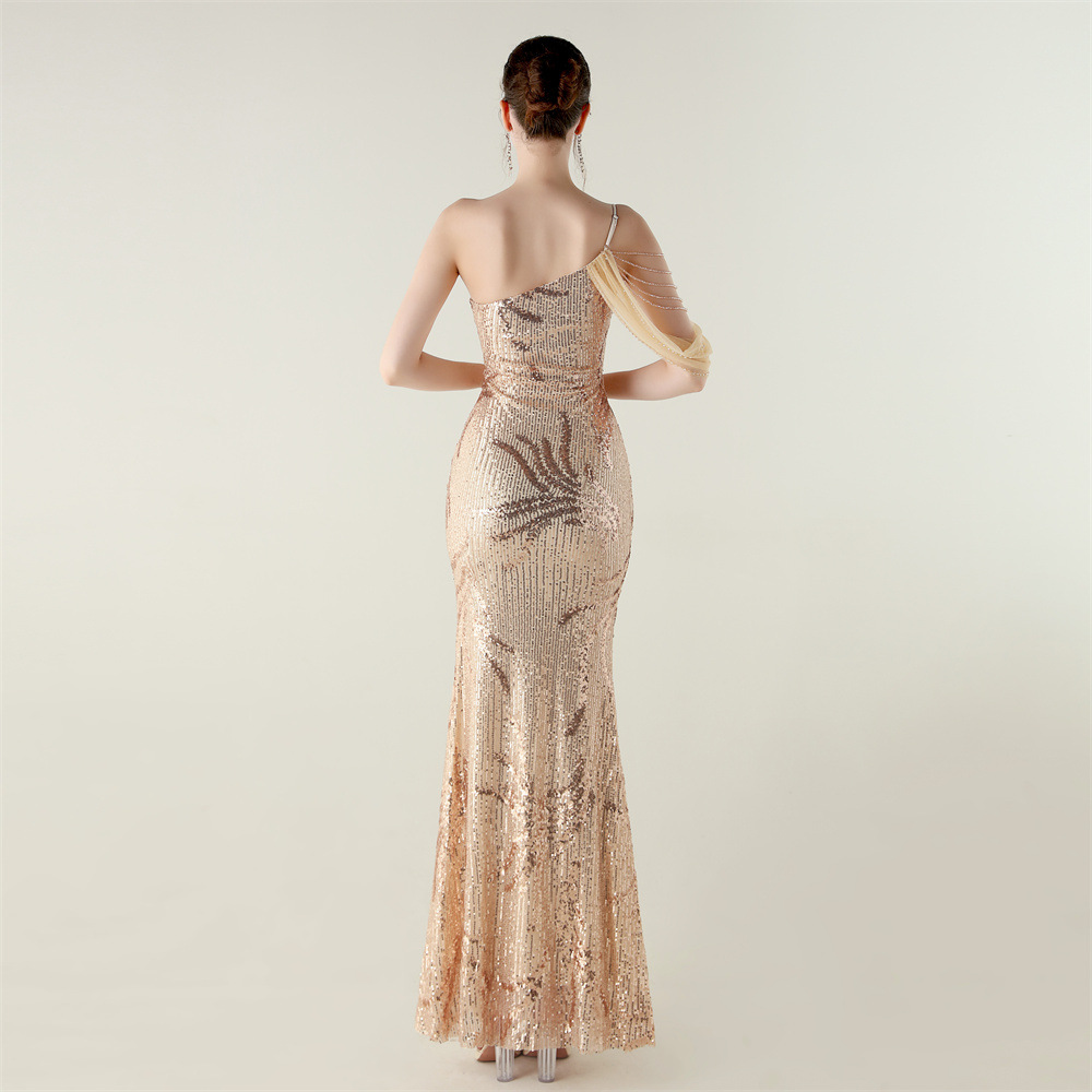 Gauze & Polyester Soft & Slim Long Evening Dress side slit & off shoulder & One Shoulder Sequin patchwork :XXL PC