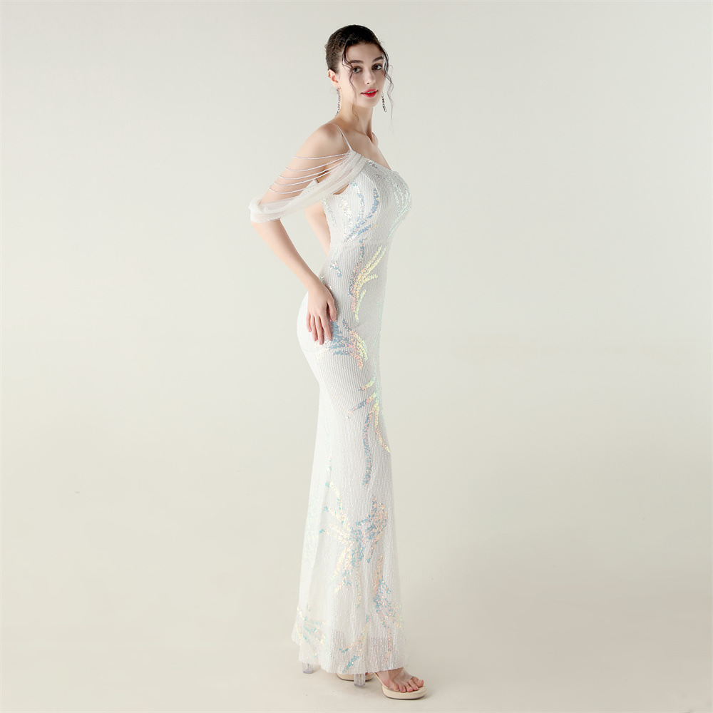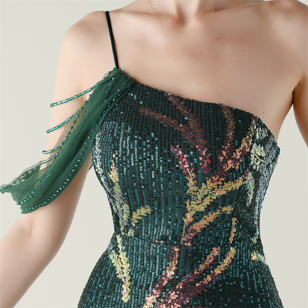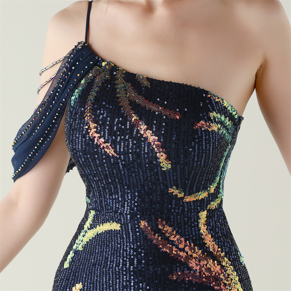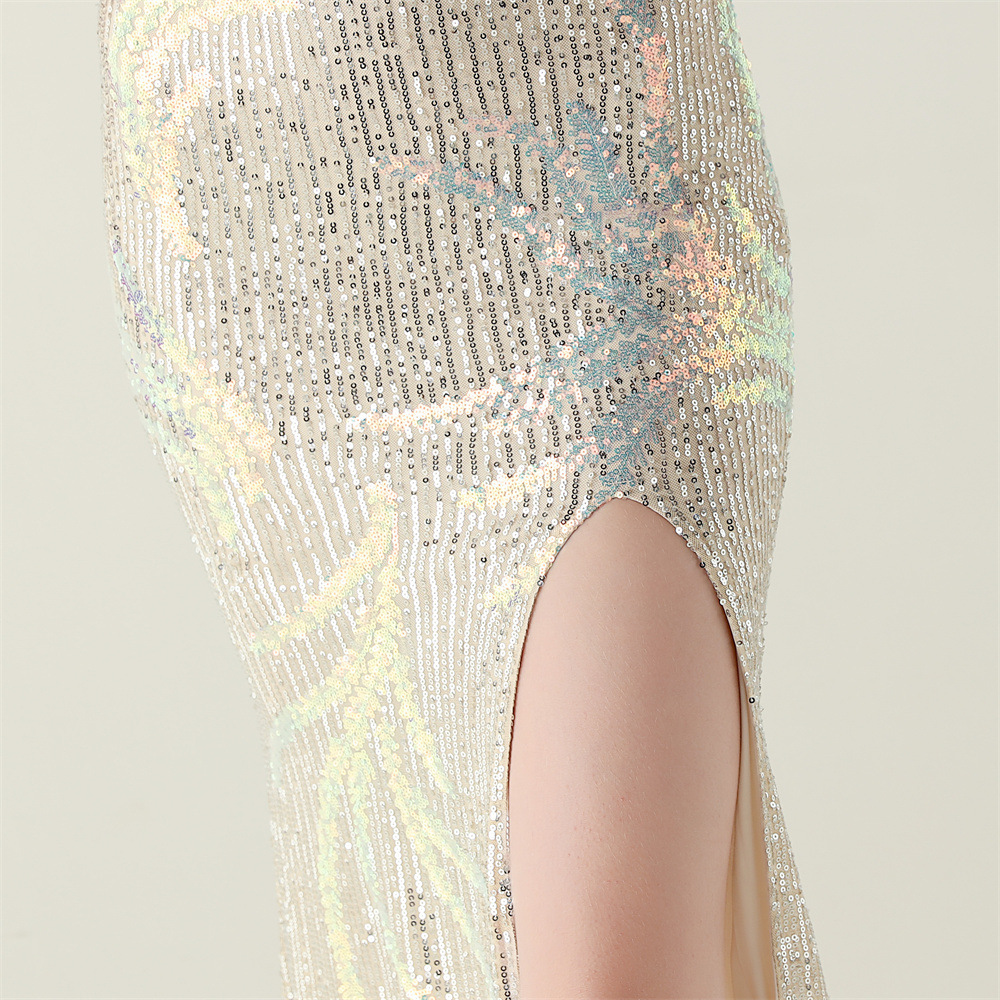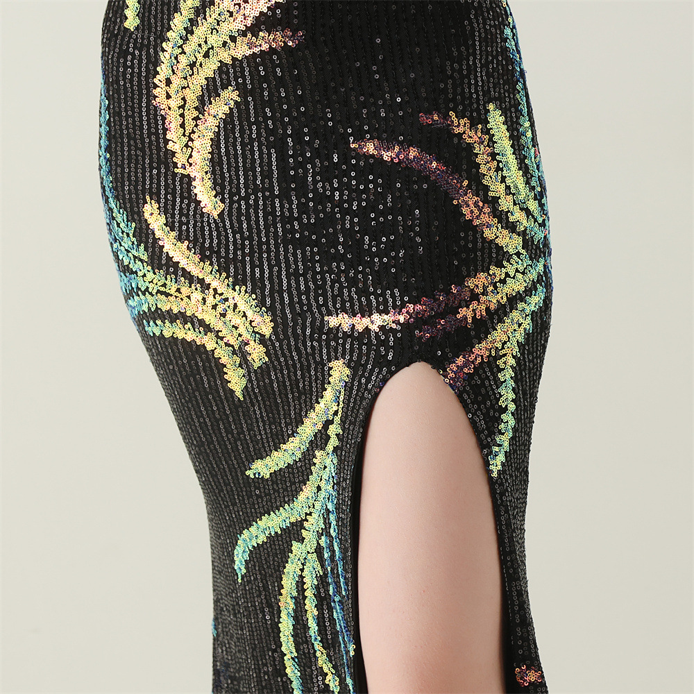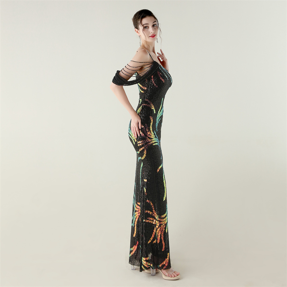 Gauze & Polyester Soft & Slim Long Evening Dress side slit & off shoulder & One Shoulder Sequin patchwork :XXL PC