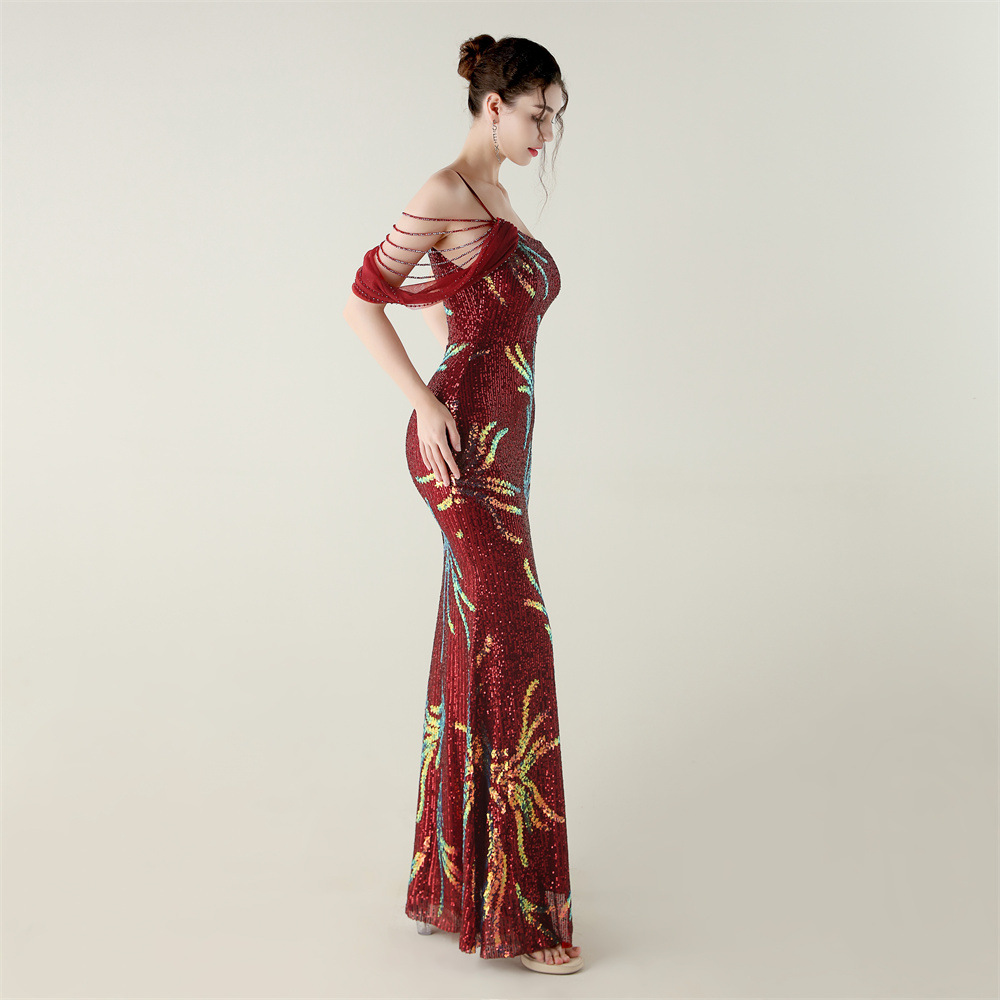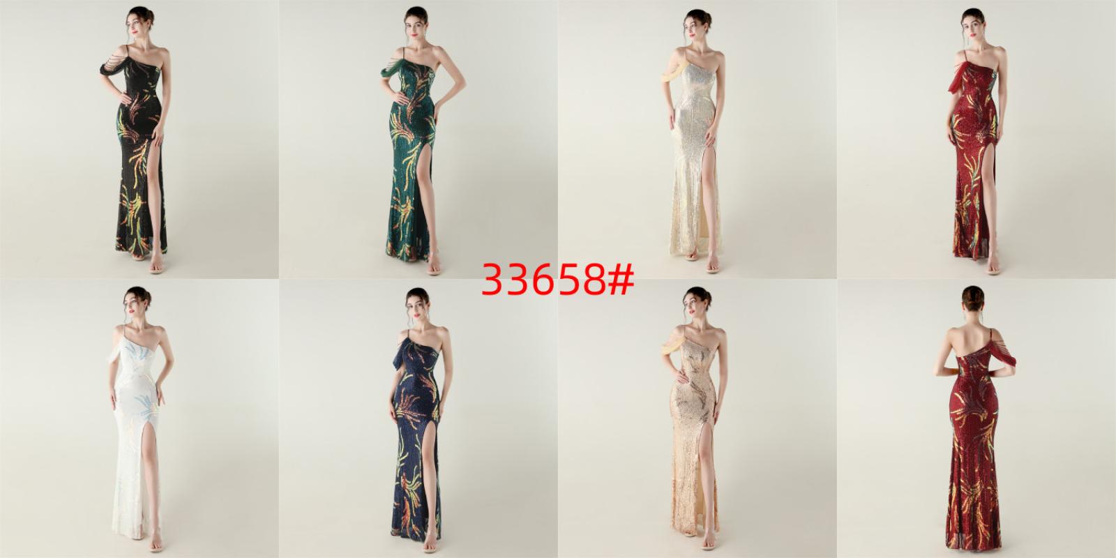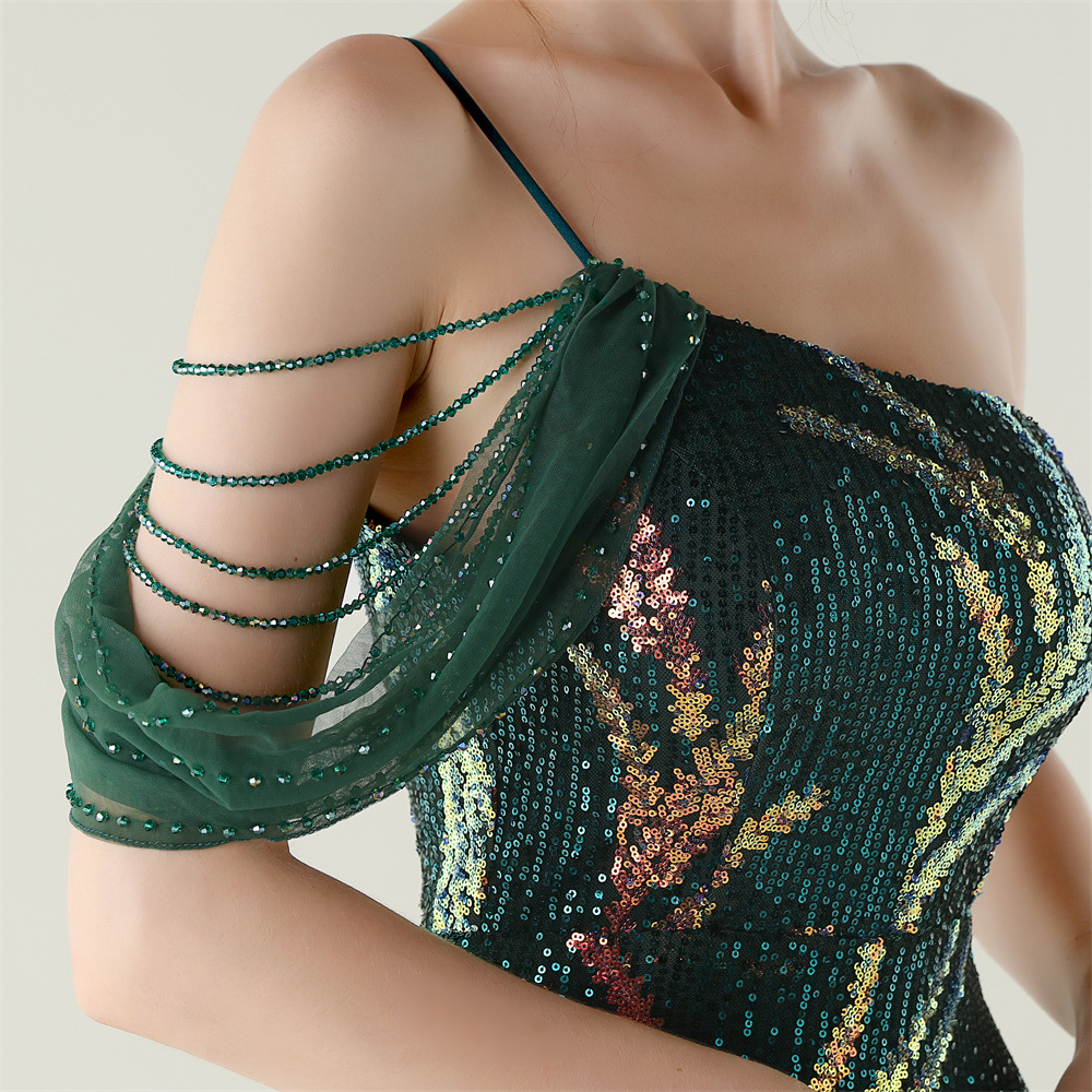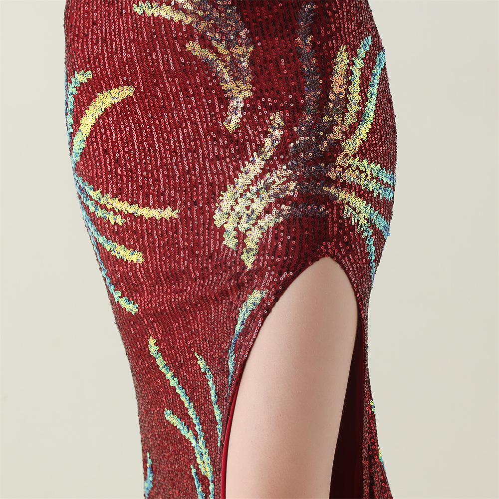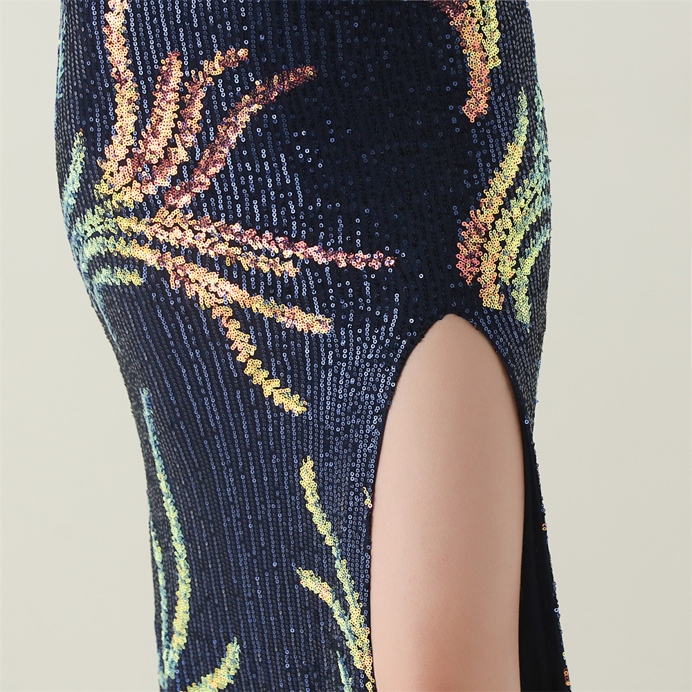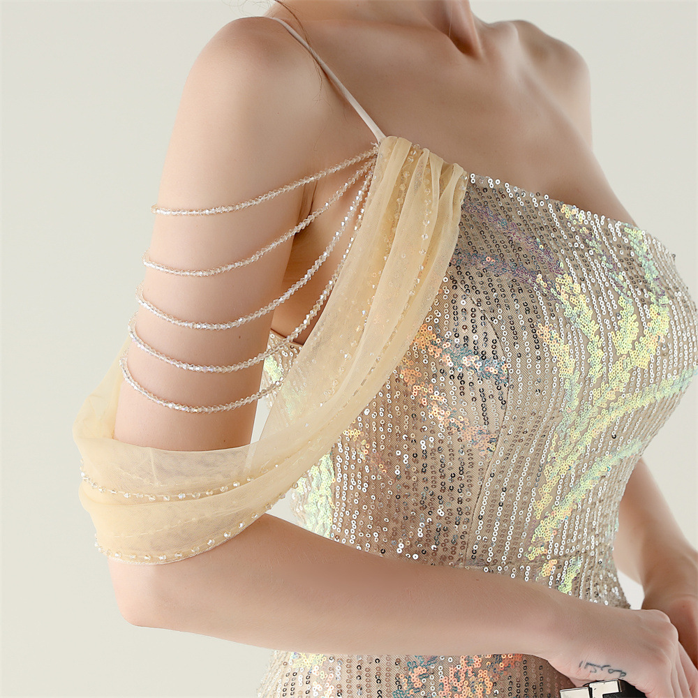 Gauze & Polyester Soft & Slim Long Evening Dress side slit & off shoulder & One Shoulder Sequin patchwork :XXL PC