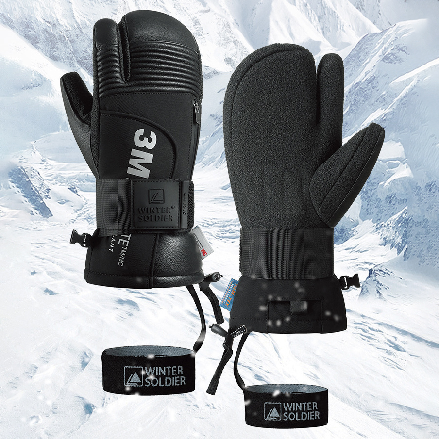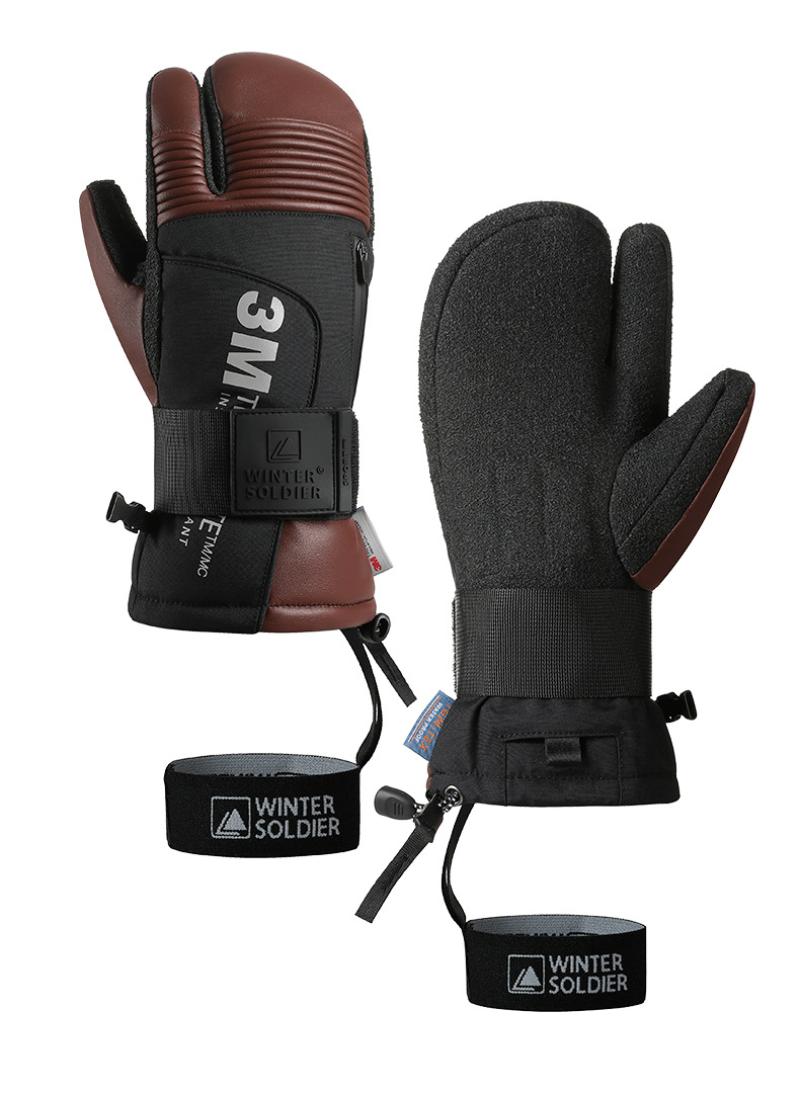 Goat Skin Leather hand protecting & windproof & Waterproof Skiing Gloves hardwearing & anti-skidding & thermal Pair