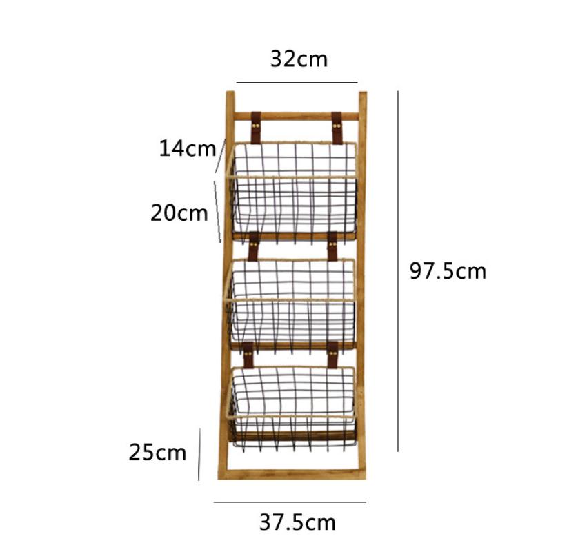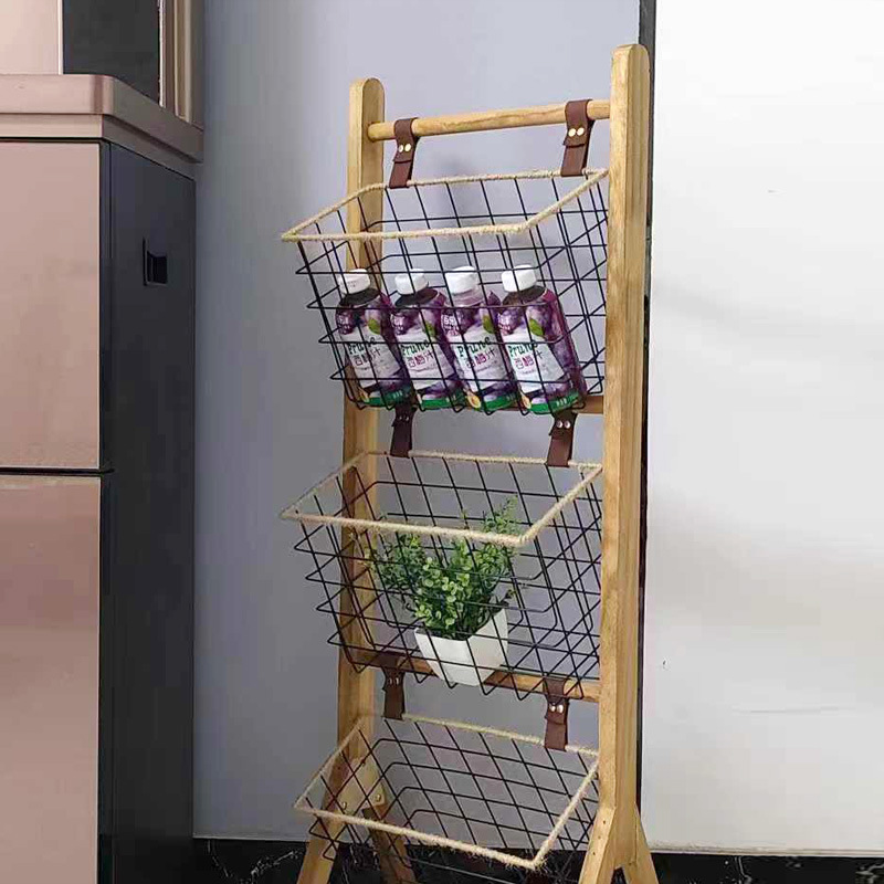 Hemp Rope & Wood & Iron Multilayer Storage Rack hollow PC