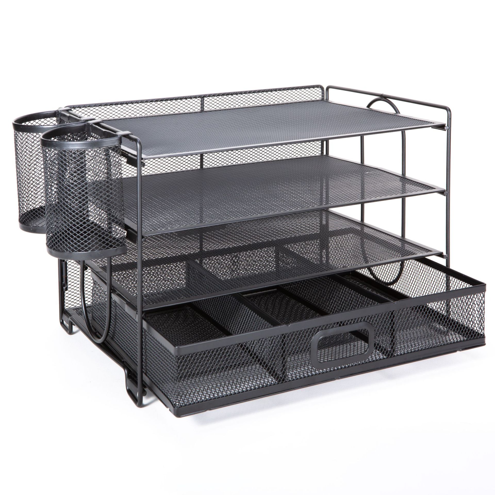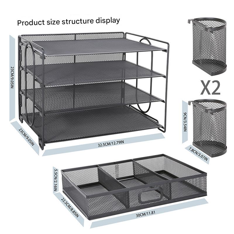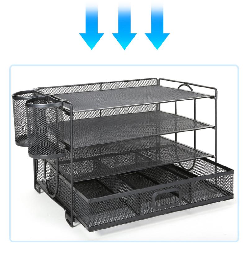 Iron Multilayer & Multifunction Document Storage Frame hollow black PC