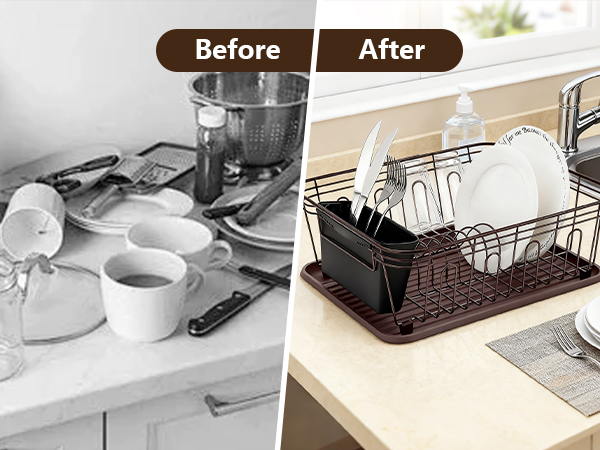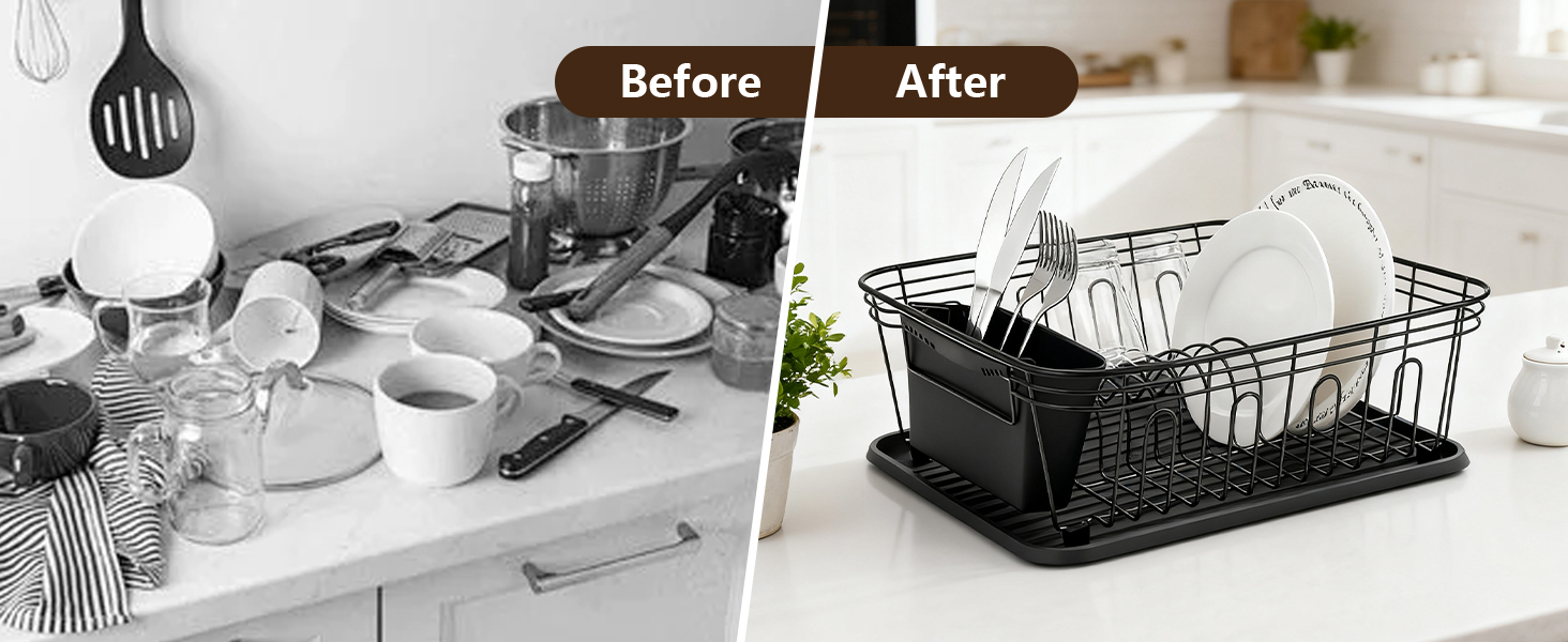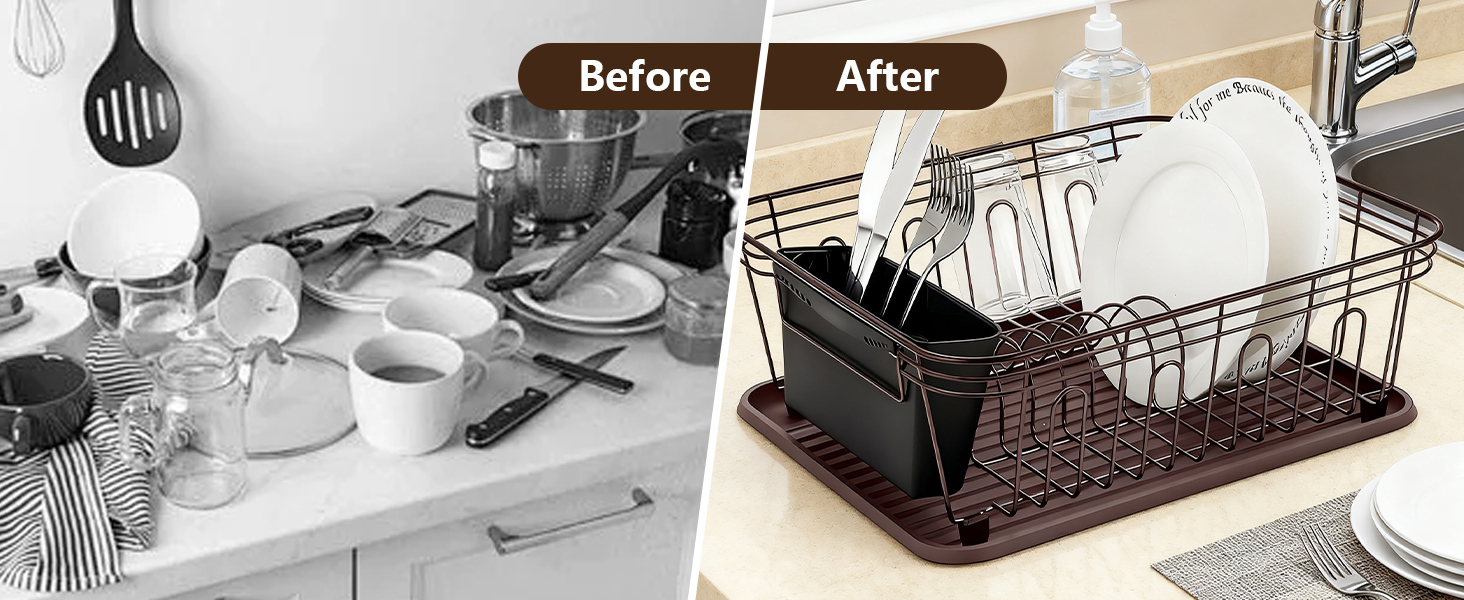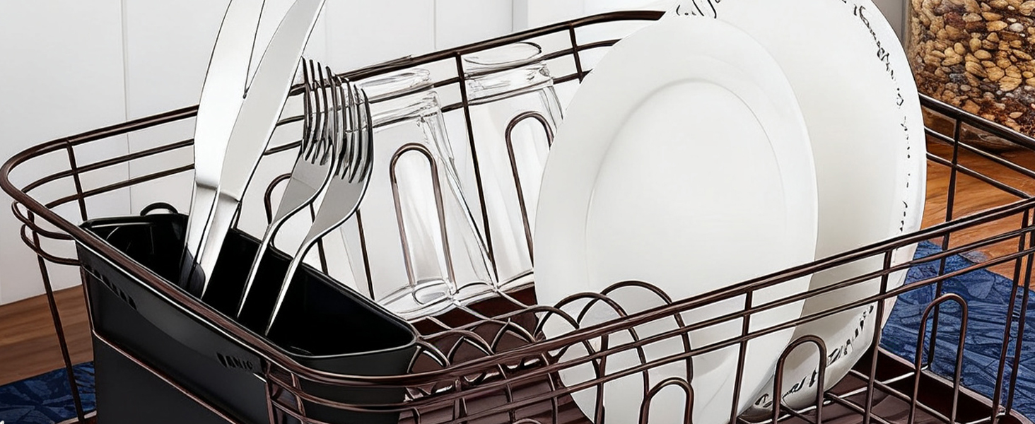 Household Kitchen Iron Dish Storage Rack Countertop Single-Layer Tableware Storage