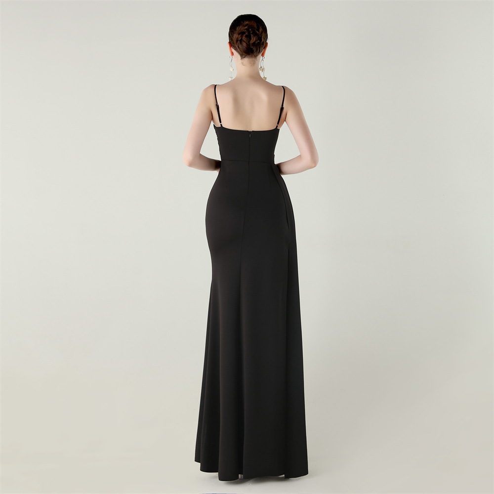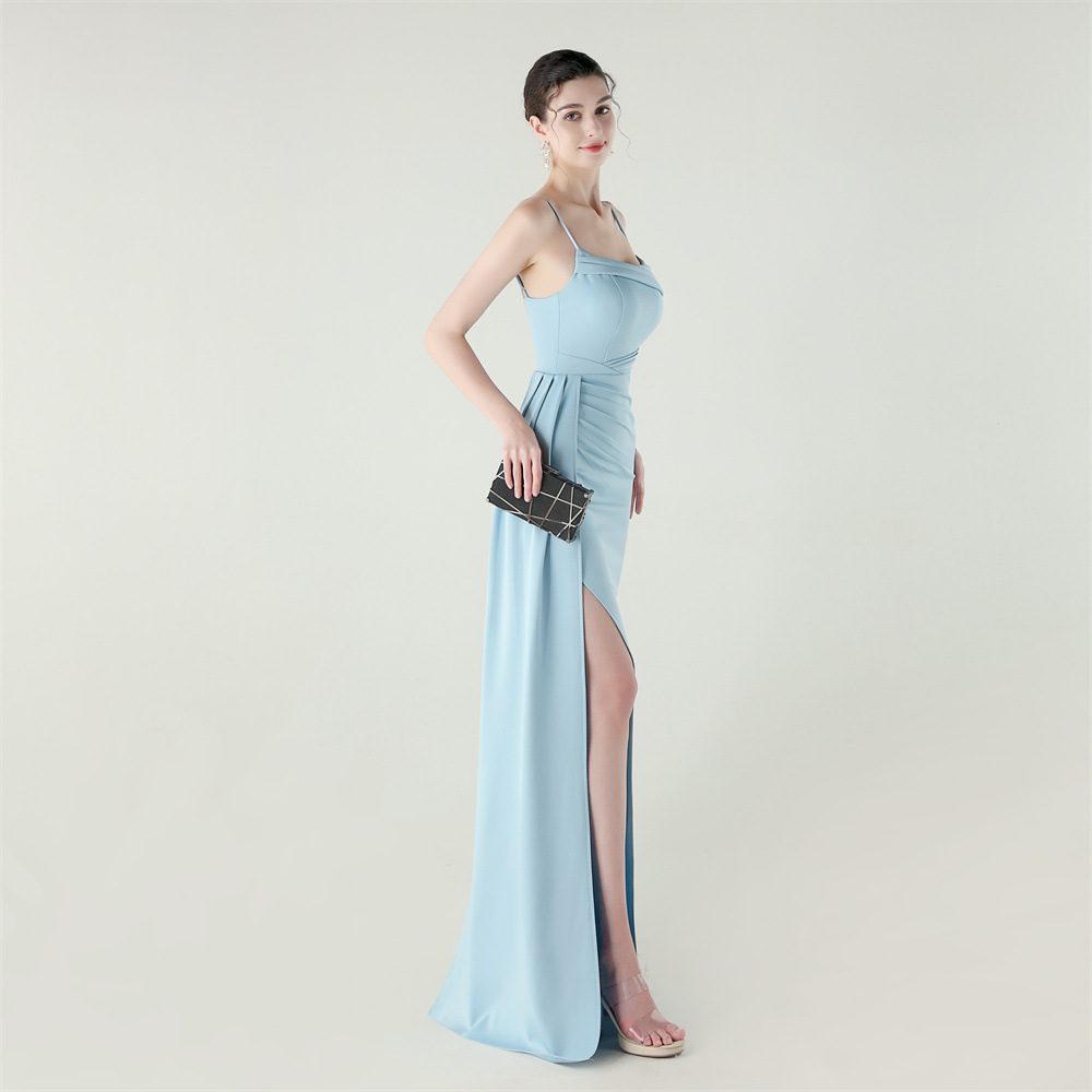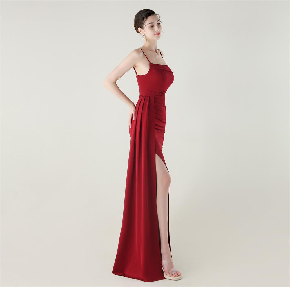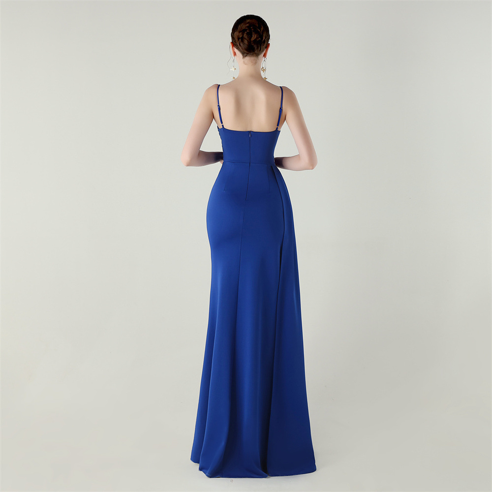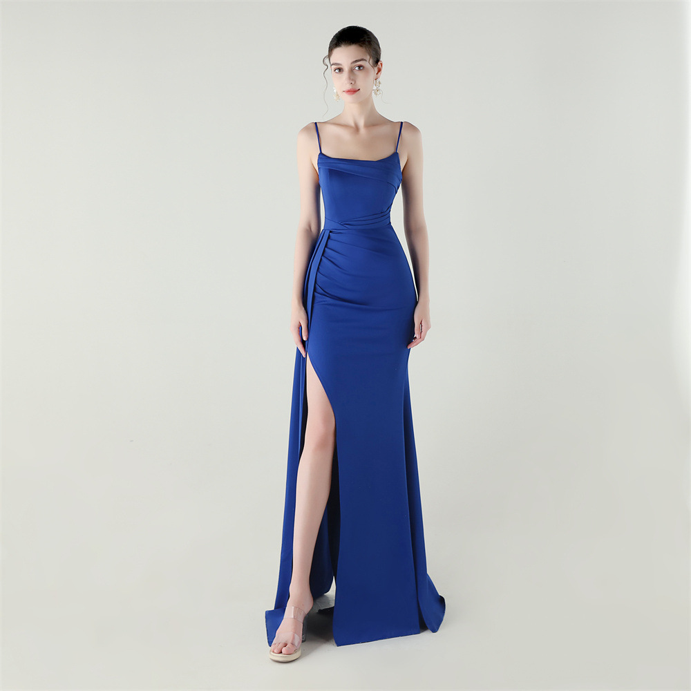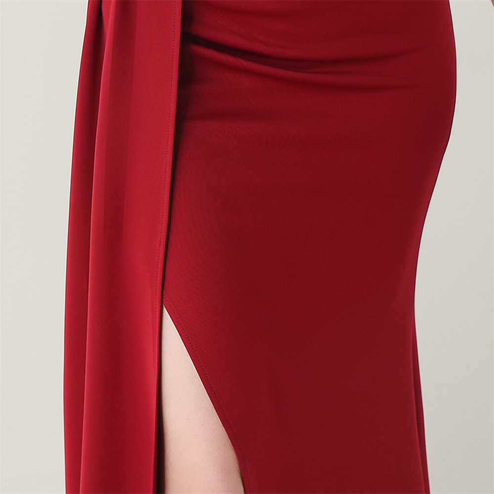 Knitted Slim Long Evening Dress side slit Polyester PC