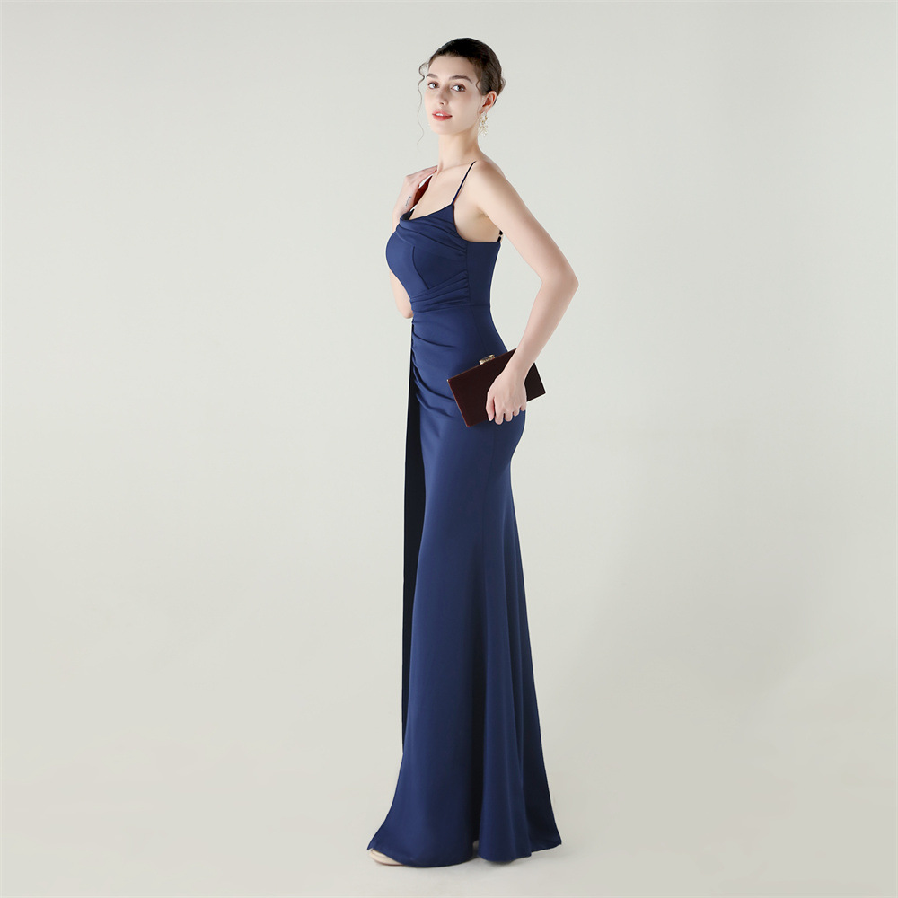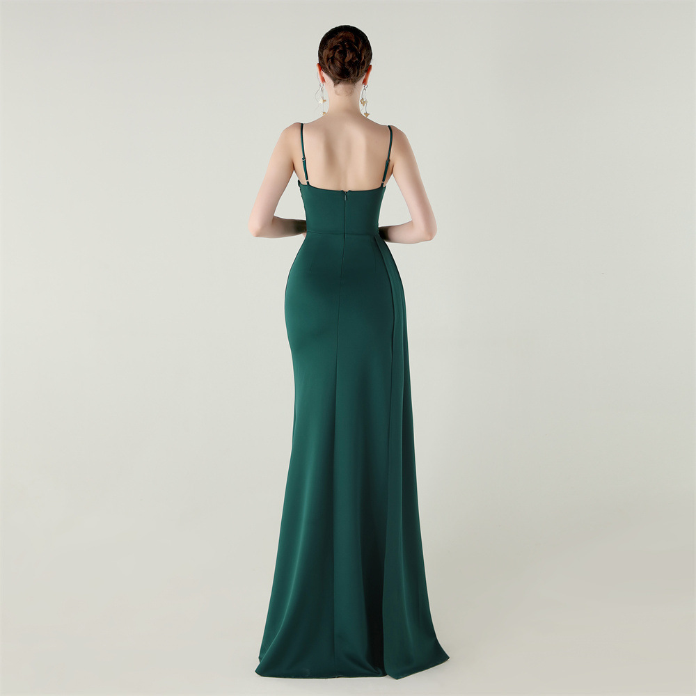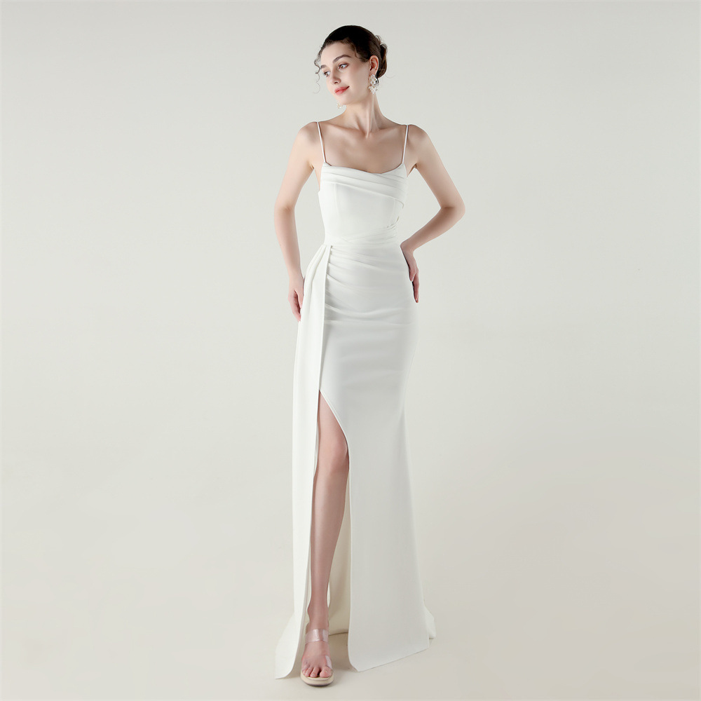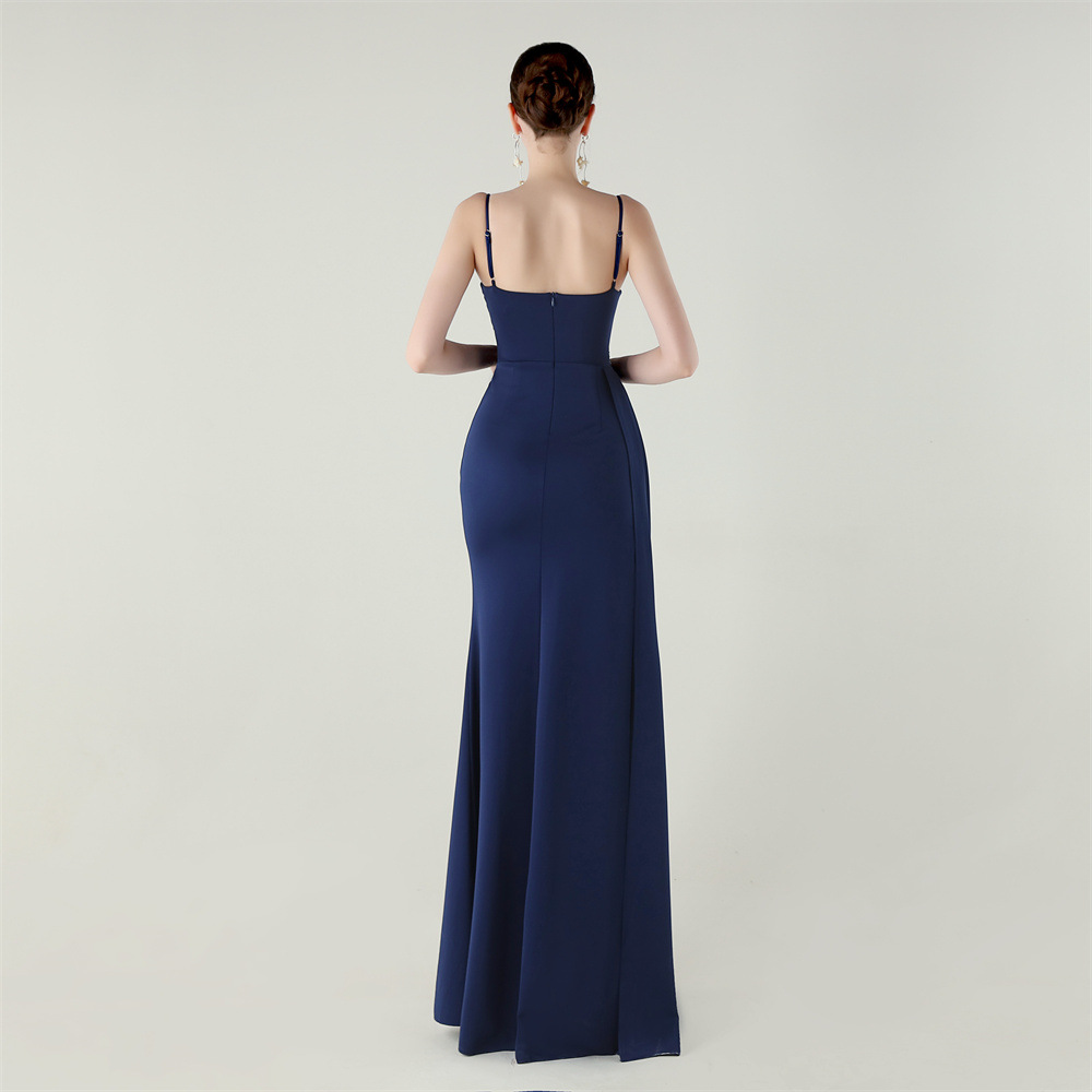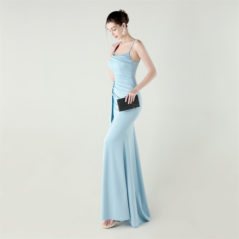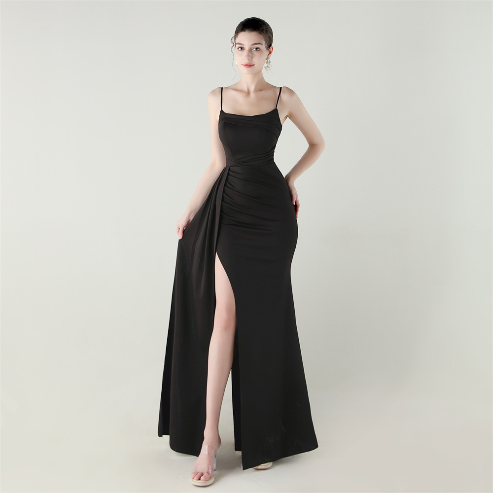 Knitted Slim Long Evening Dress side slit Polyester PC