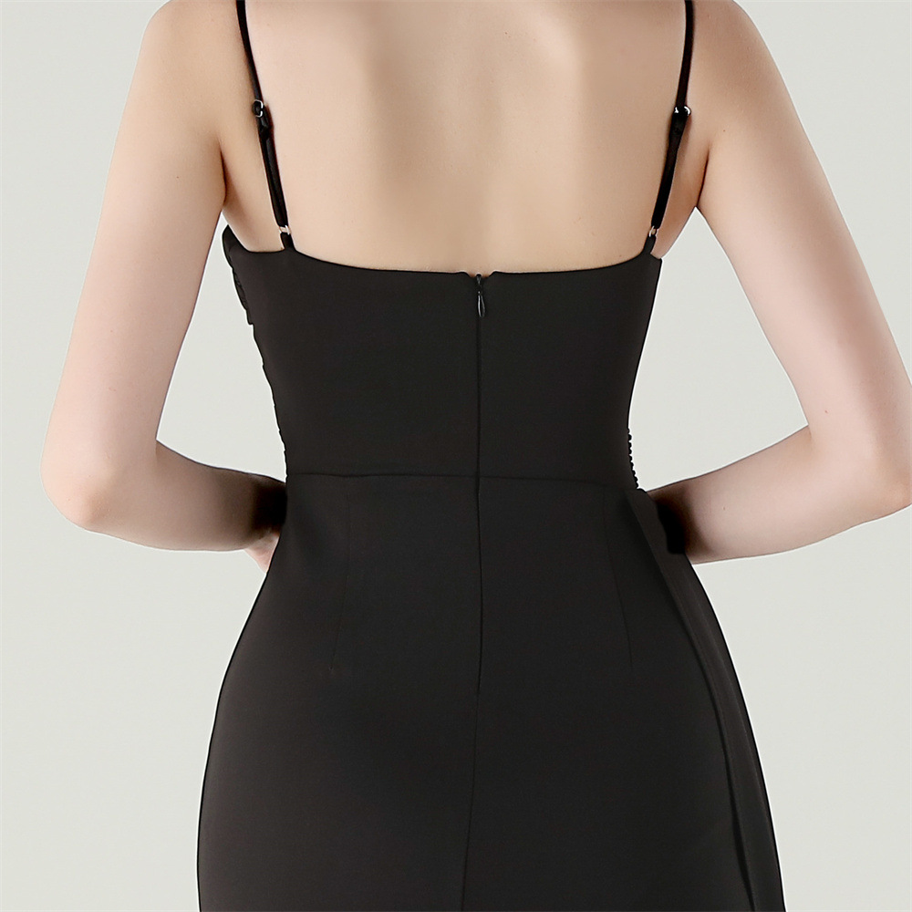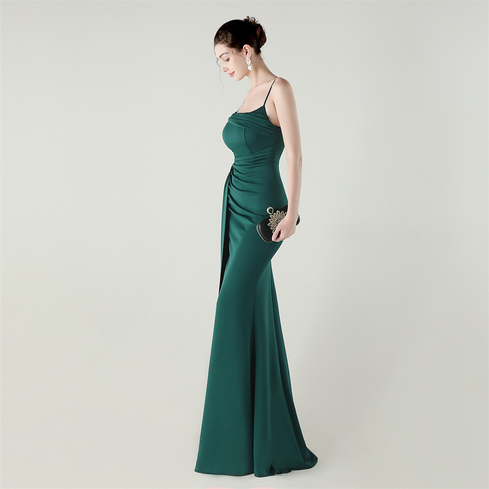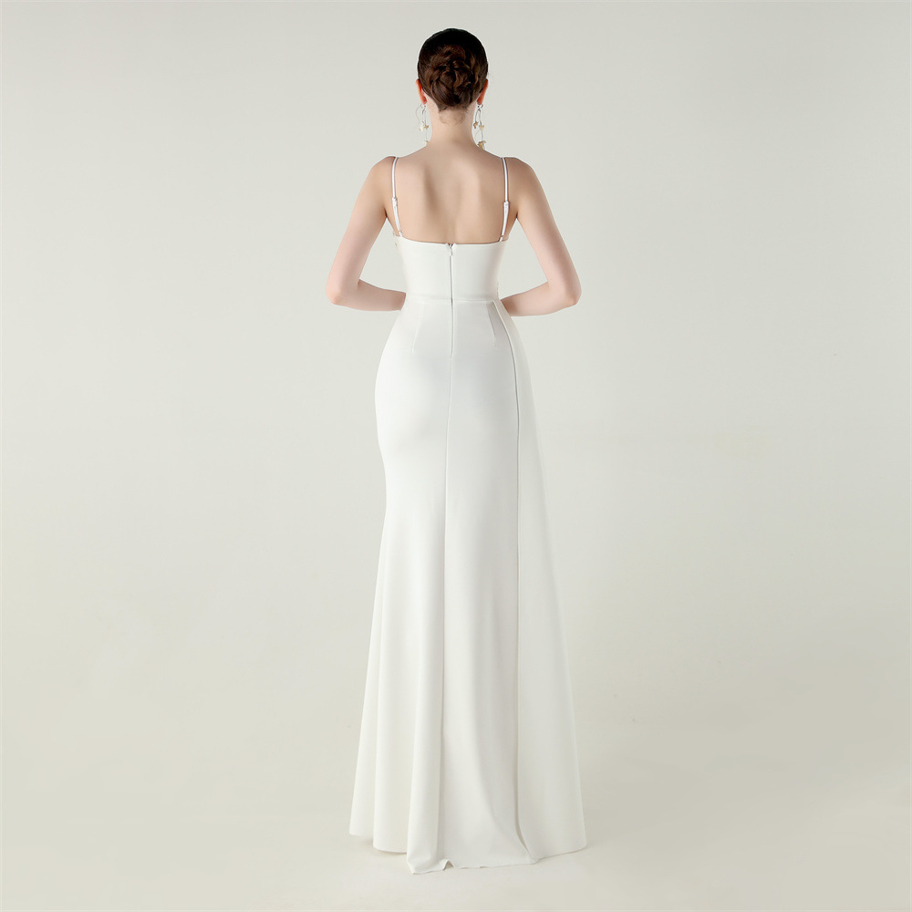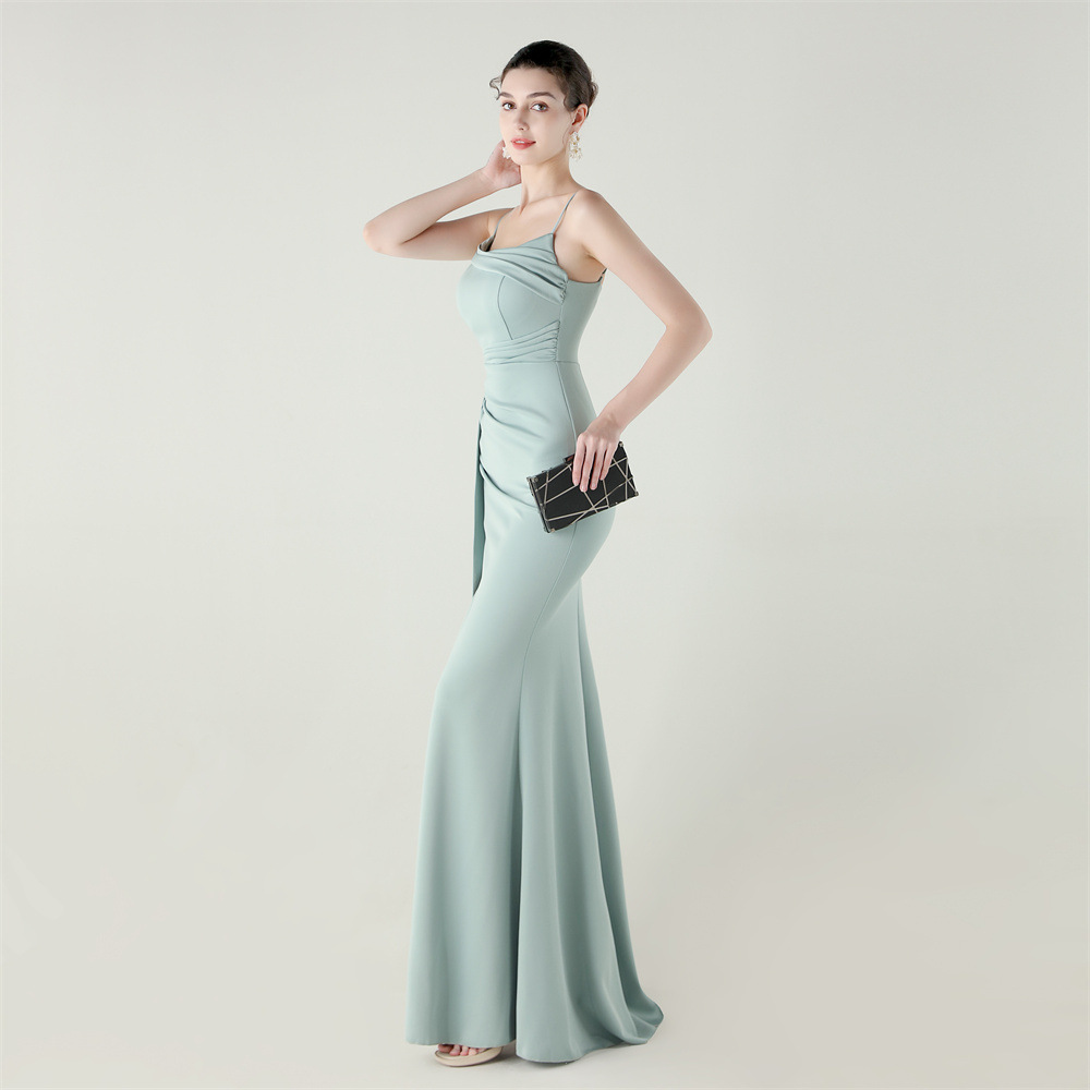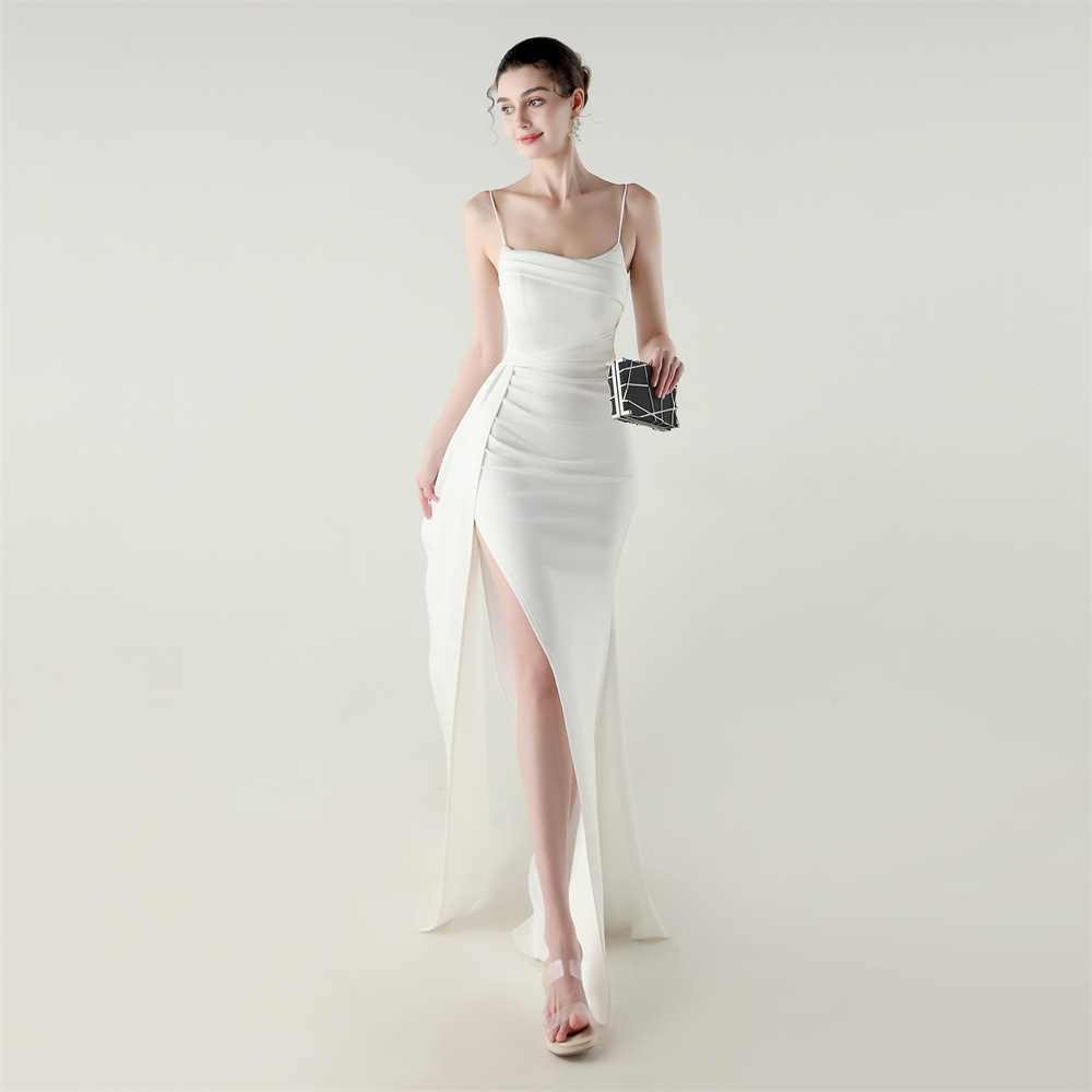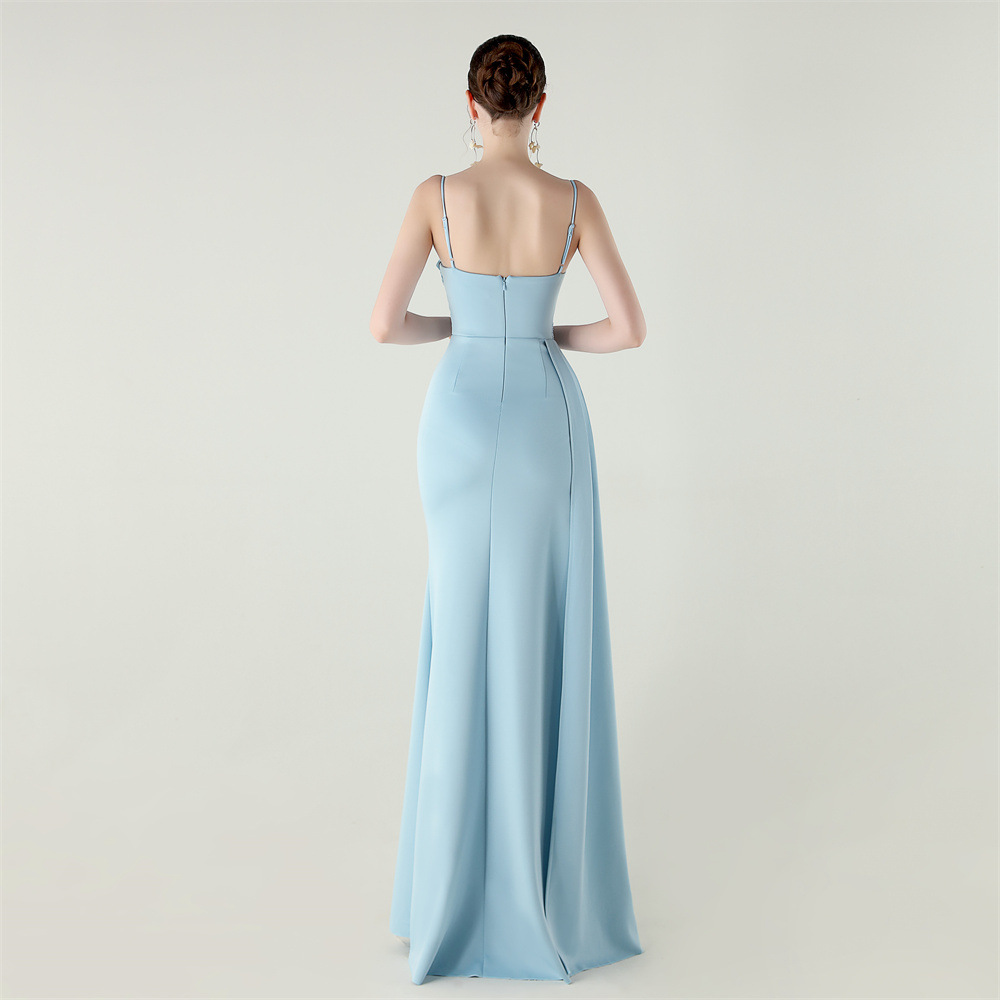 Knitted Slim Long Evening Dress side slit Polyester PC