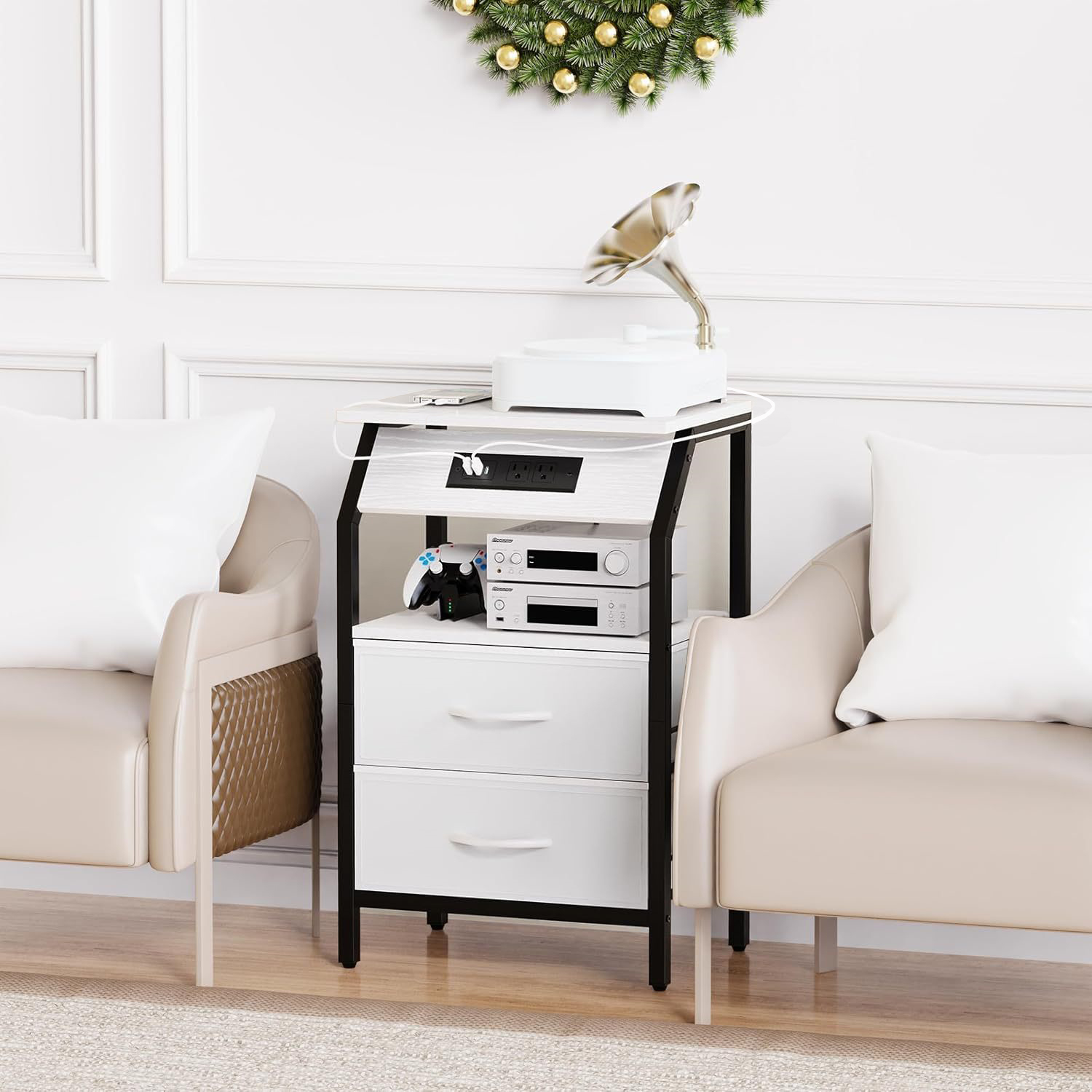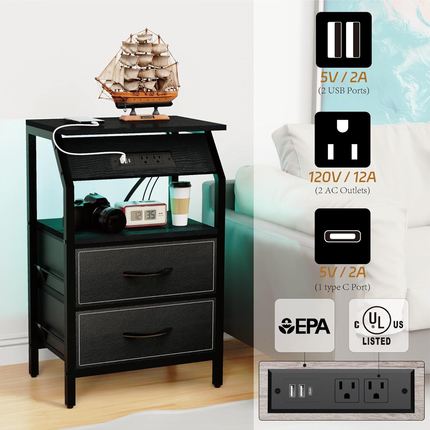 MDF Board Bedside Cabinet for storage & hardwearing & with USB interface Steel Tube & Adhesive Bonded Fabric PC