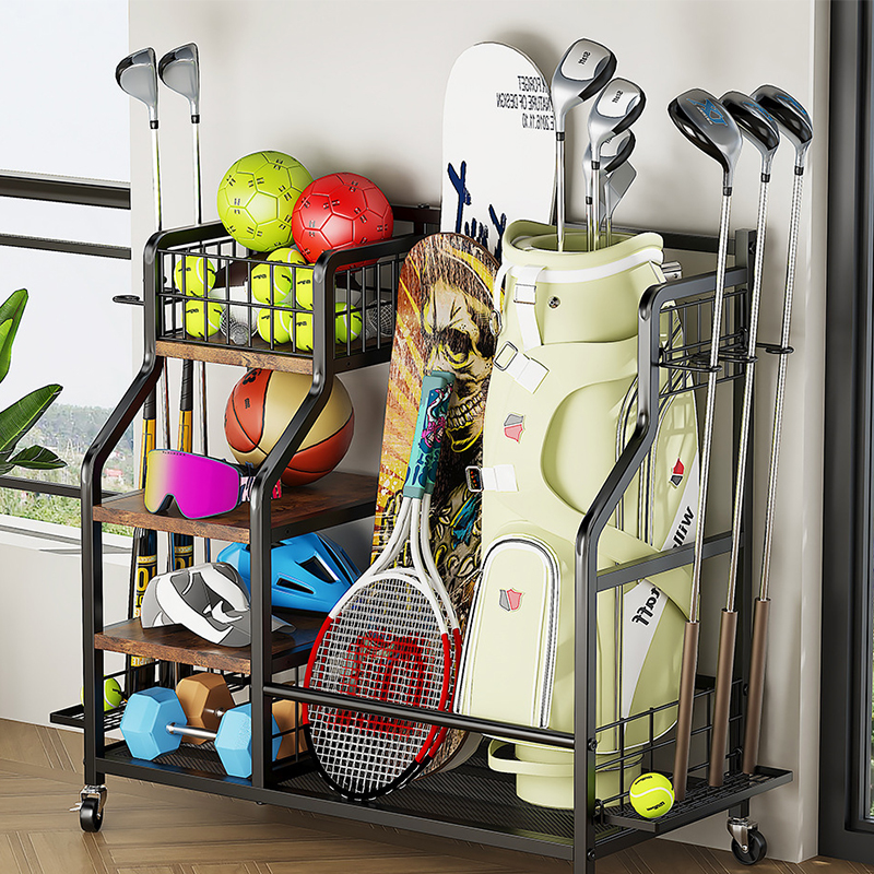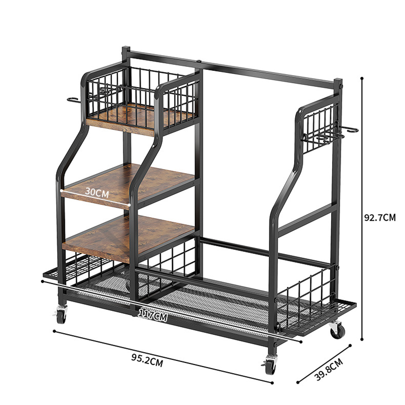 MDF Board & Carbon Steel Storage Rack with caster black PC
