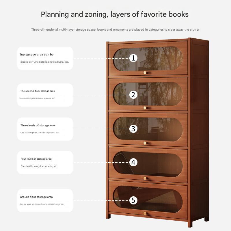 MDF Board & Moso Bamboo & Acrylic & Plastic Multilayer & dampproof Bookshelf dustproof Dark Brown PC