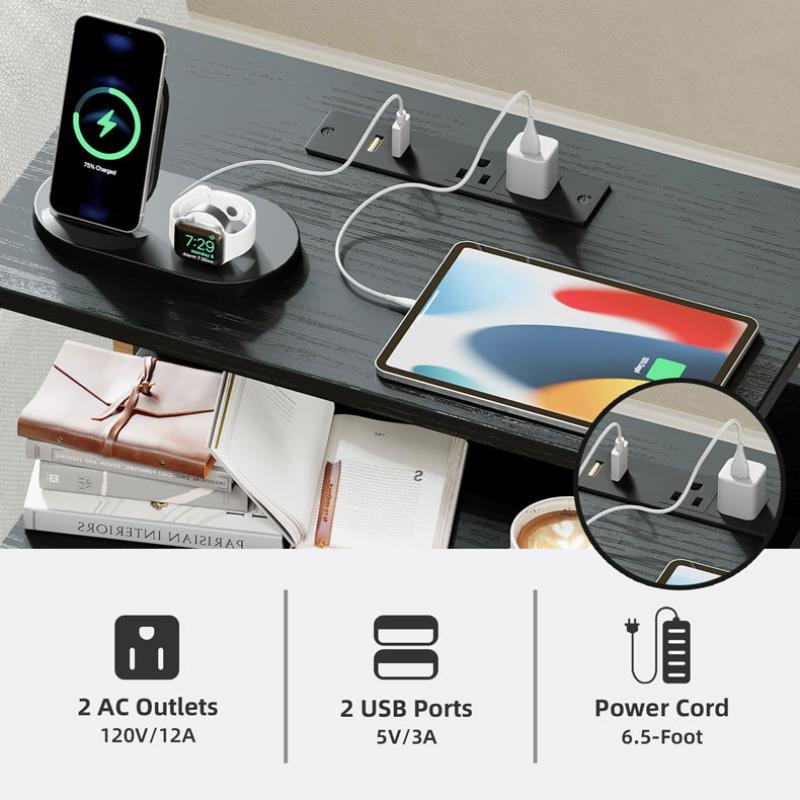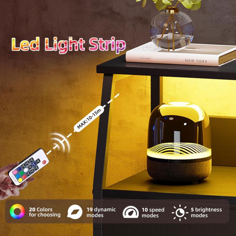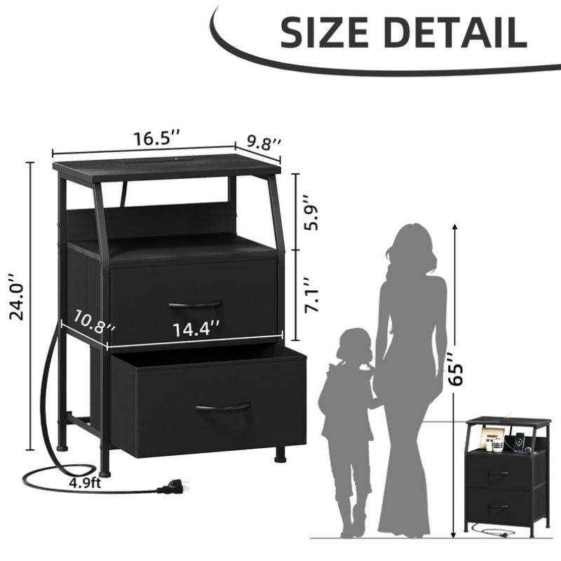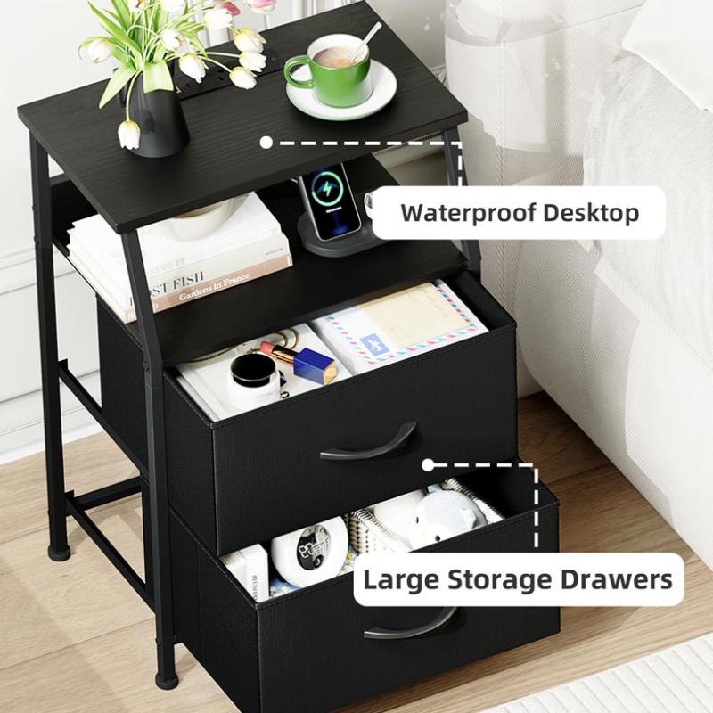 Medium Density Fiberboard Waterproof Bedside Cabinet durable & with USB interface Steel Tube black PC