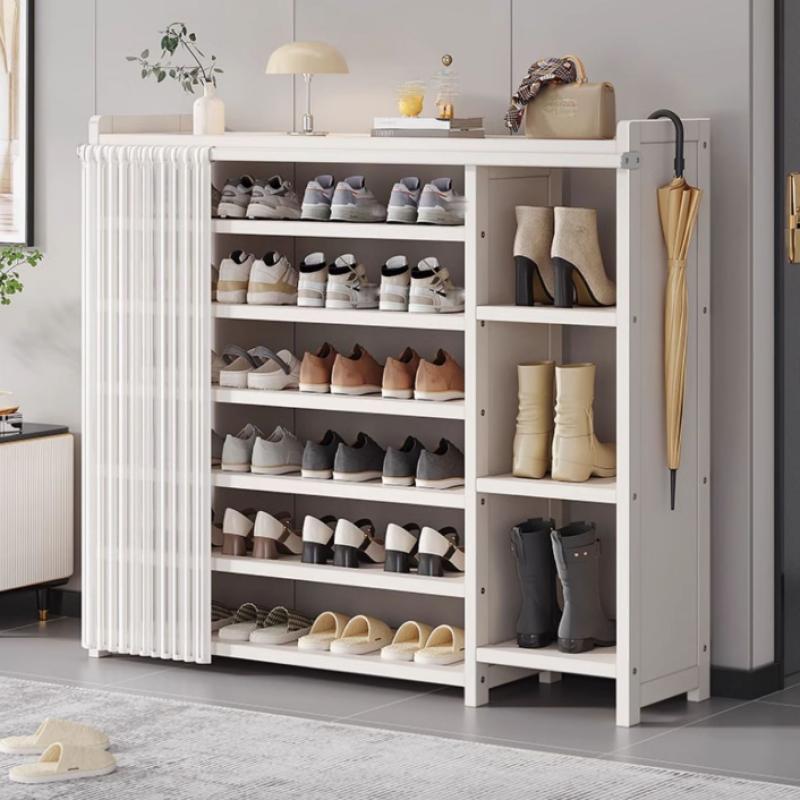Medium Density Fiberboard & Cloth Shoes Rack Organizer durable & dustproof Solid white PC