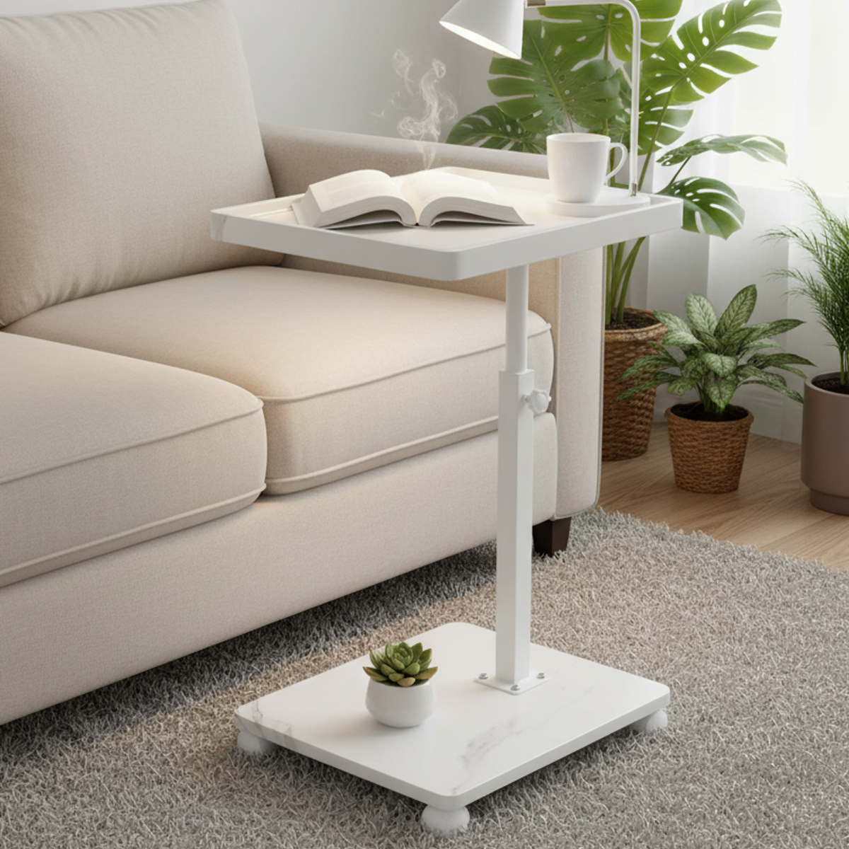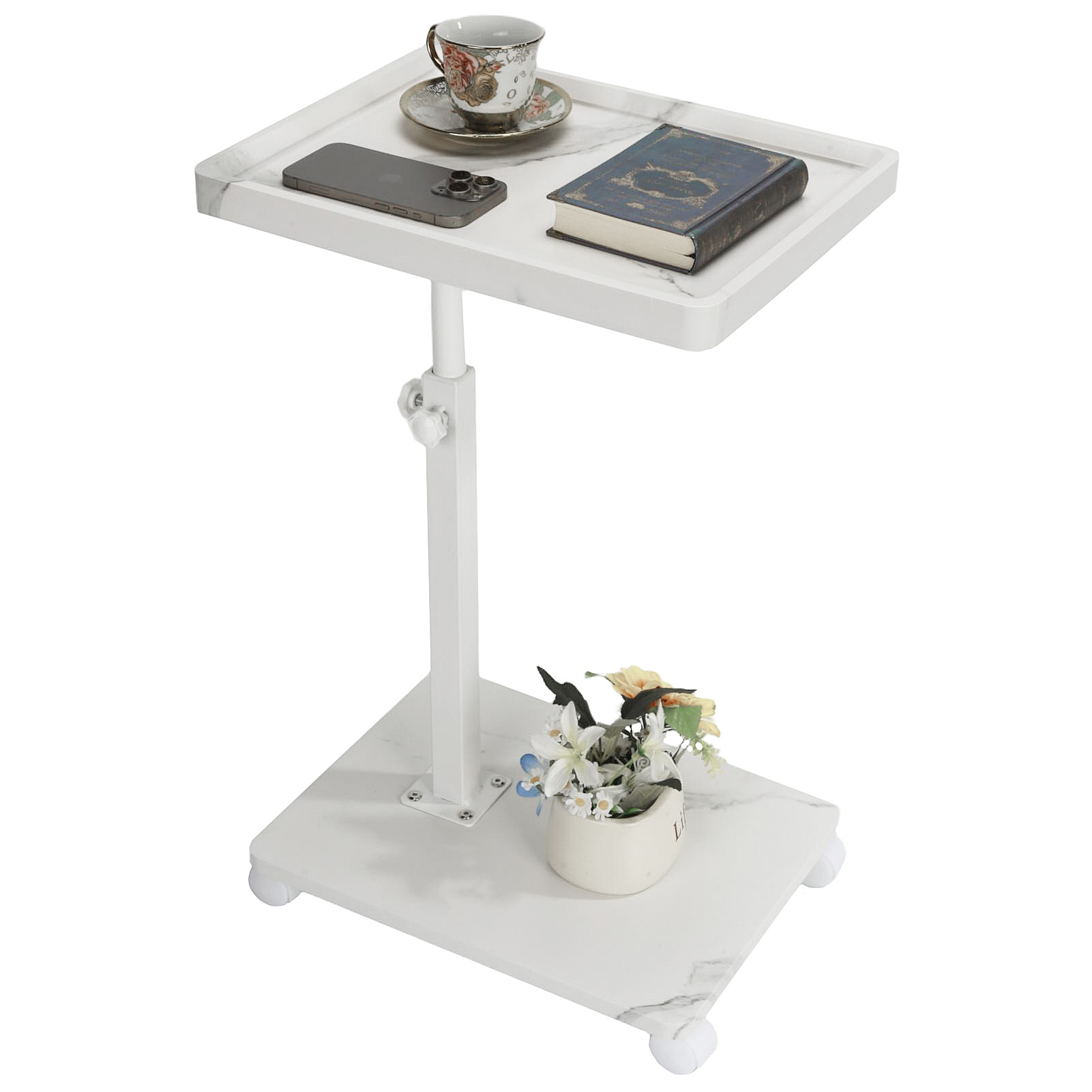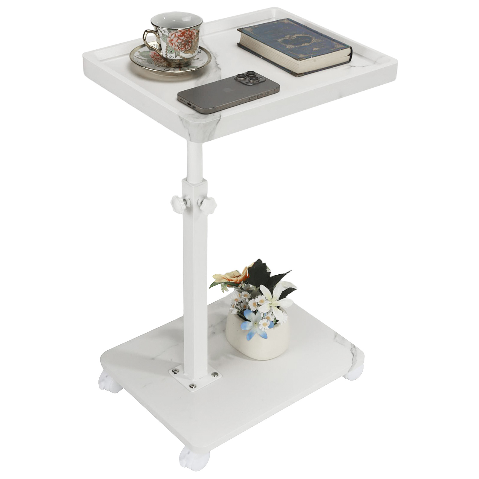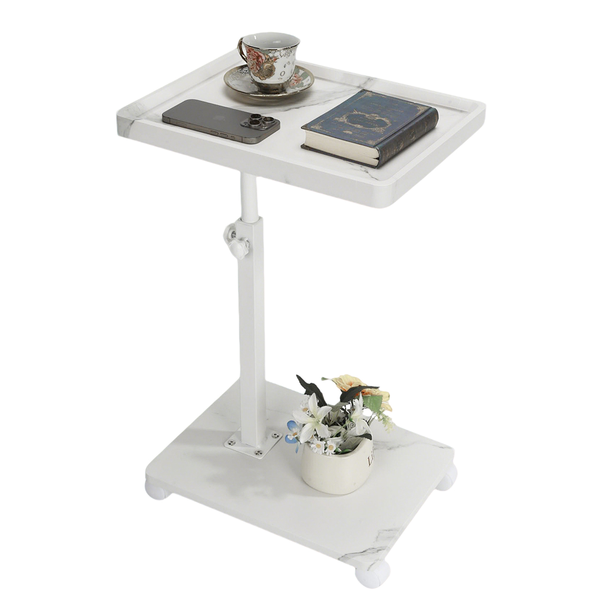 Medium Density Fiberboard & Iron adjustable Side Table durable white PC