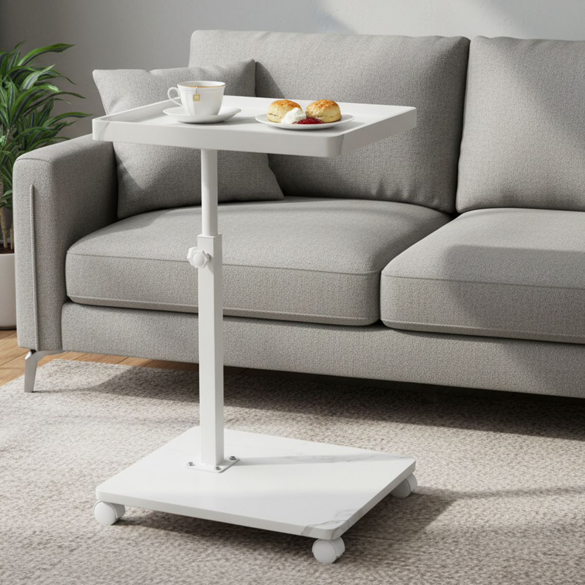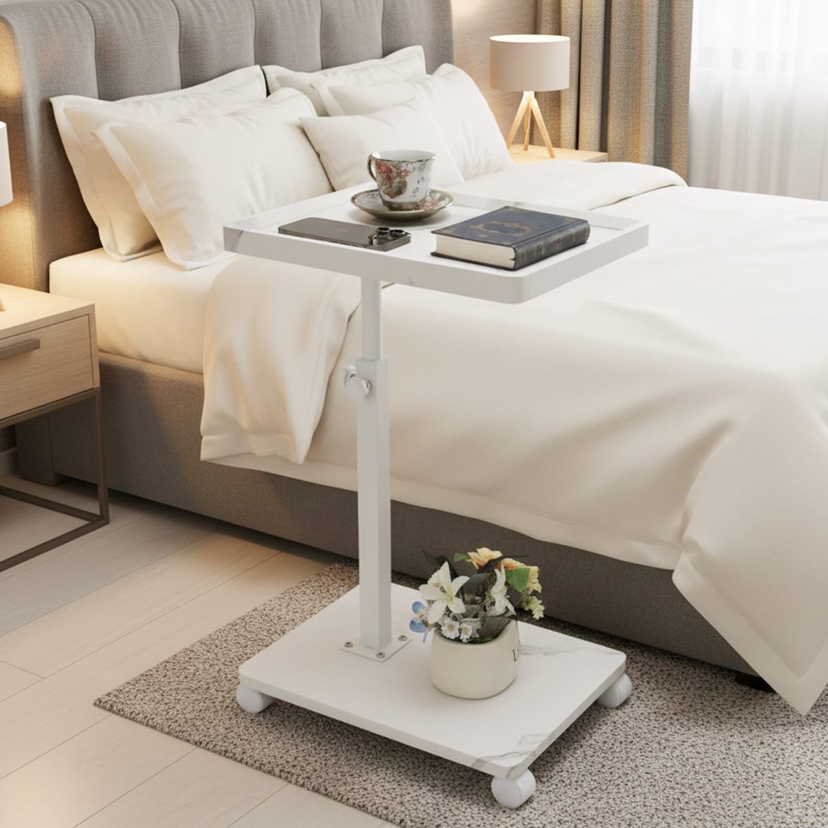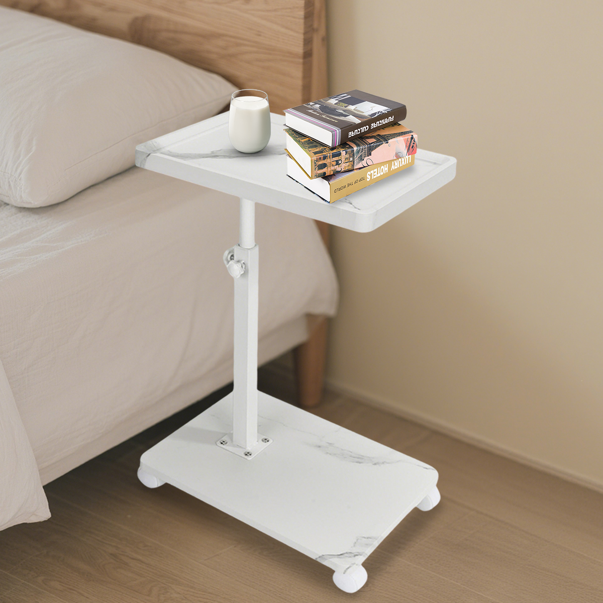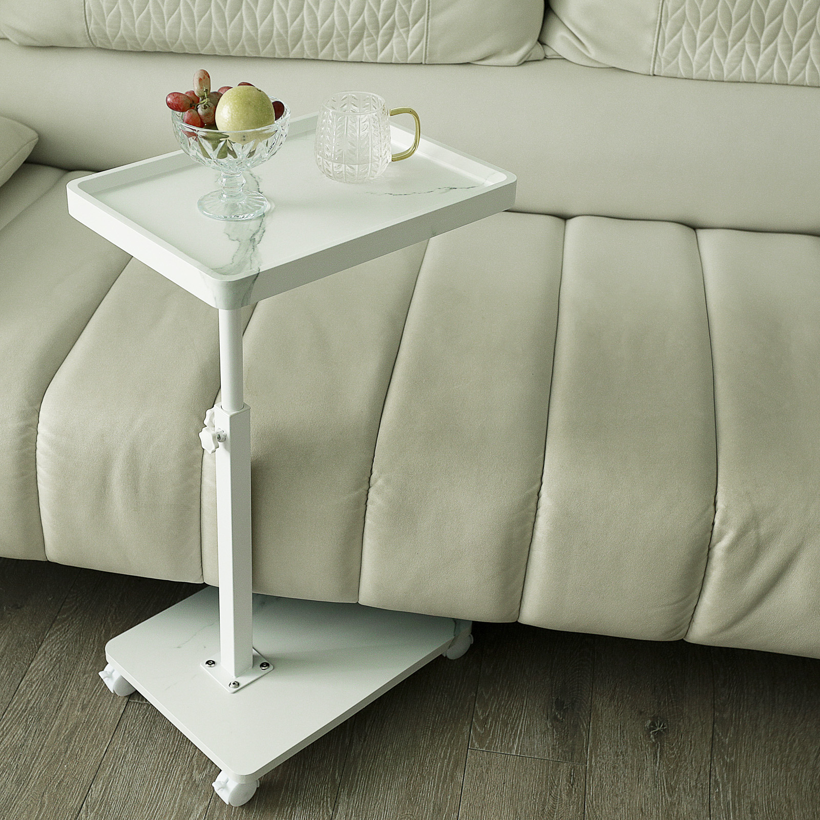Medium Density Fiberboard & Iron adjustable Side Table durable white PC