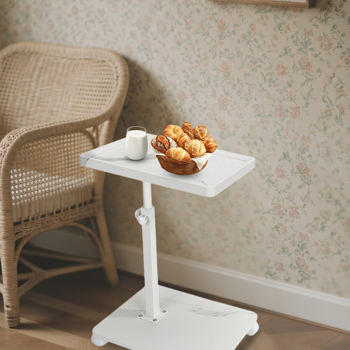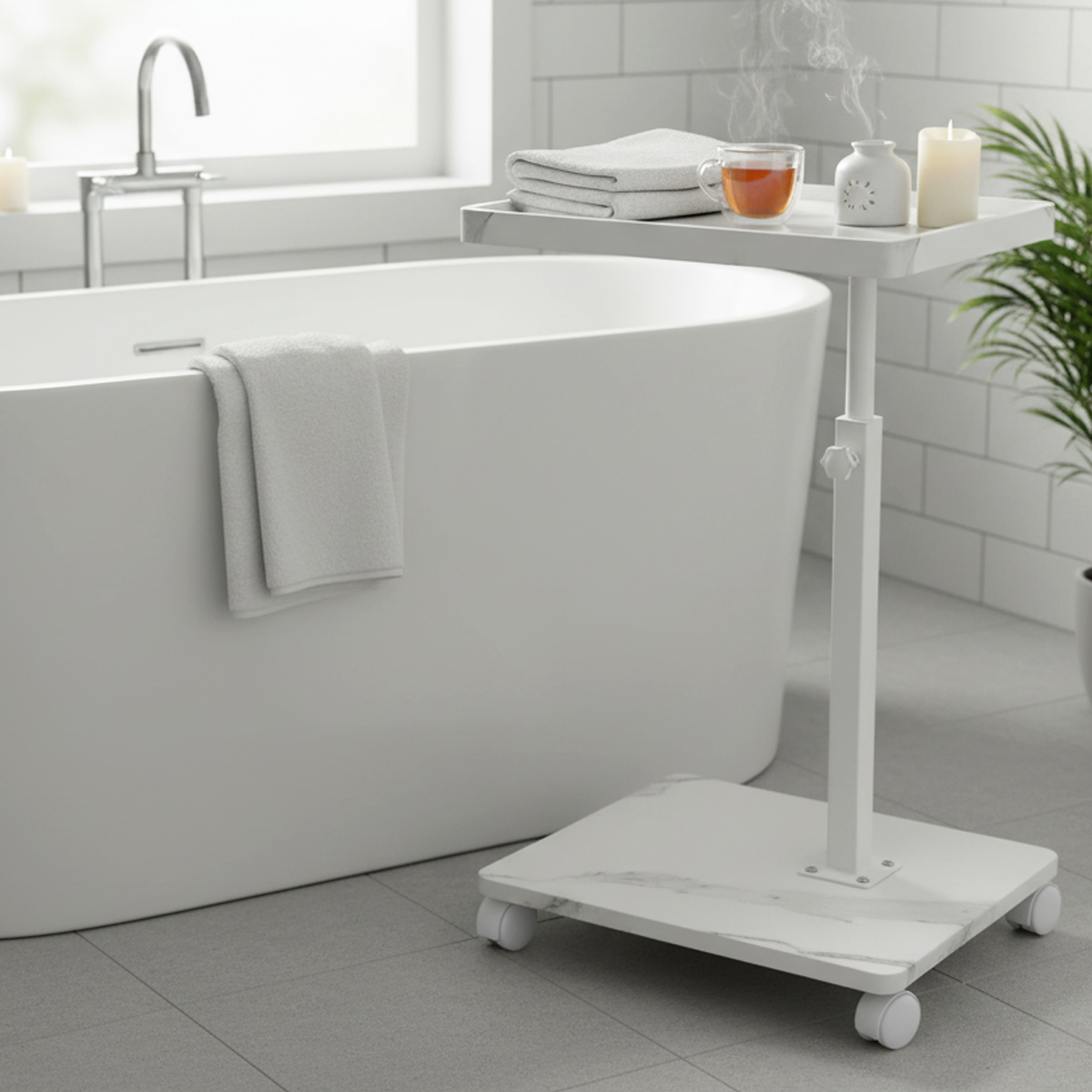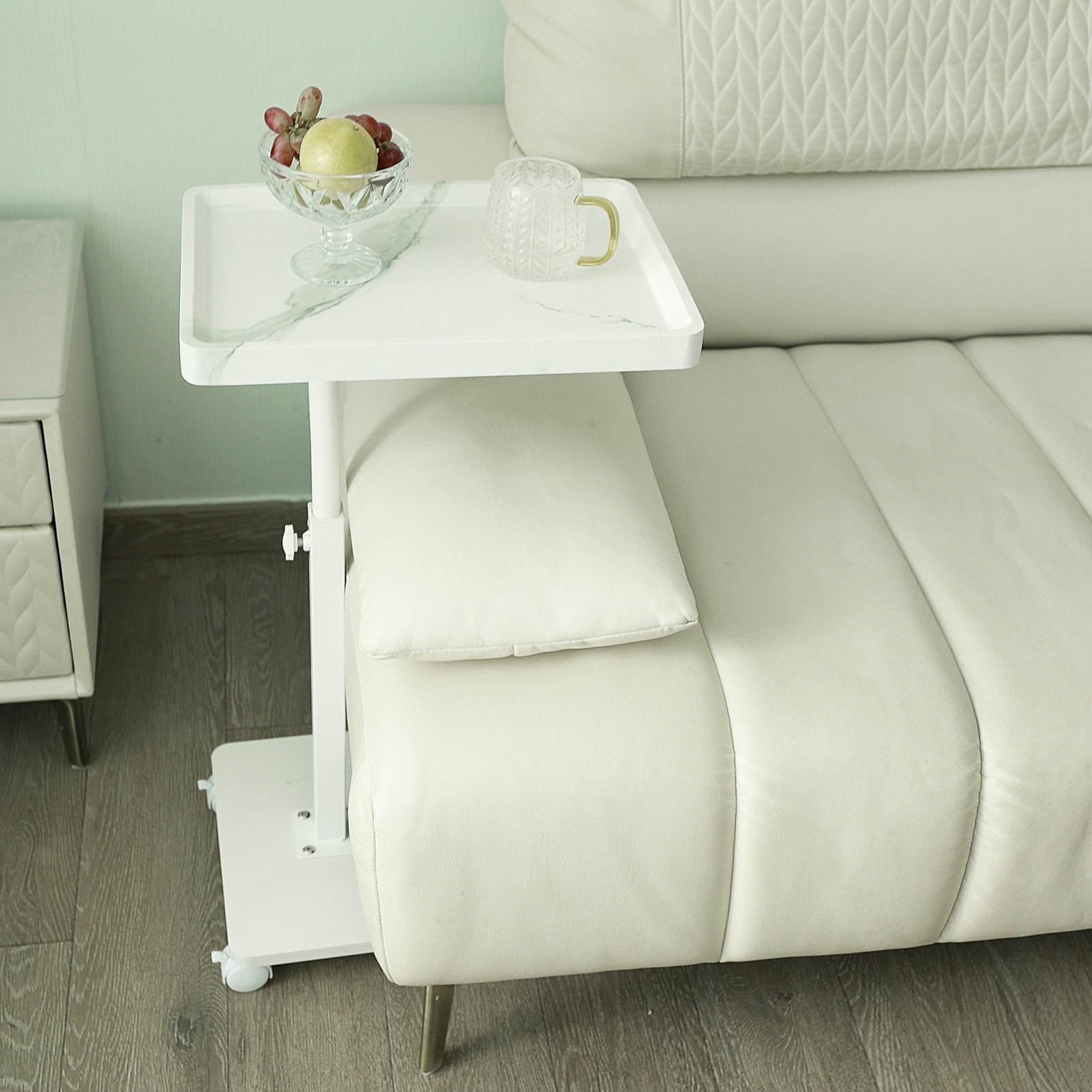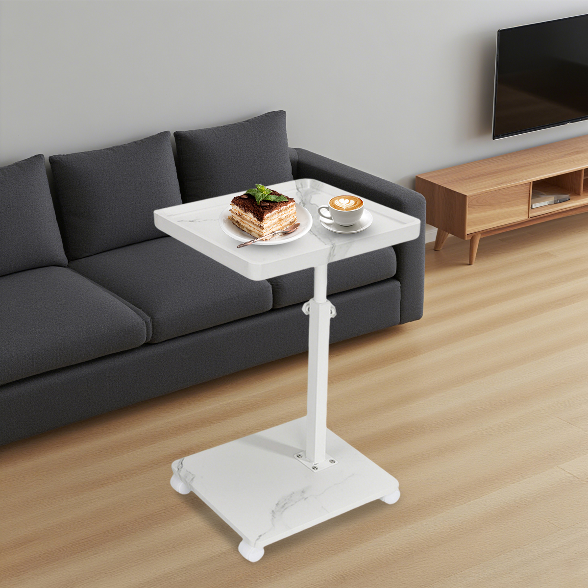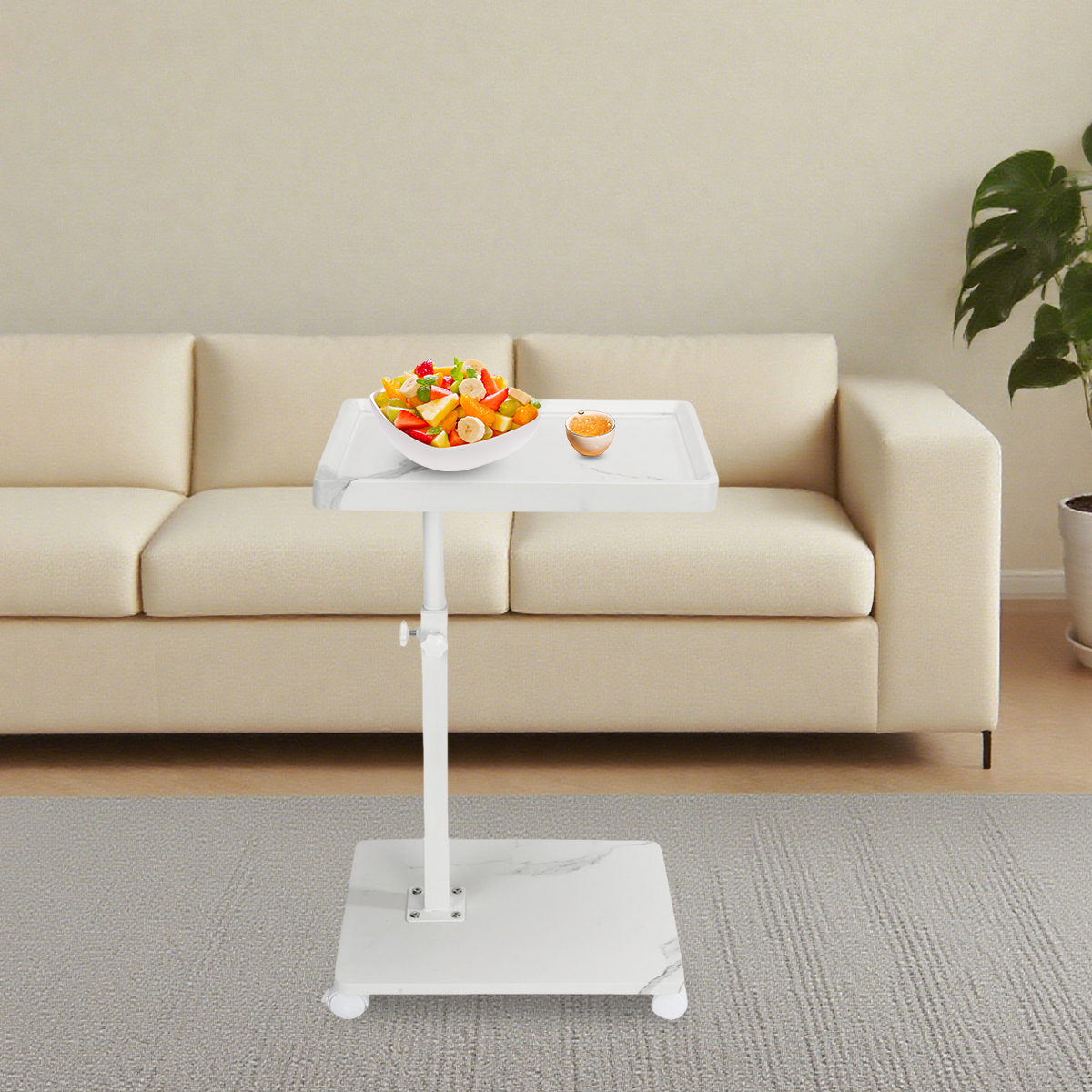 Medium Density Fiberboard & Iron adjustable Side Table durable white PC