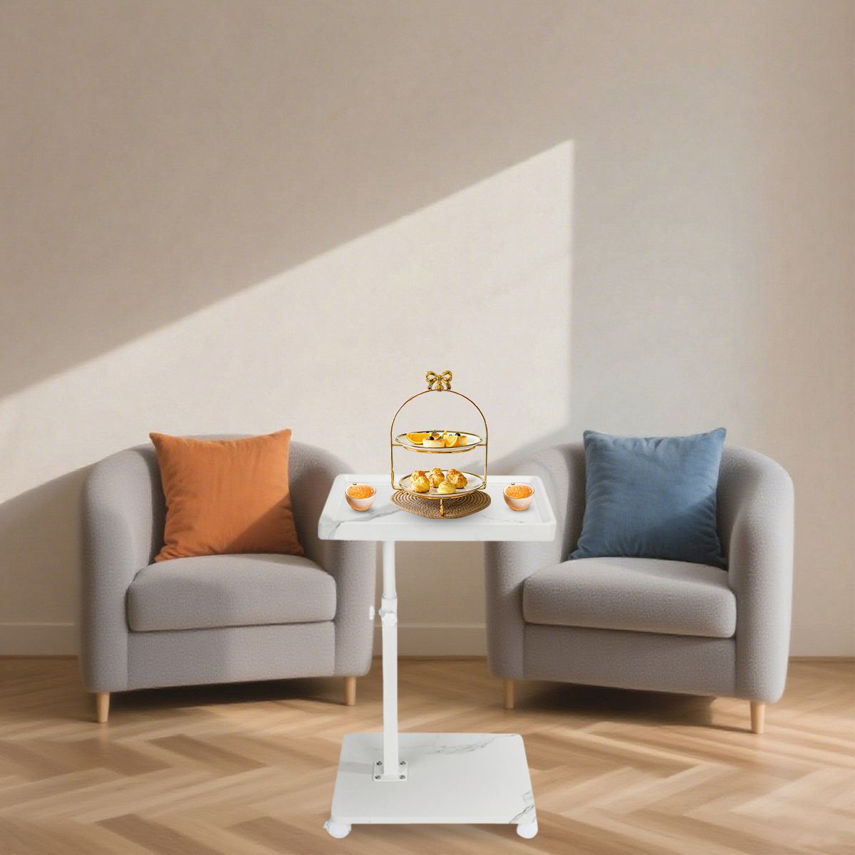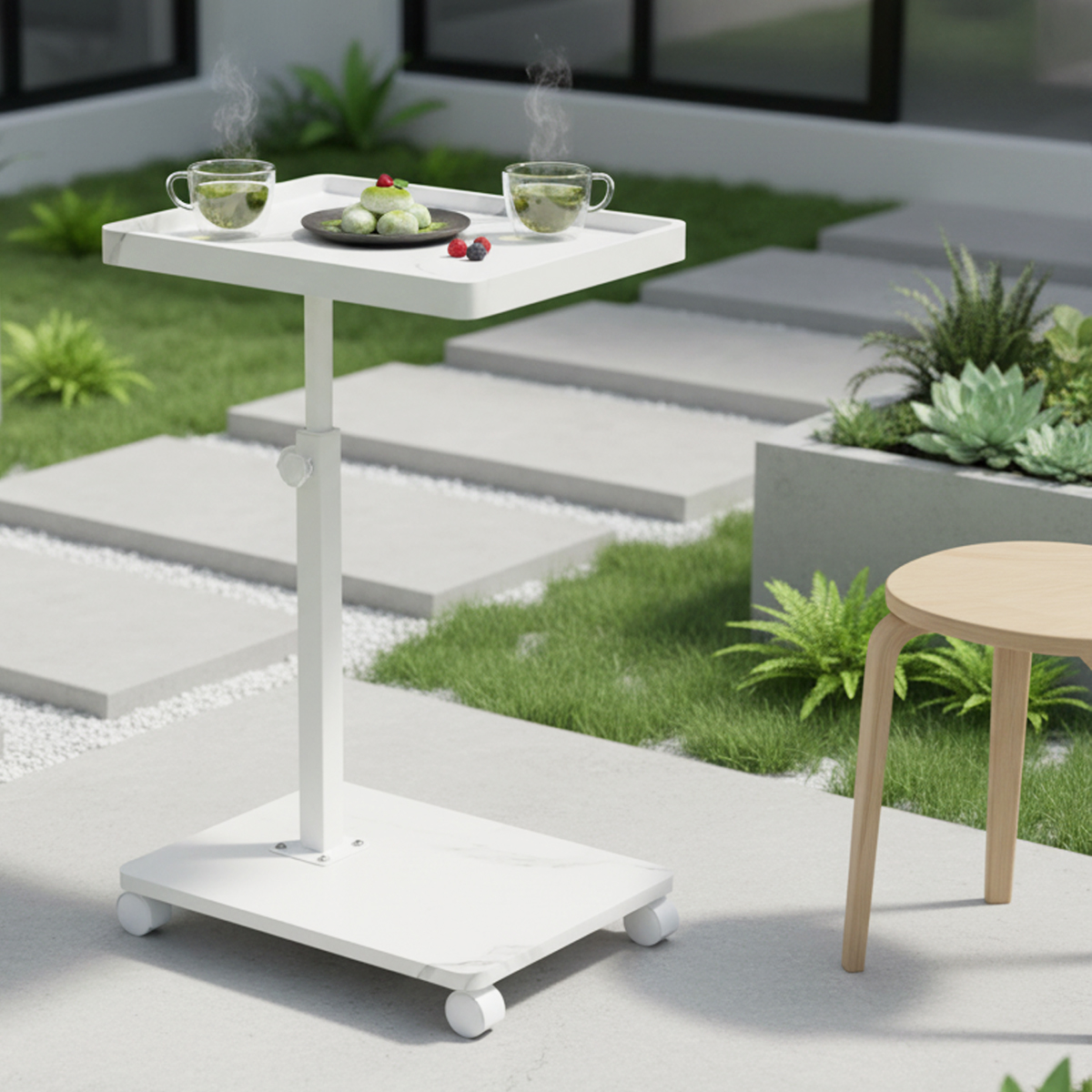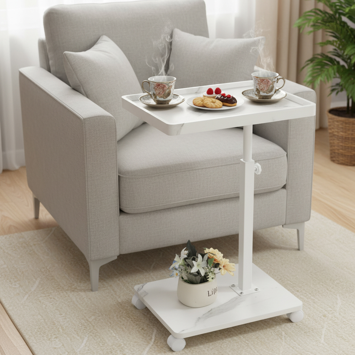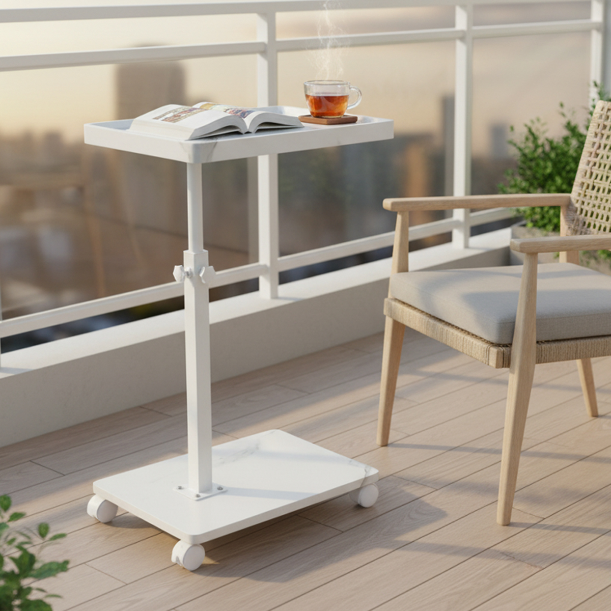 Medium Density Fiberboard & Iron adjustable Side Table durable white PC