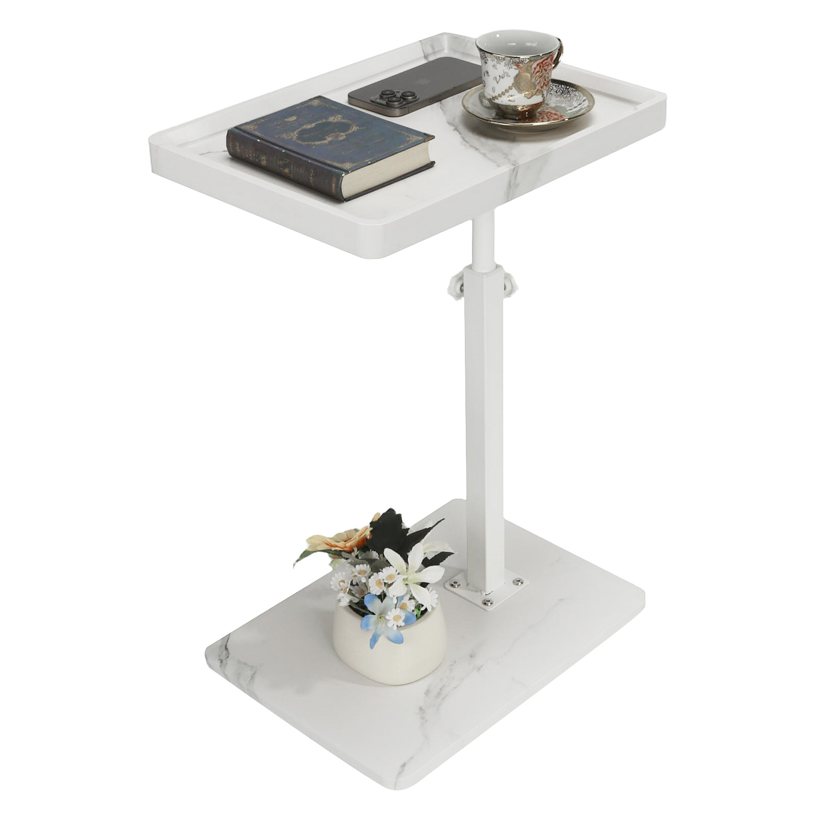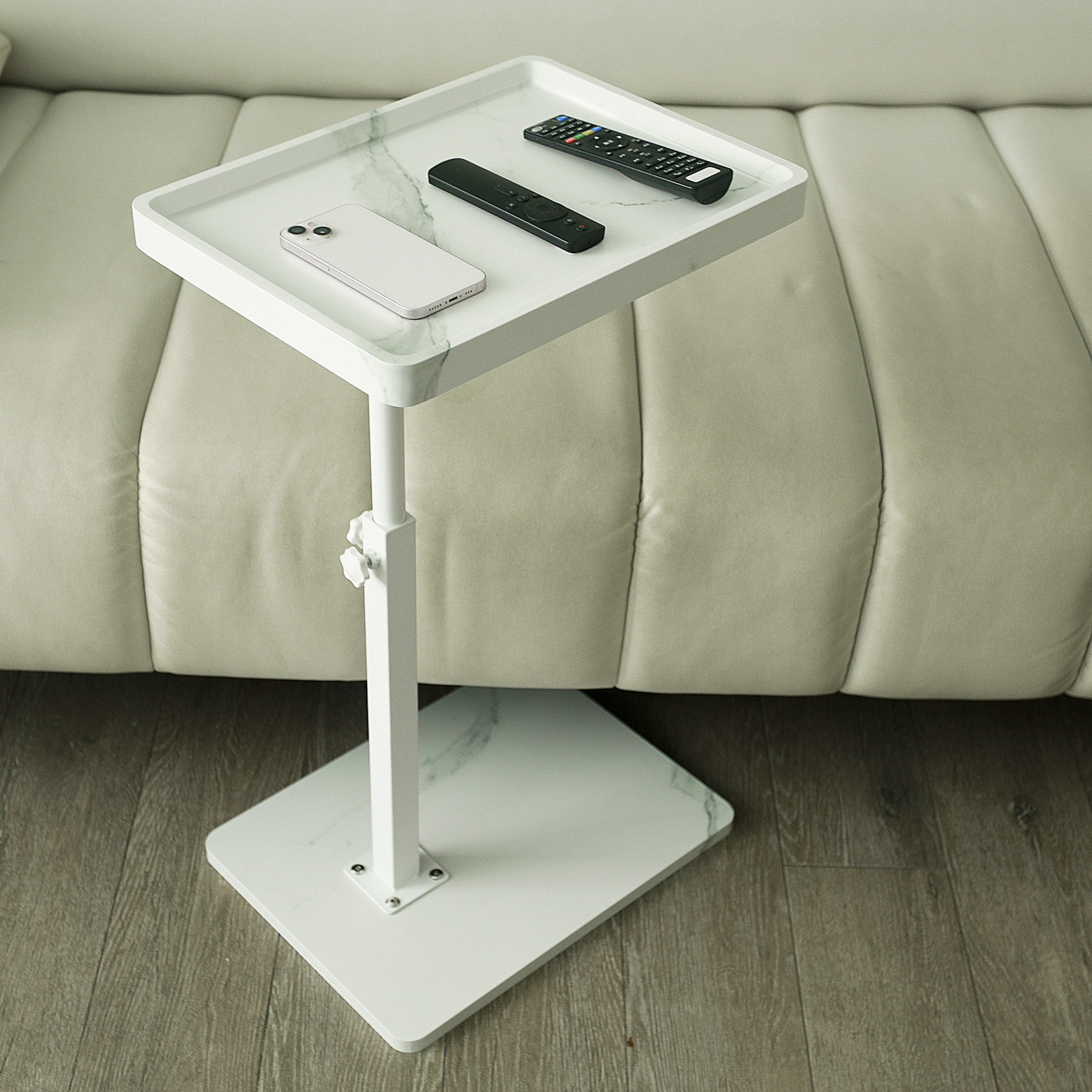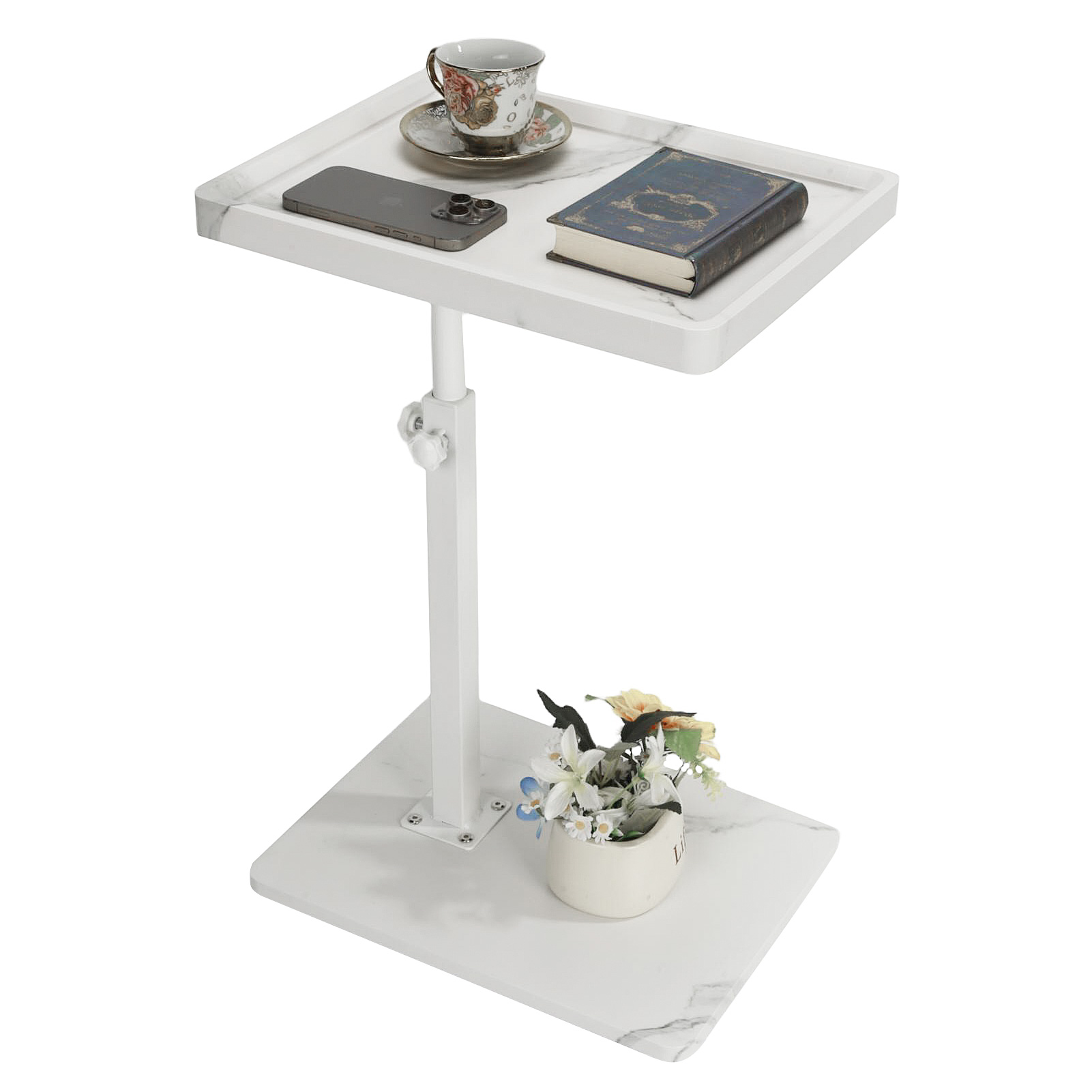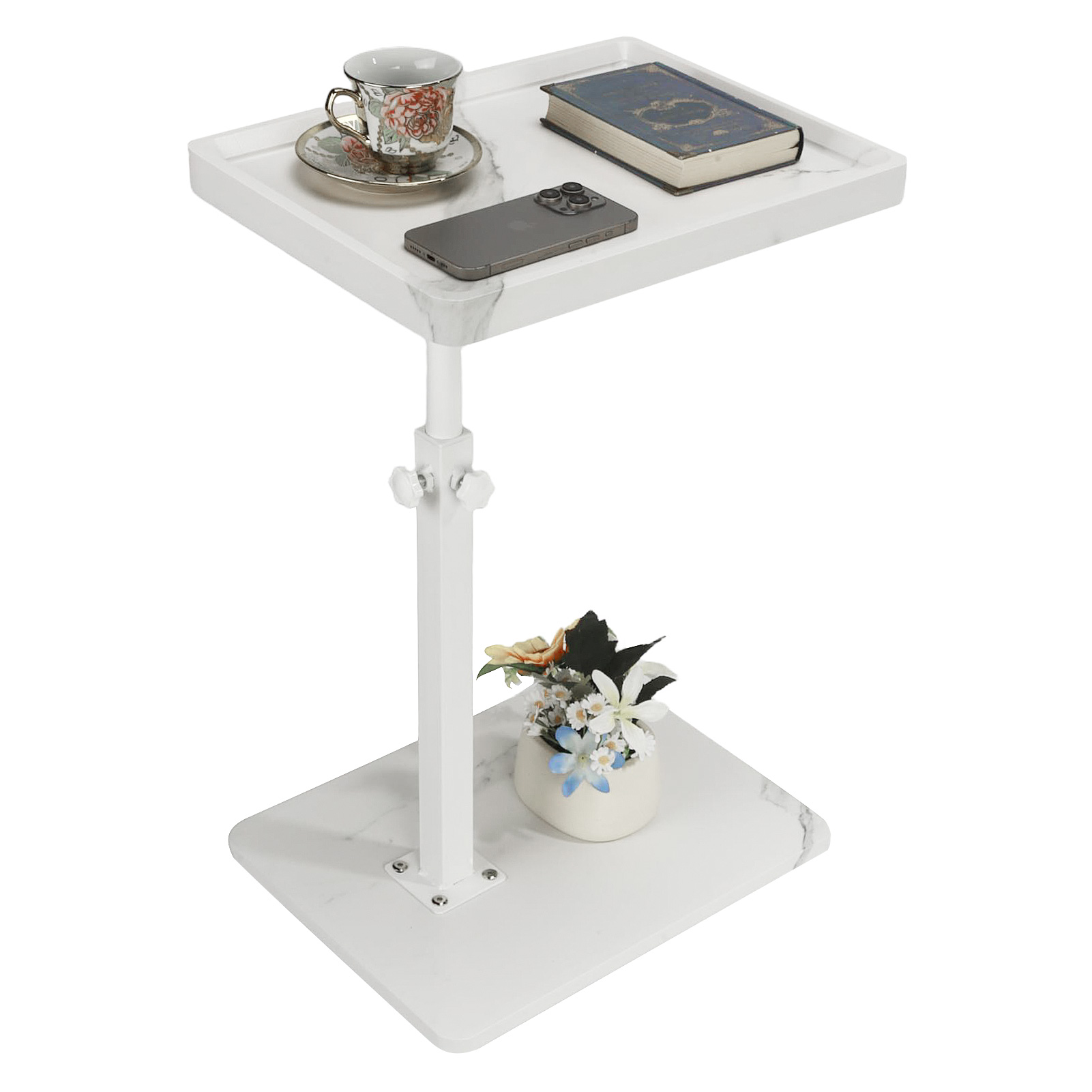 Medium Density Fiberboard & Iron adjustable Side Table durable white PC