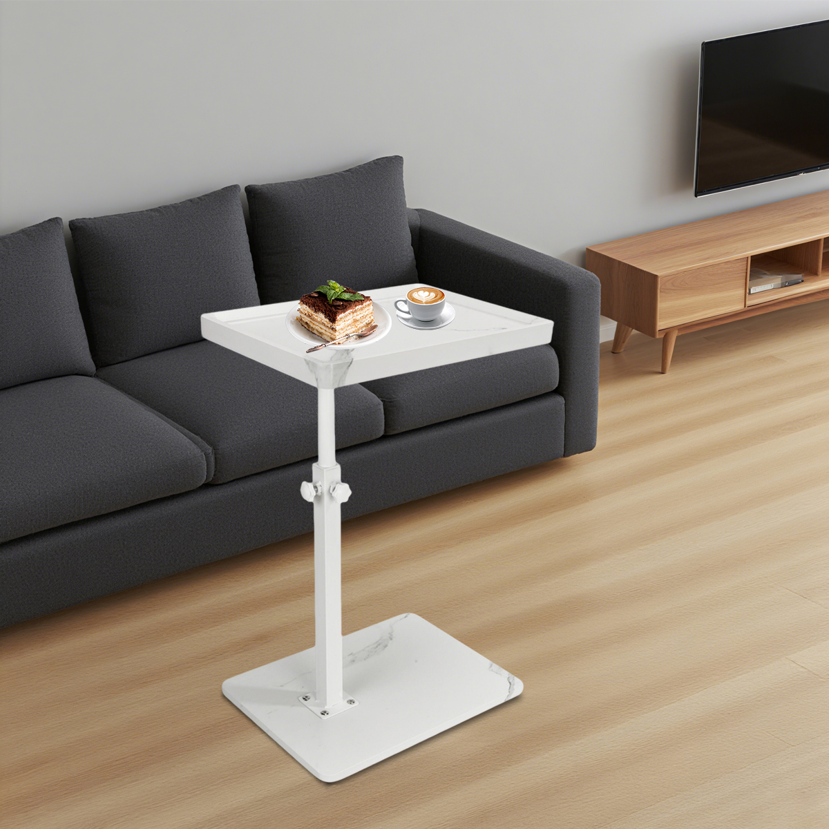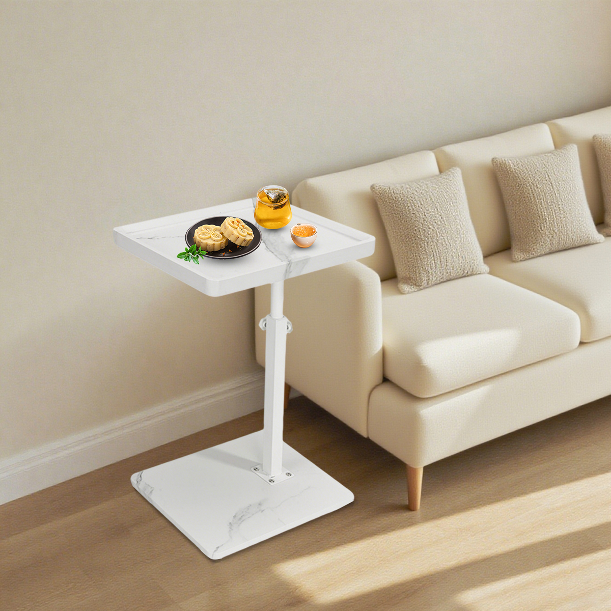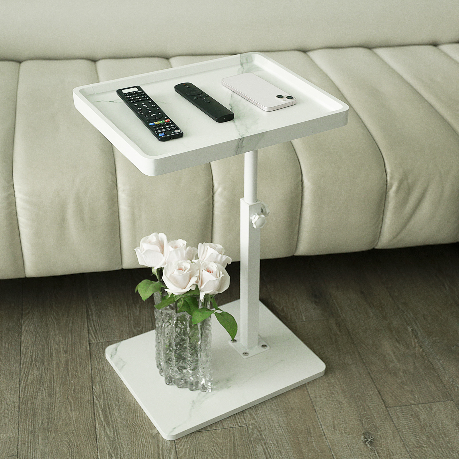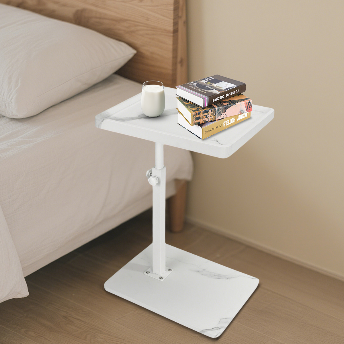 Medium Density Fiberboard & Iron adjustable Side Table durable white PC