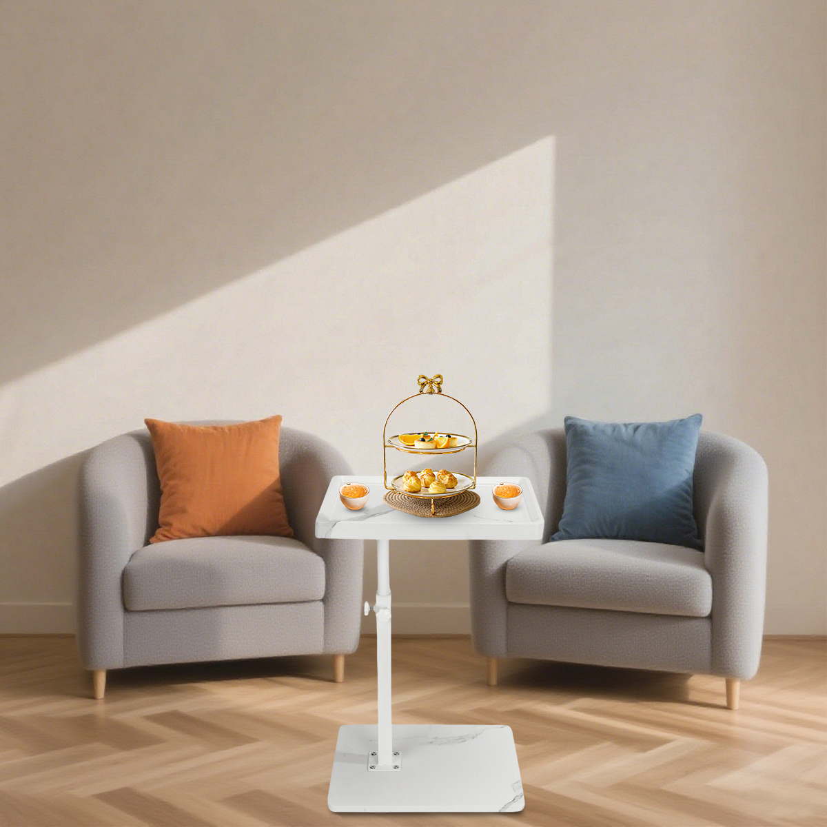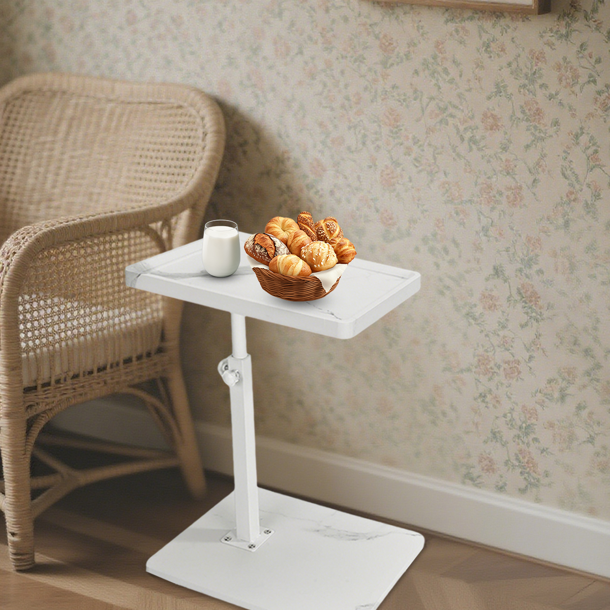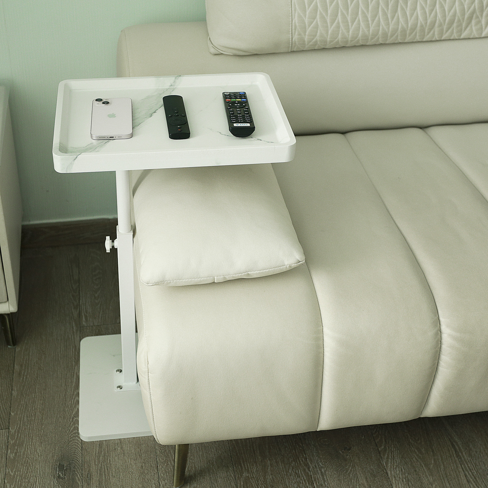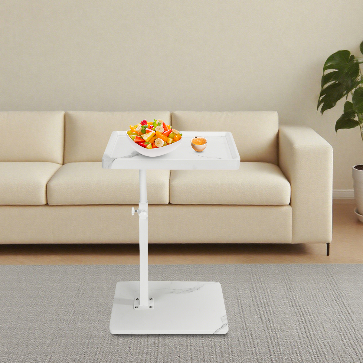 Medium Density Fiberboard & Iron adjustable Side Table durable white PC