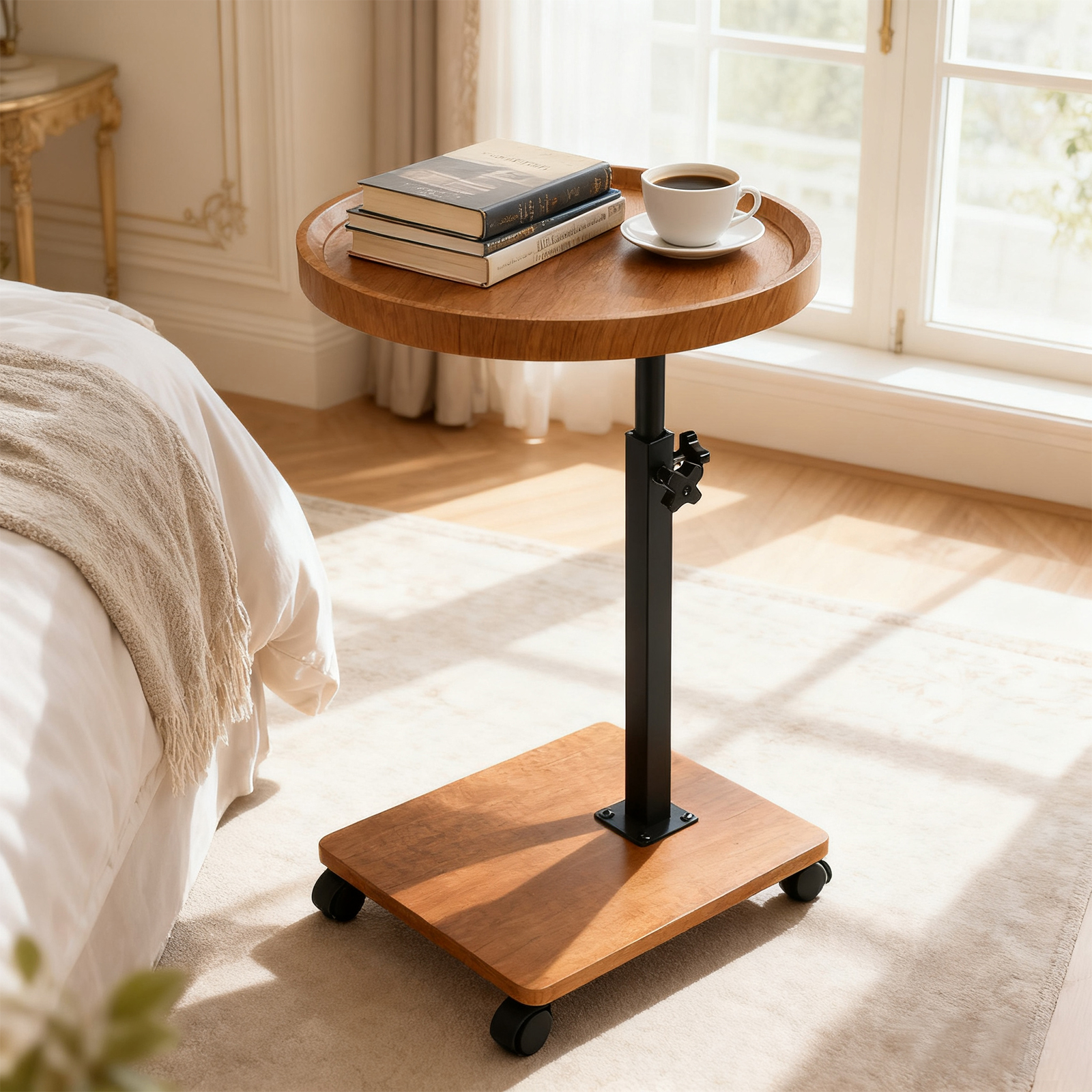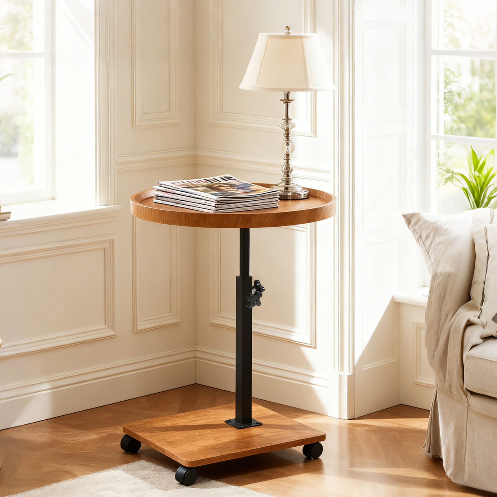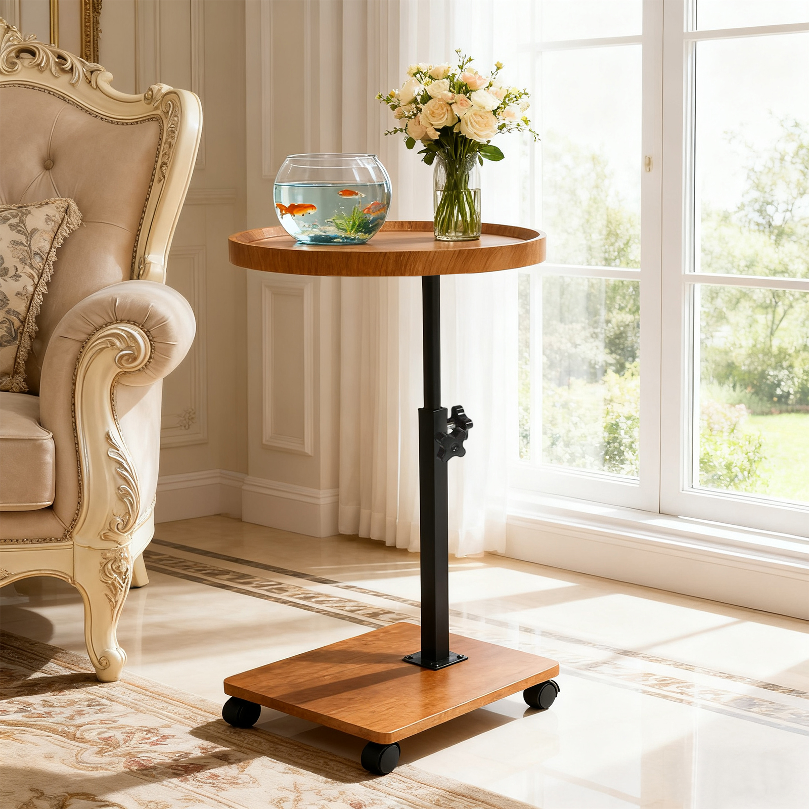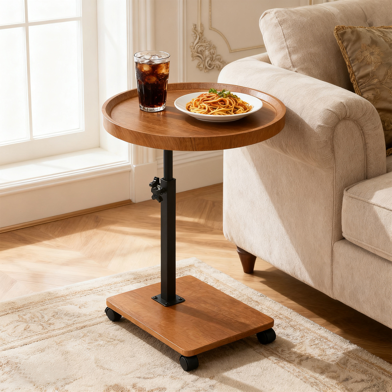 Medium Density Fiberboard & Iron adjustable Side Table durable Dark Brown PC