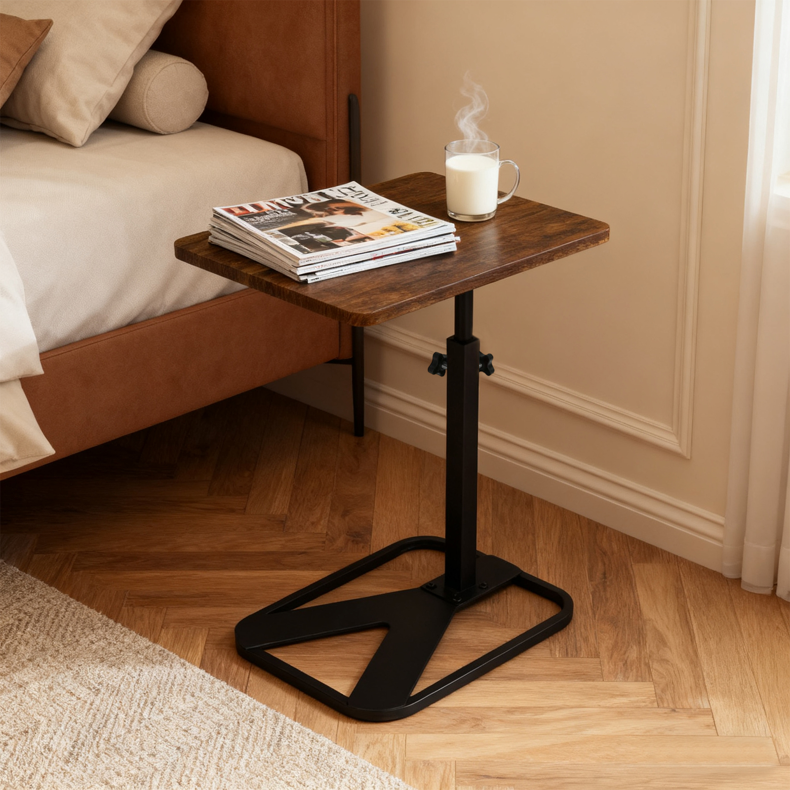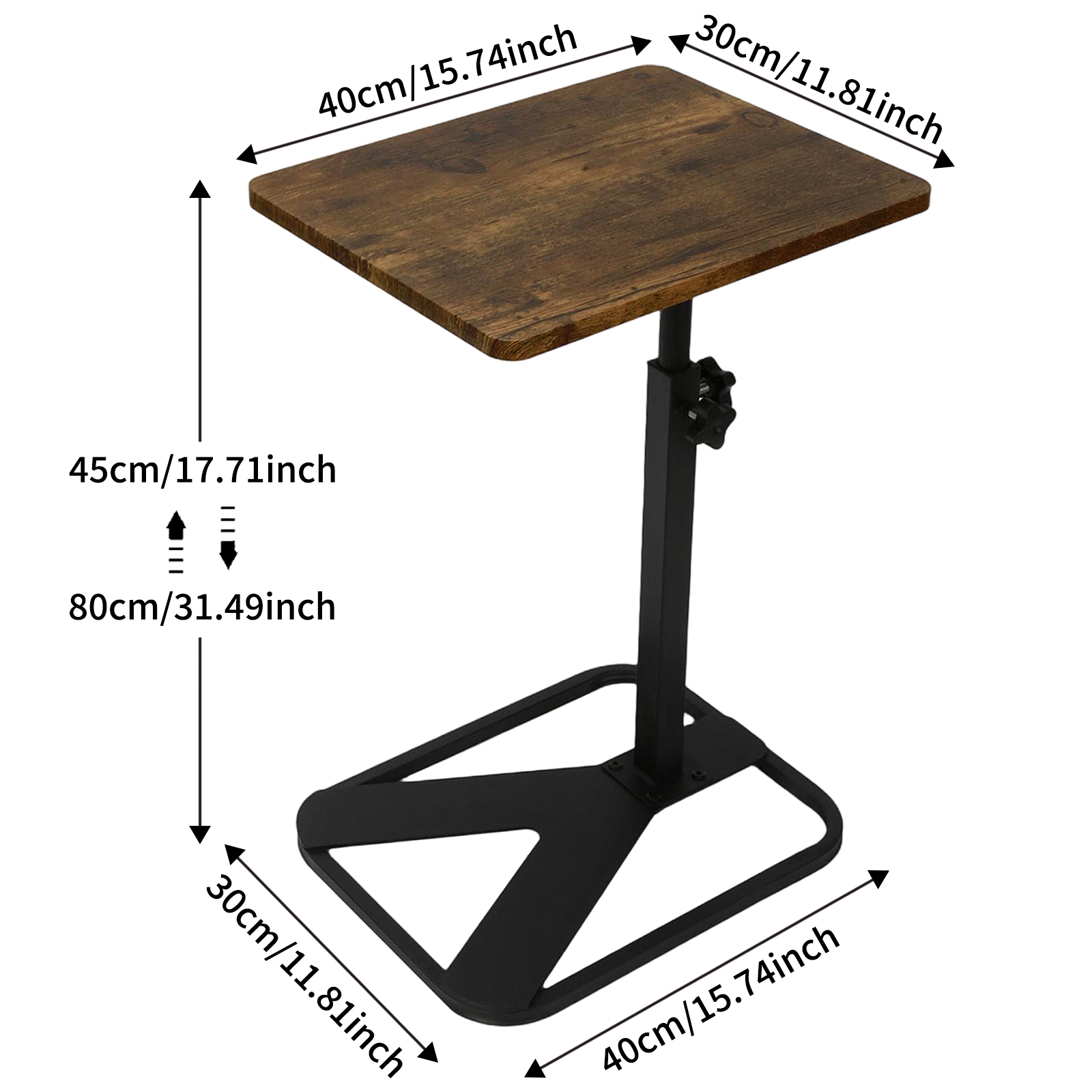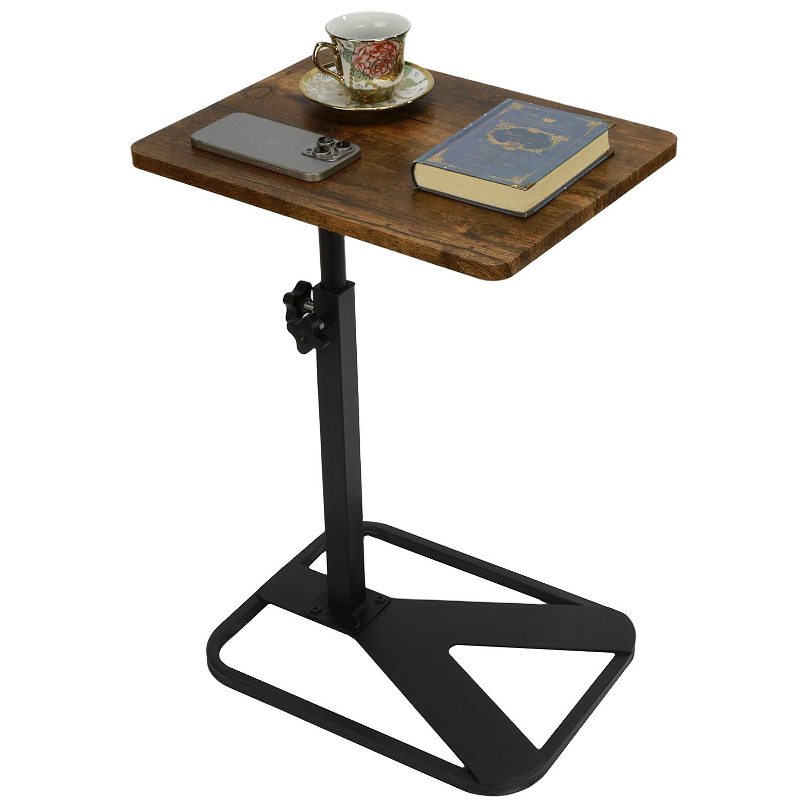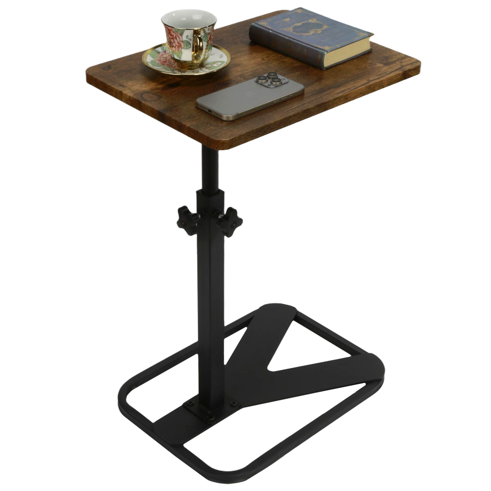 Medium Density Fiberboard & Iron adjustable Side Table durable dark coffee PC