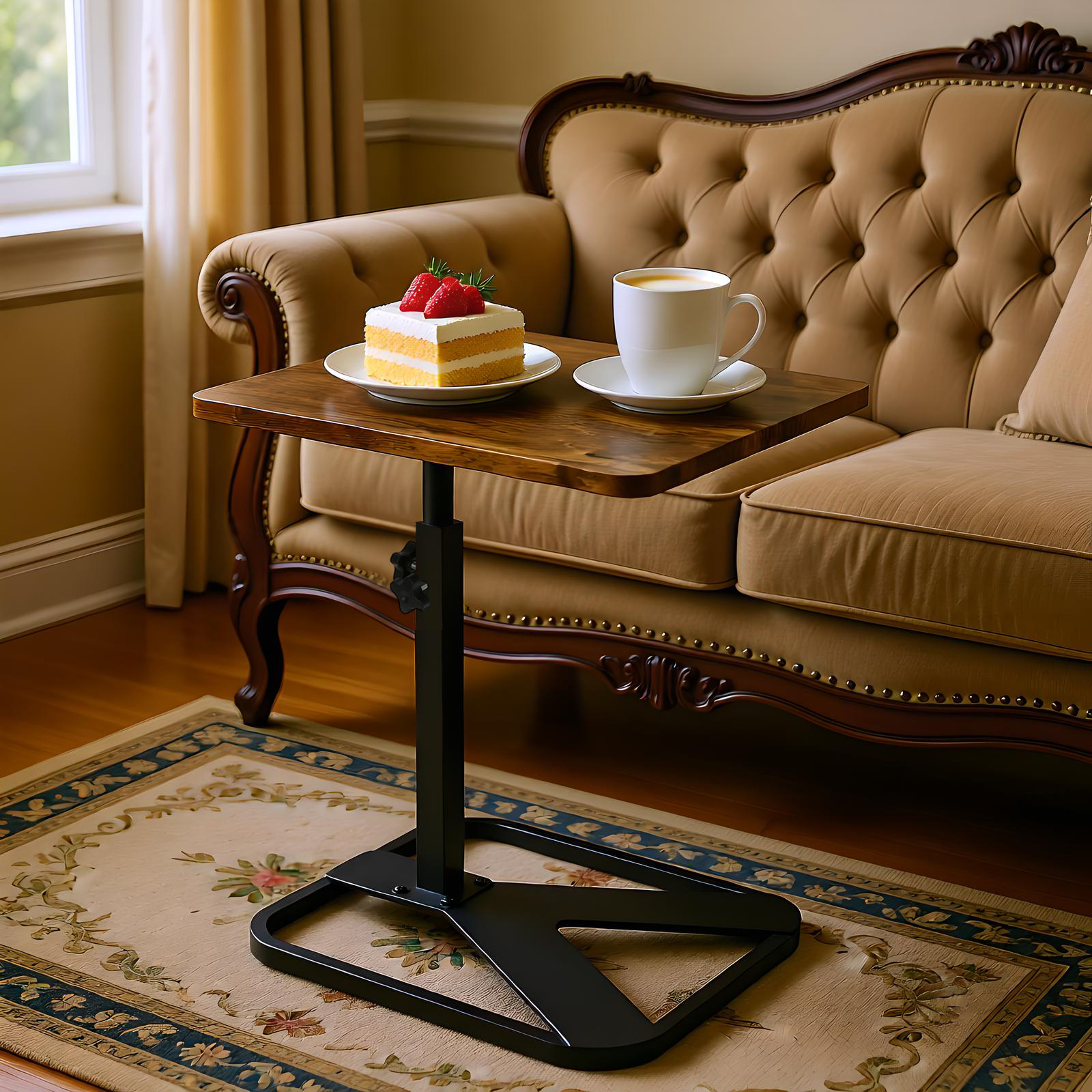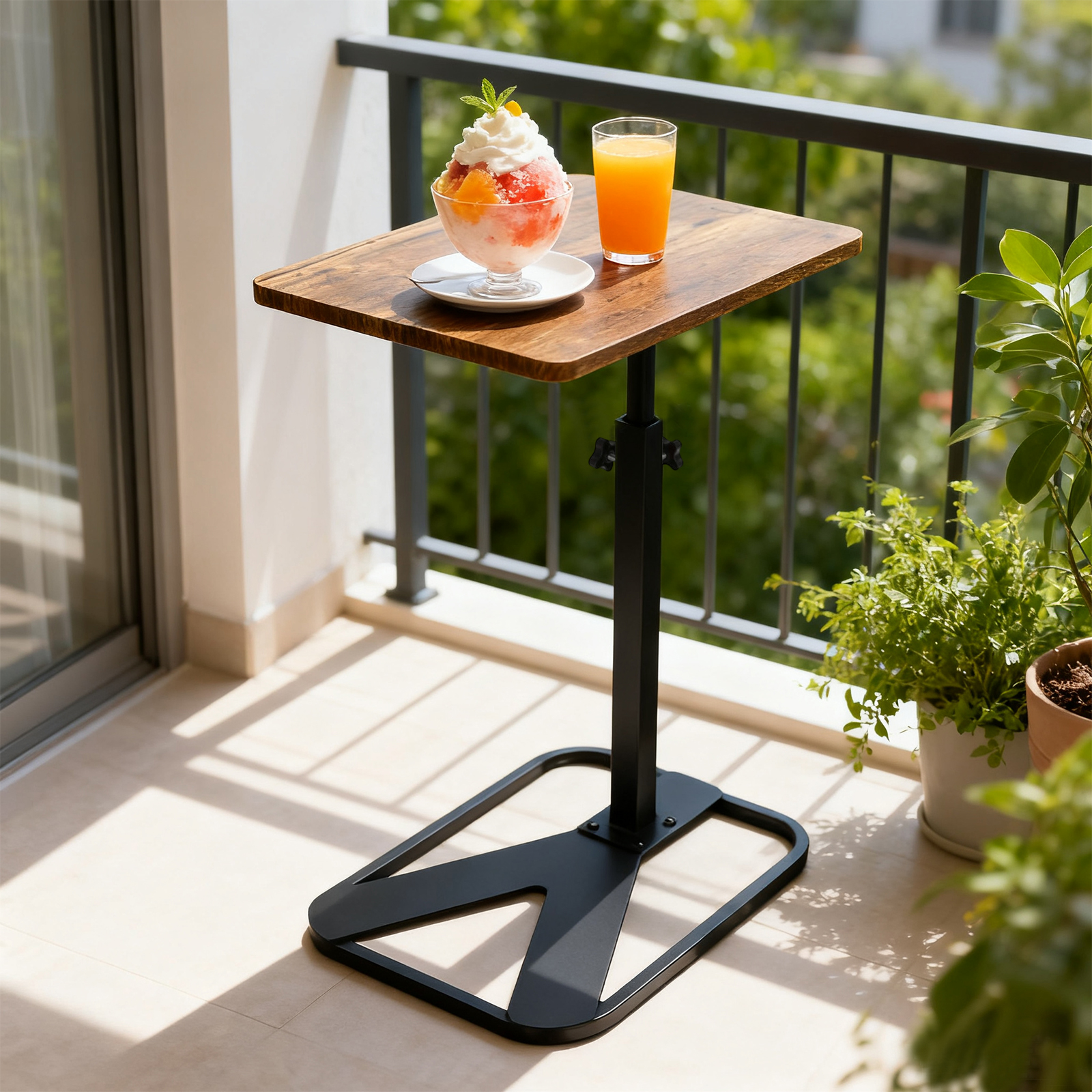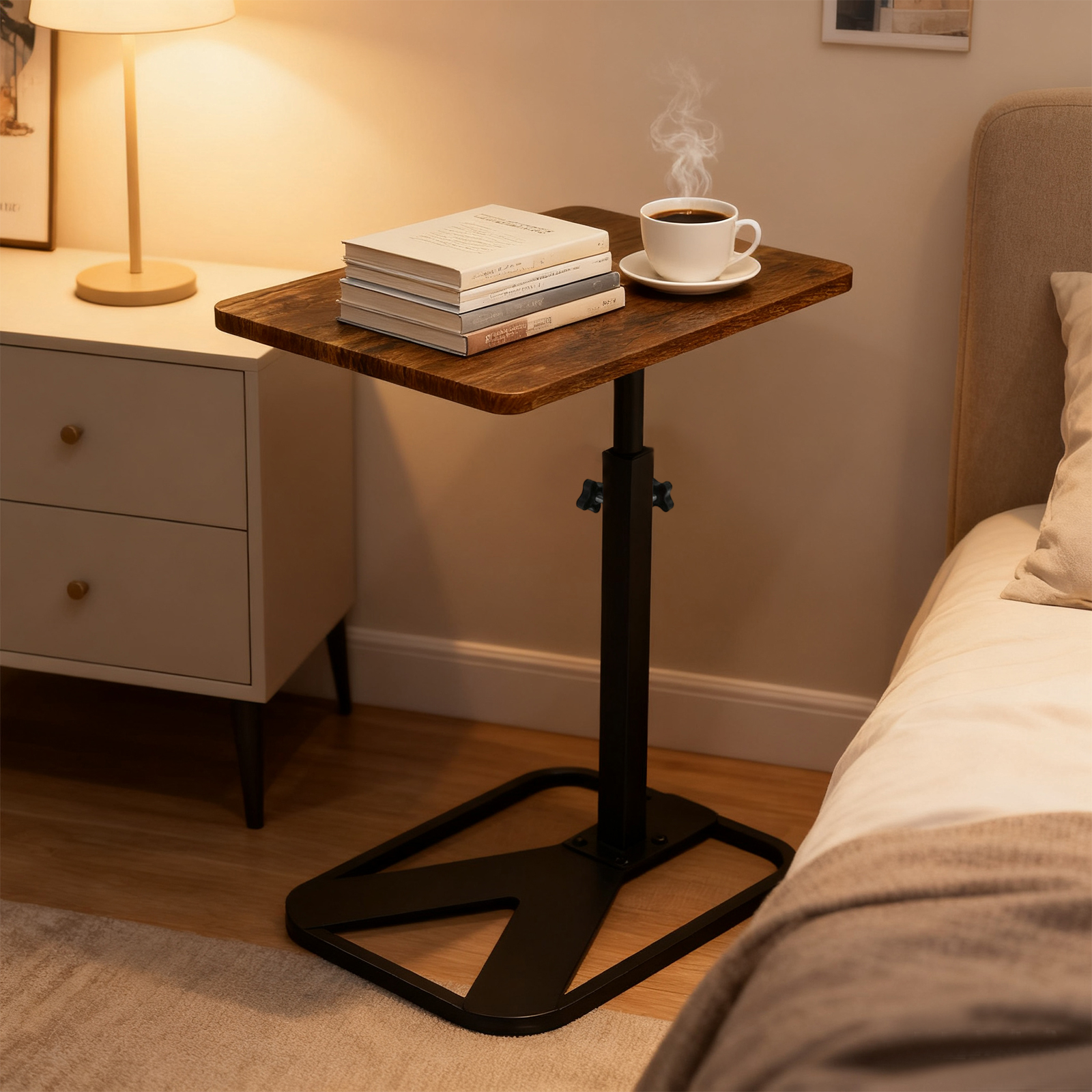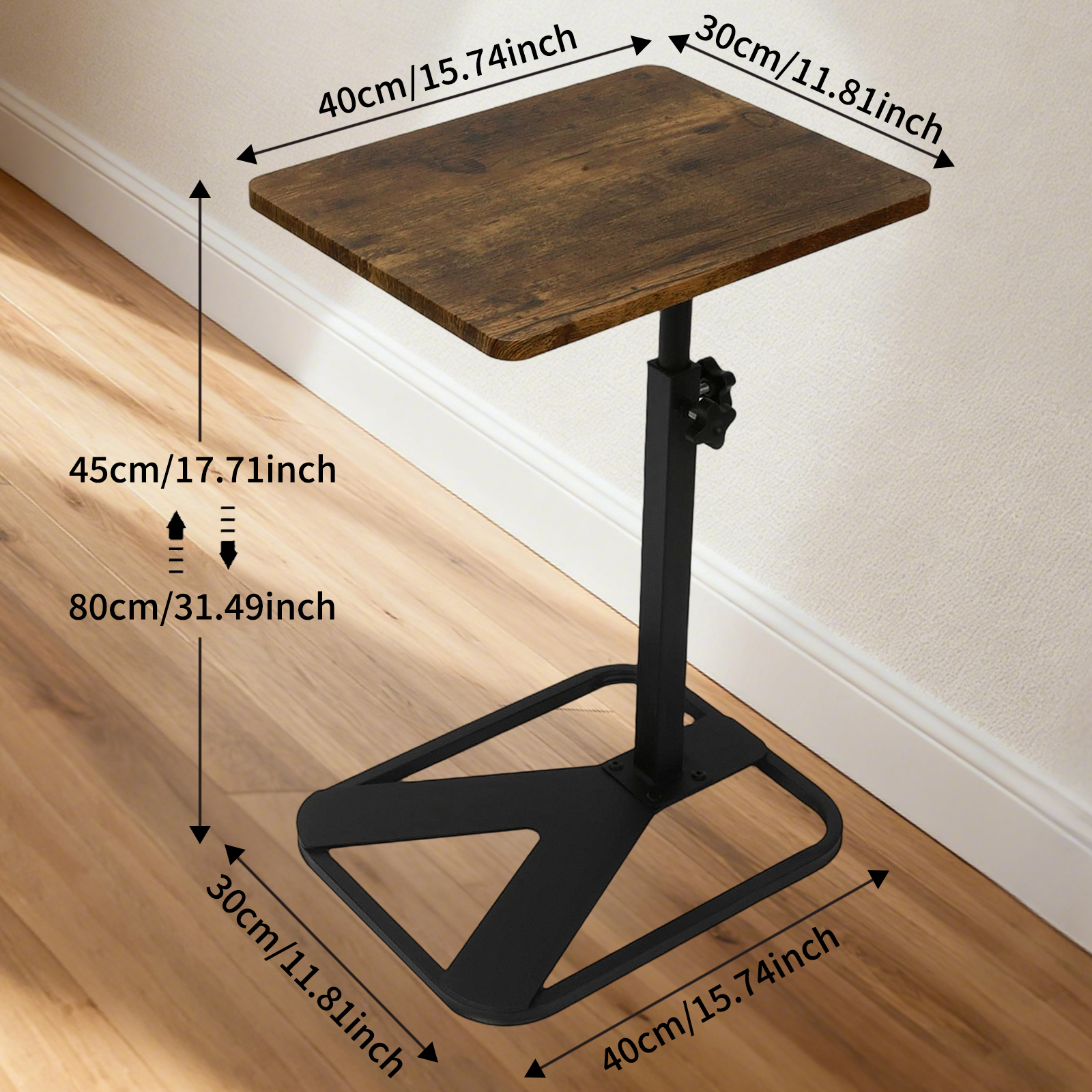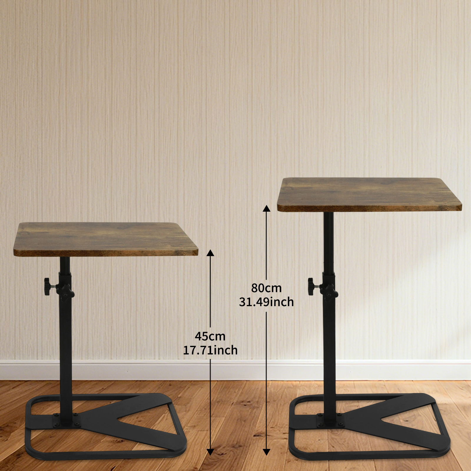 Medium Density Fiberboard & Iron adjustable Side Table durable dark coffee PC