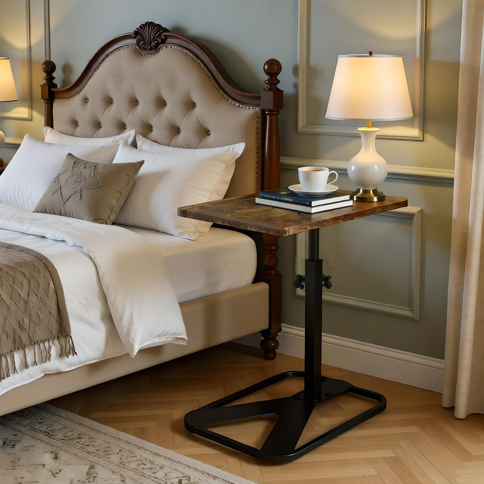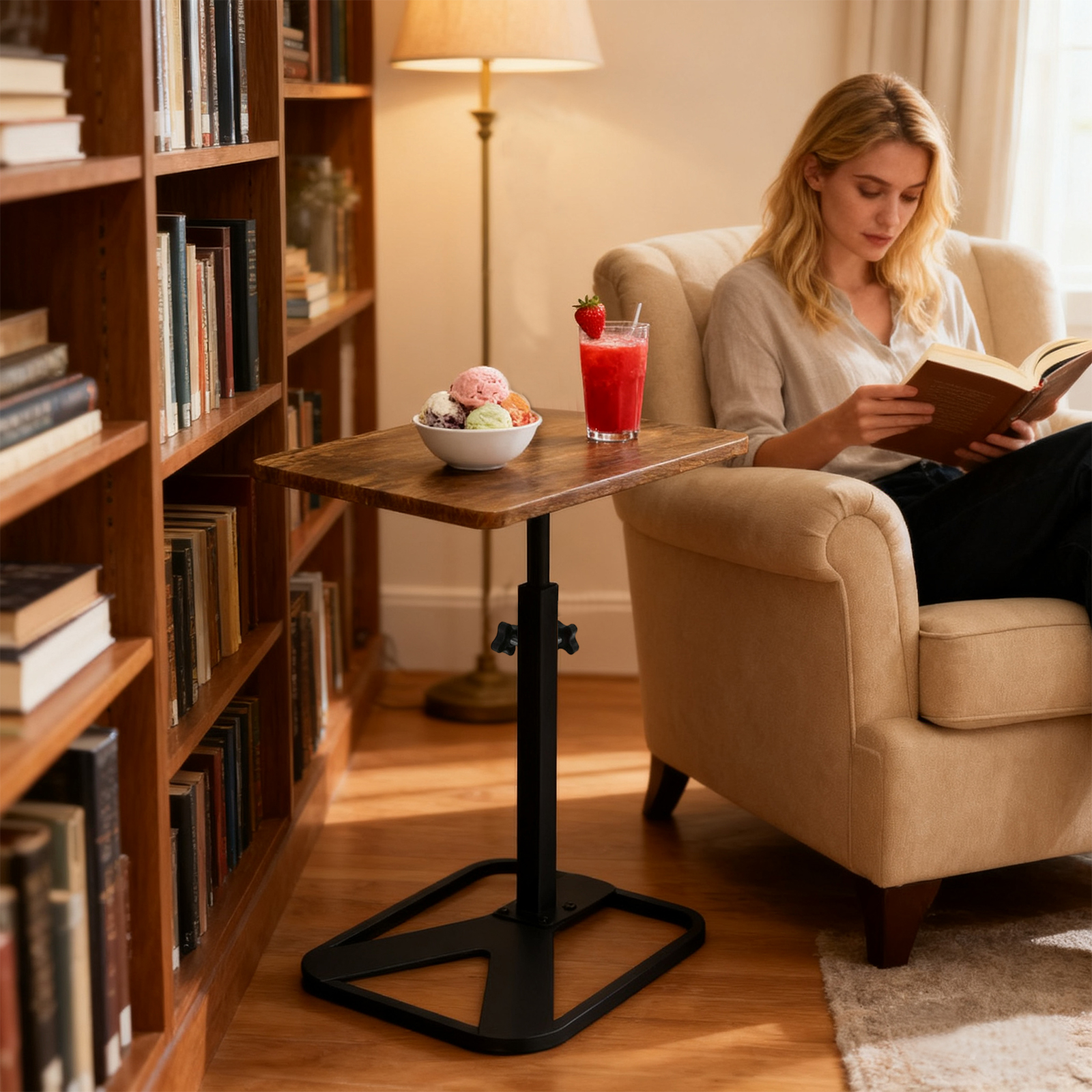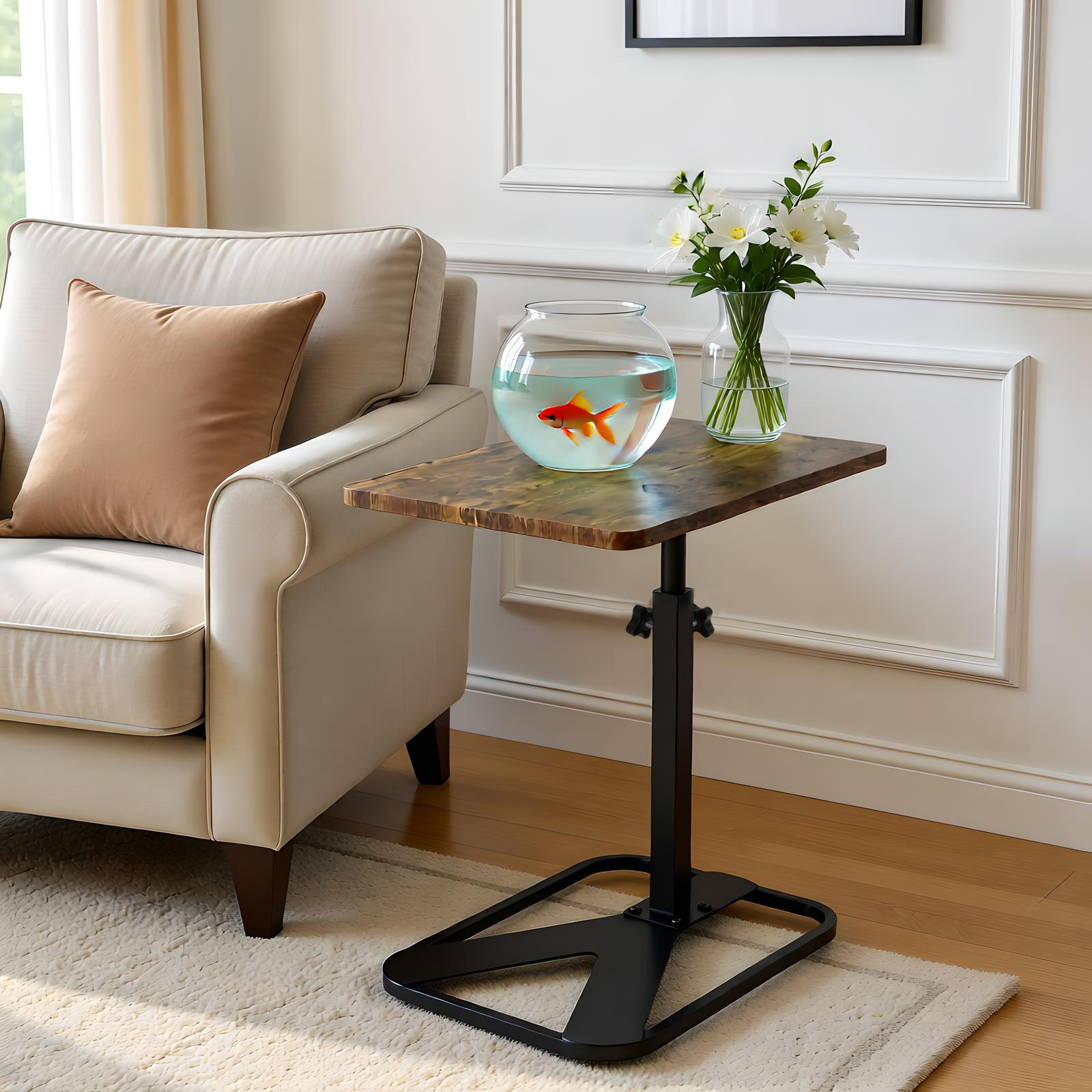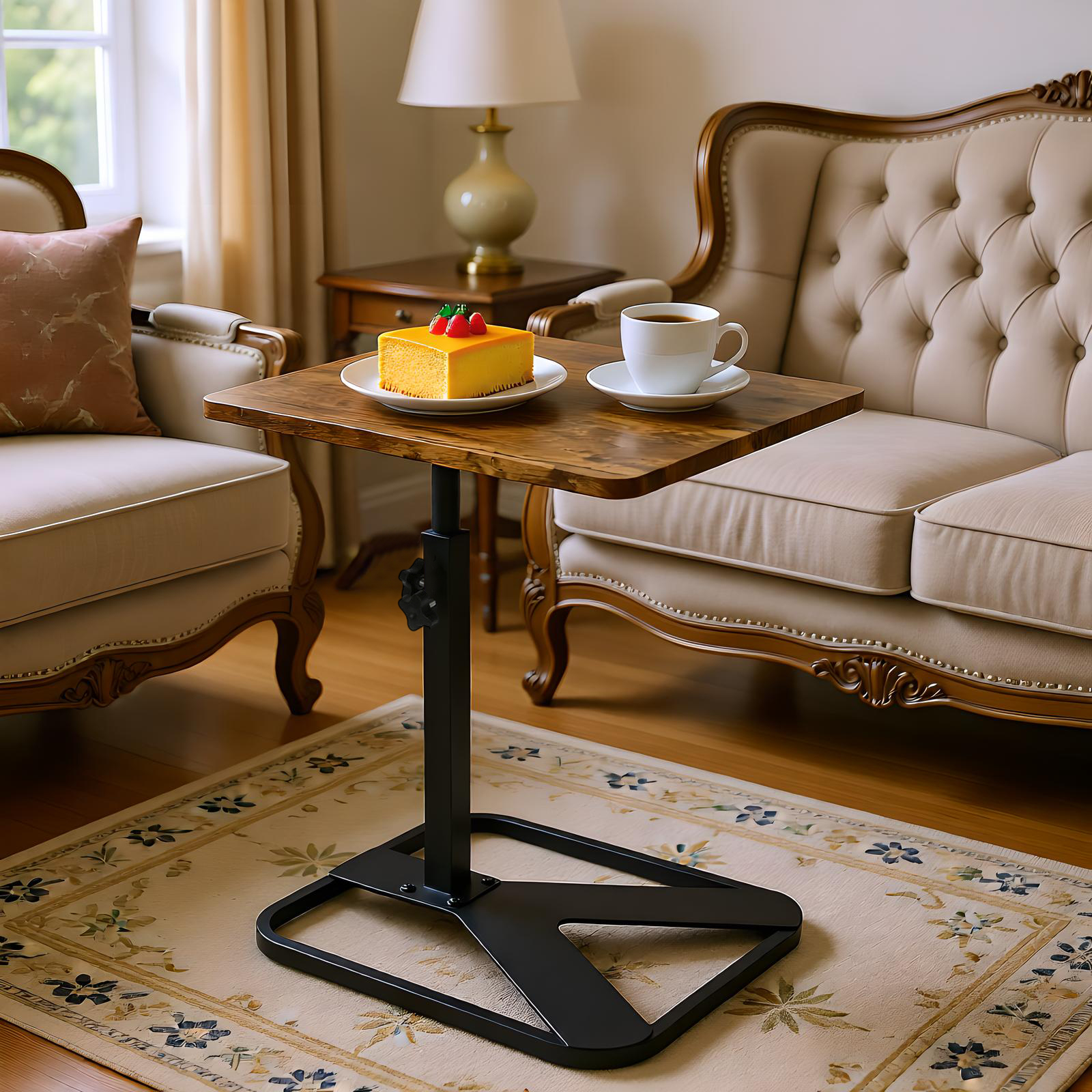 Medium Density Fiberboard & Iron adjustable Side Table durable dark coffee PC