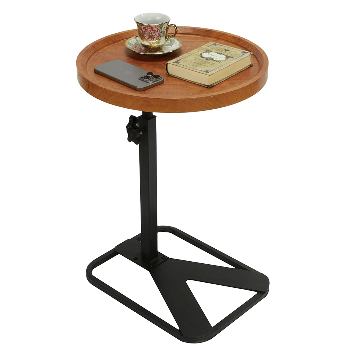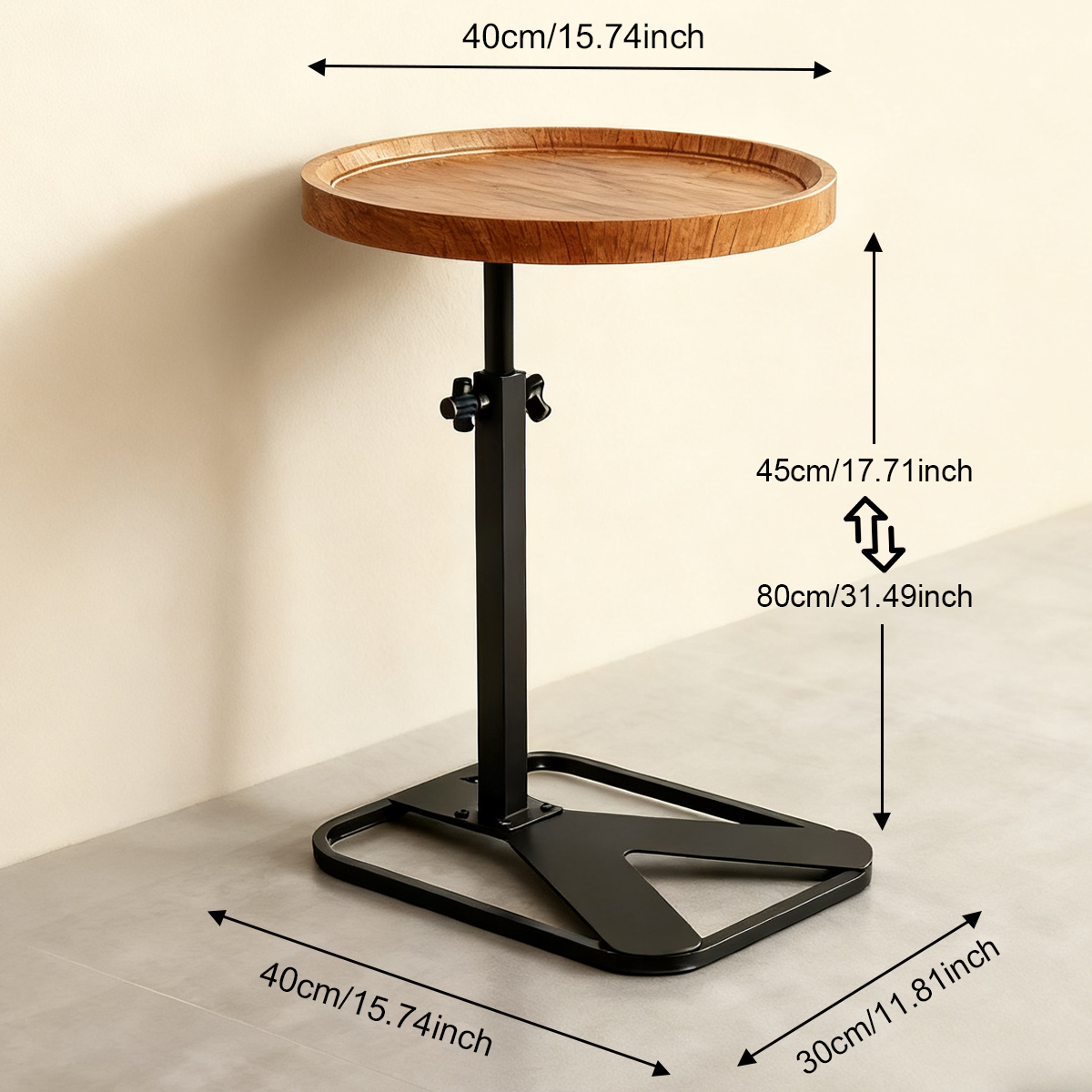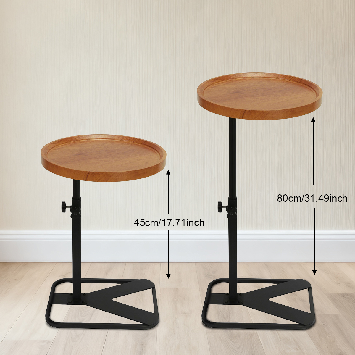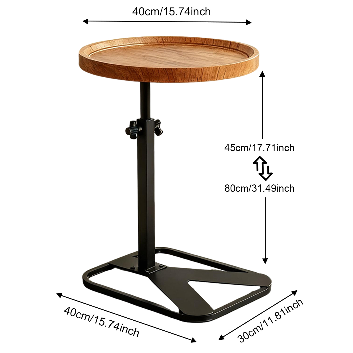 Medium Density Fiberboard & Iron adjustable Side Table durable Dark Brown PC