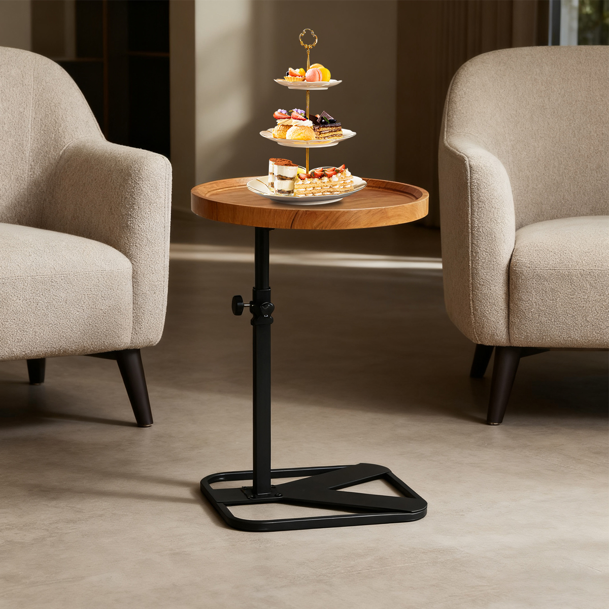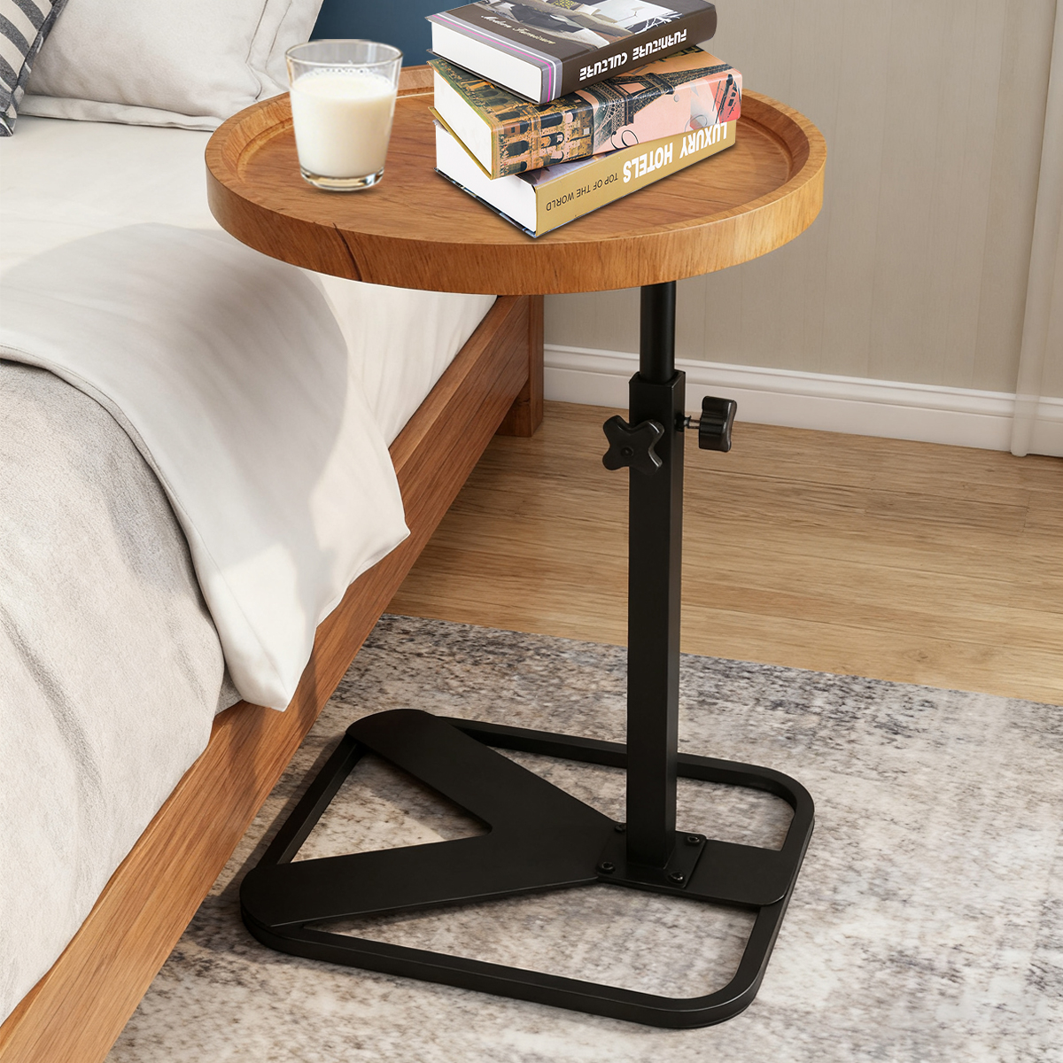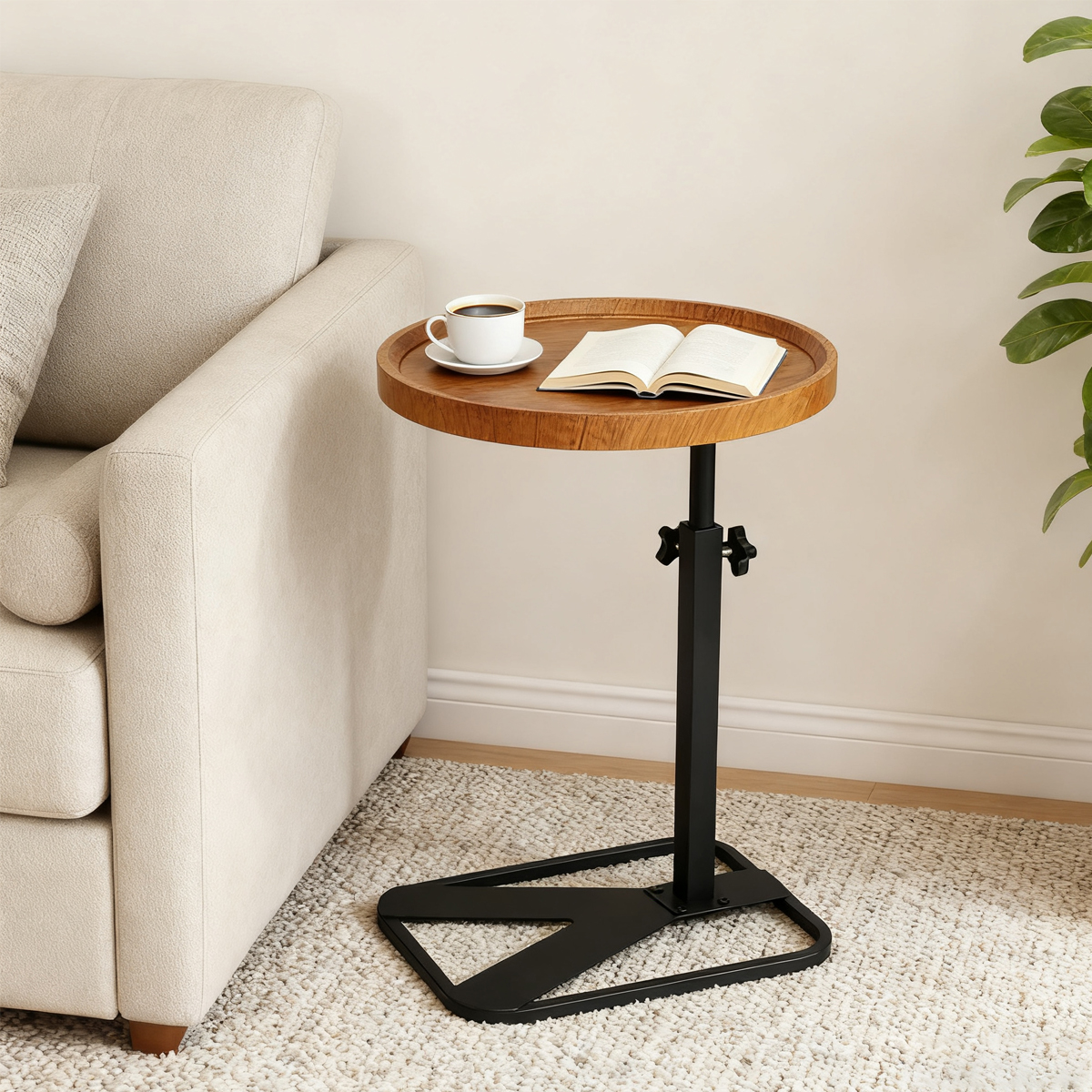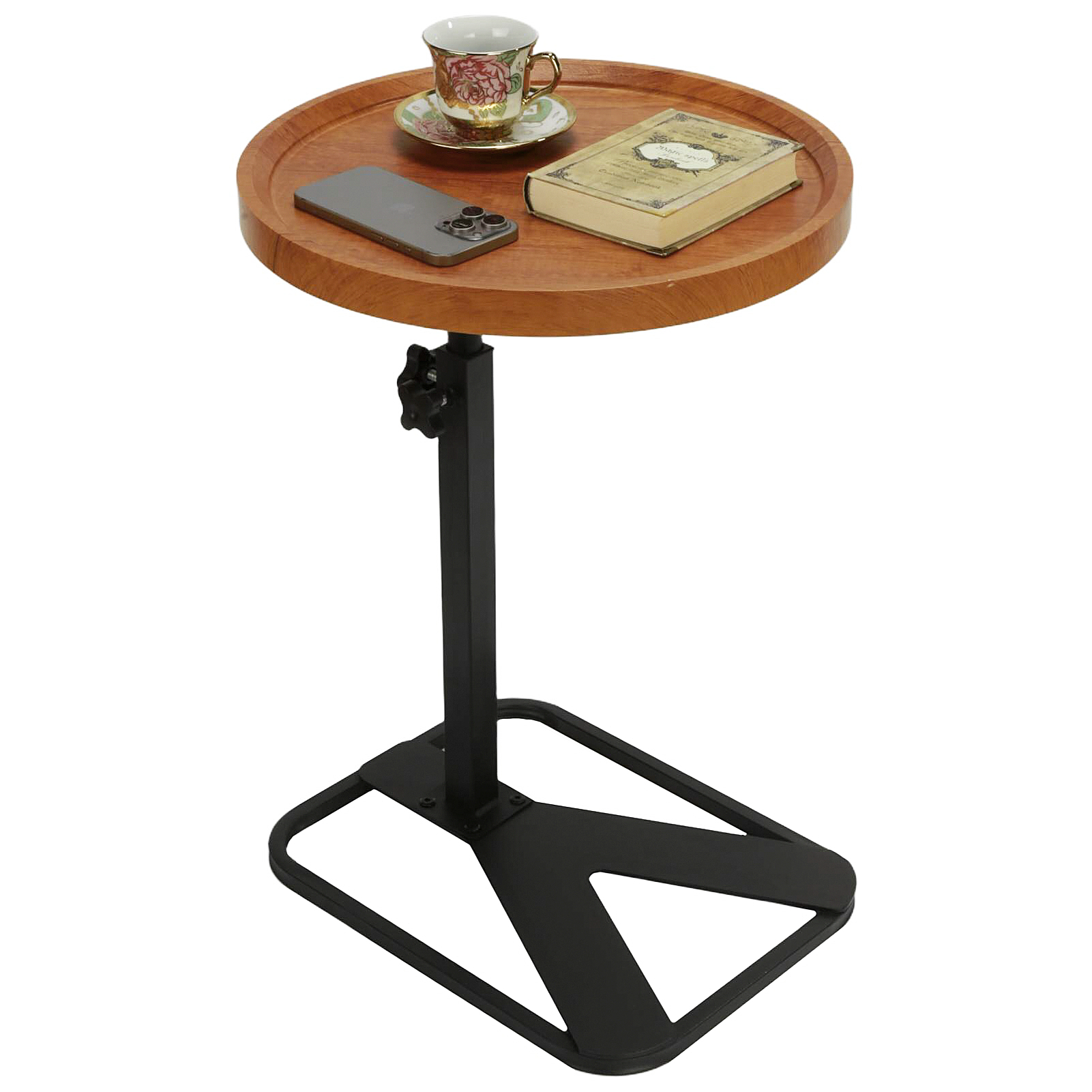Medium Density Fiberboard & Iron adjustable Side Table durable Dark Brown PC
