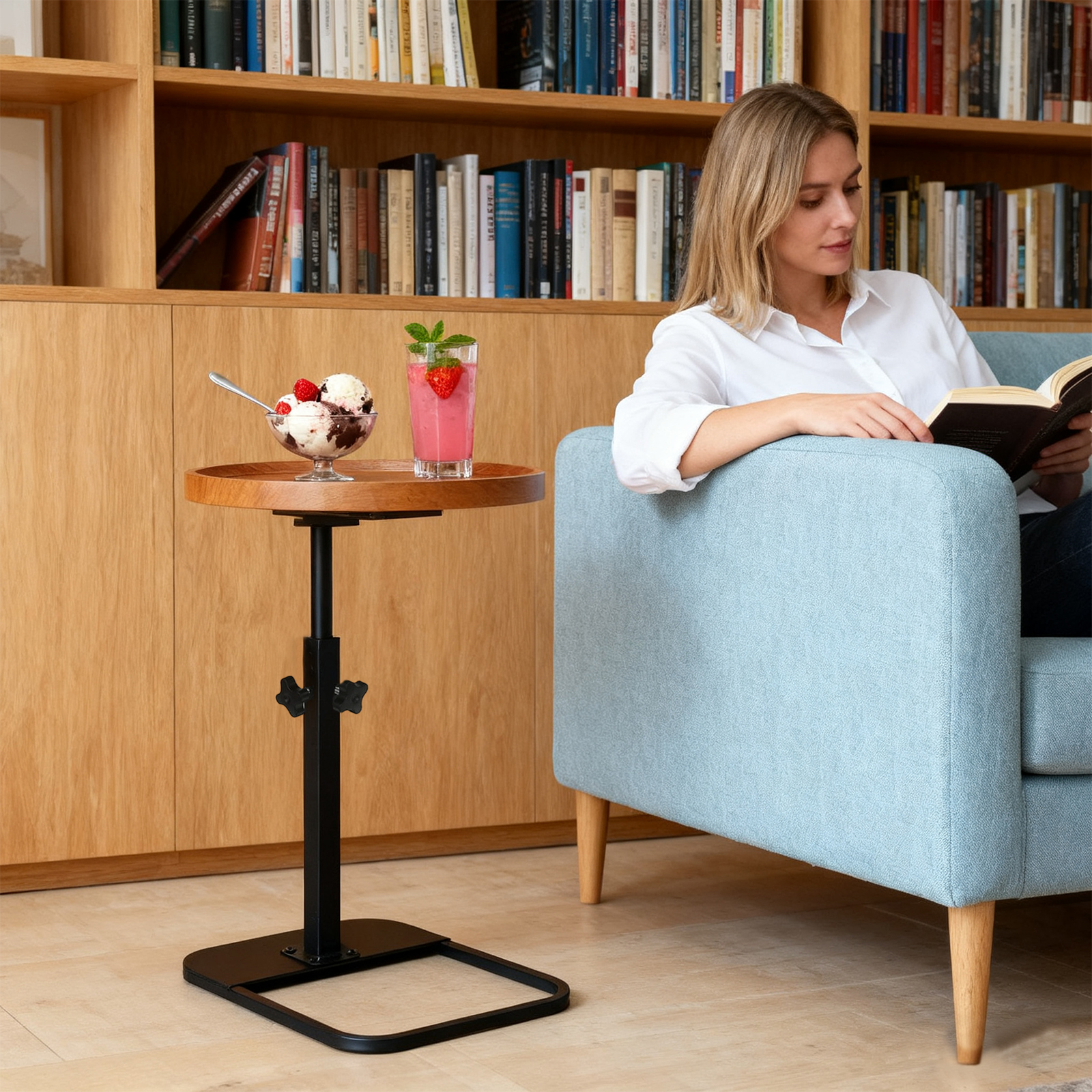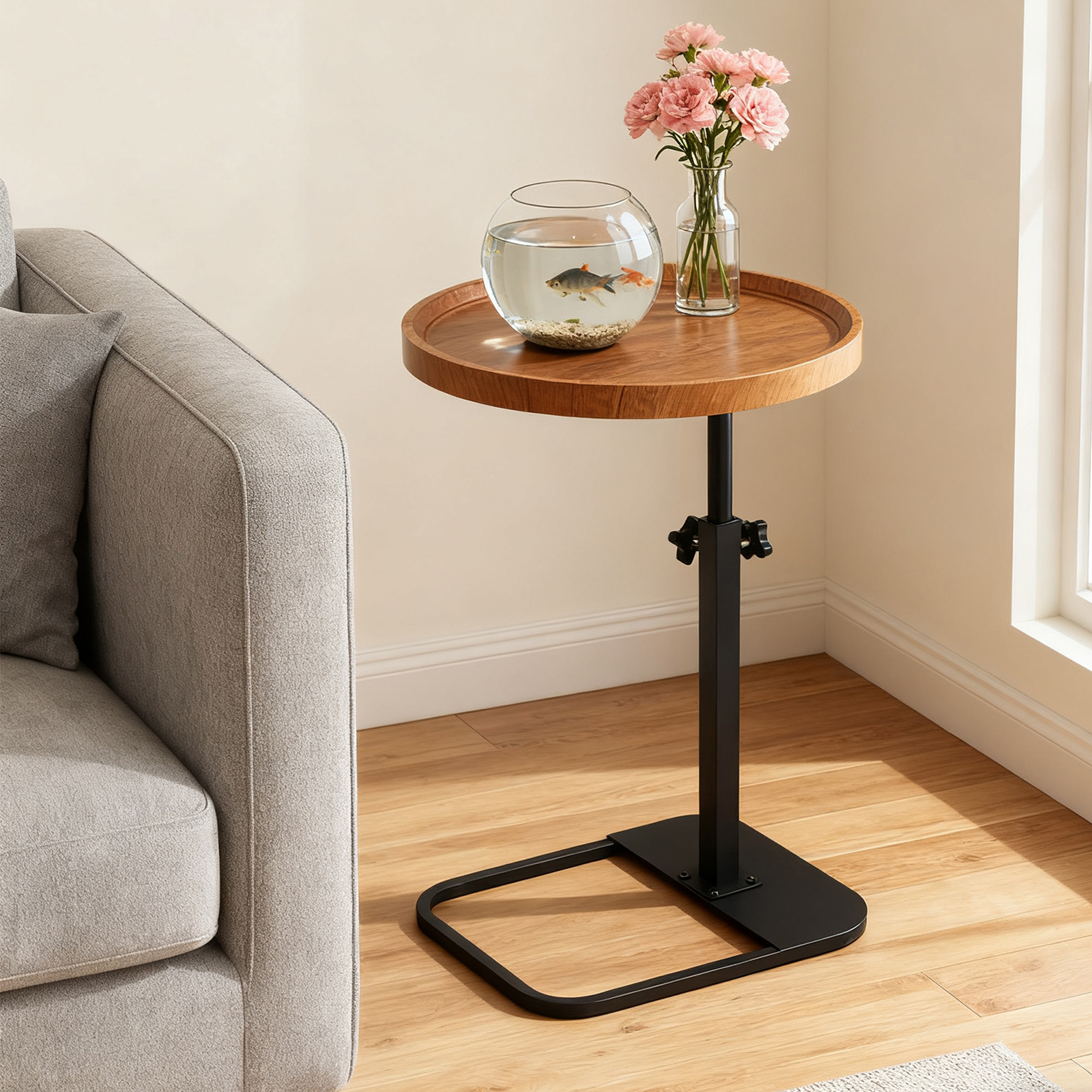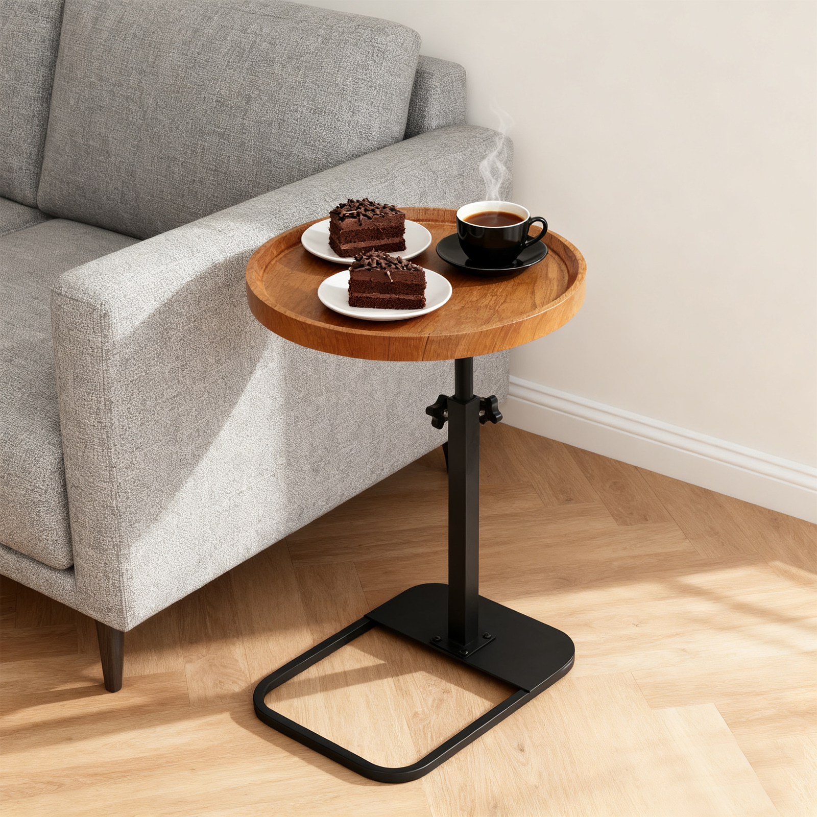 Medium Density Fiberboard & Iron adjustable Side Table durable Dark Brown PC