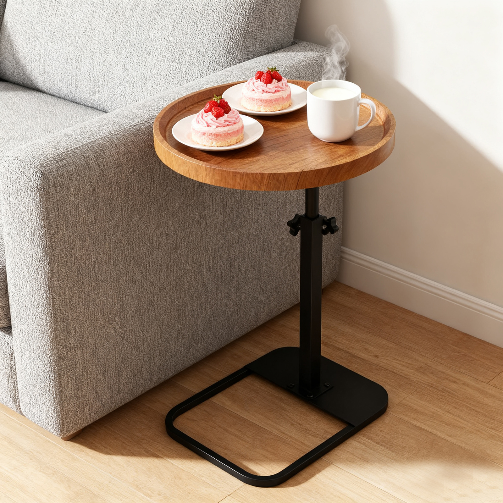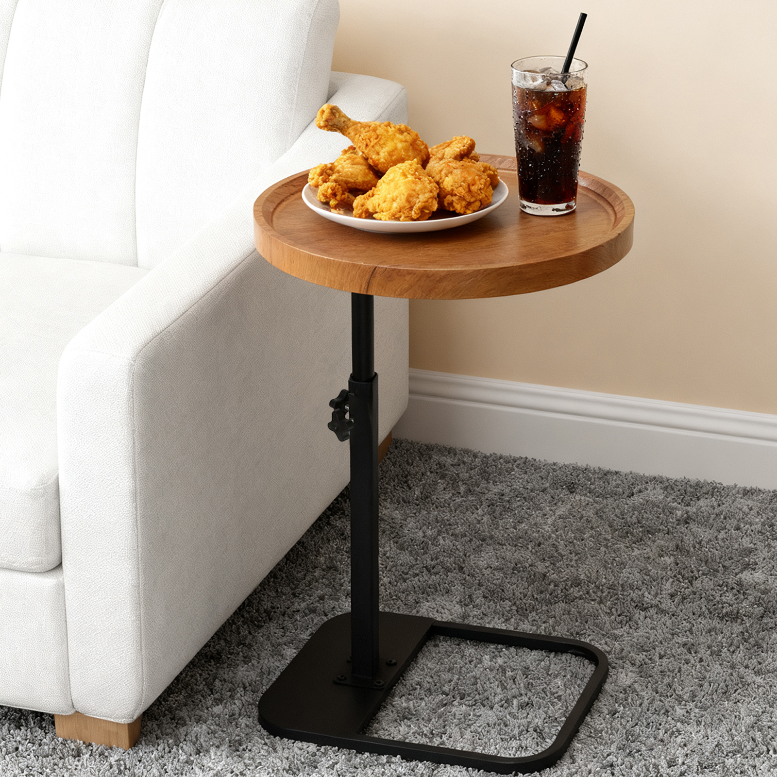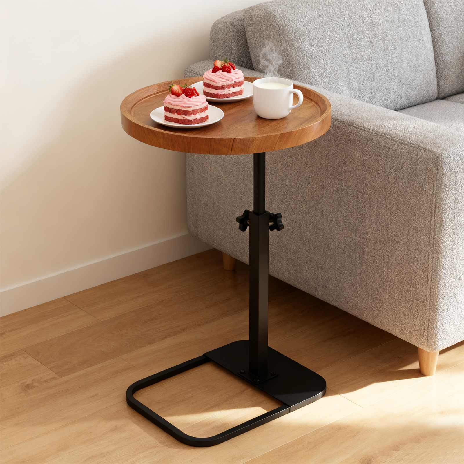 Medium Density Fiberboard & Iron adjustable Side Table durable Dark Brown PC