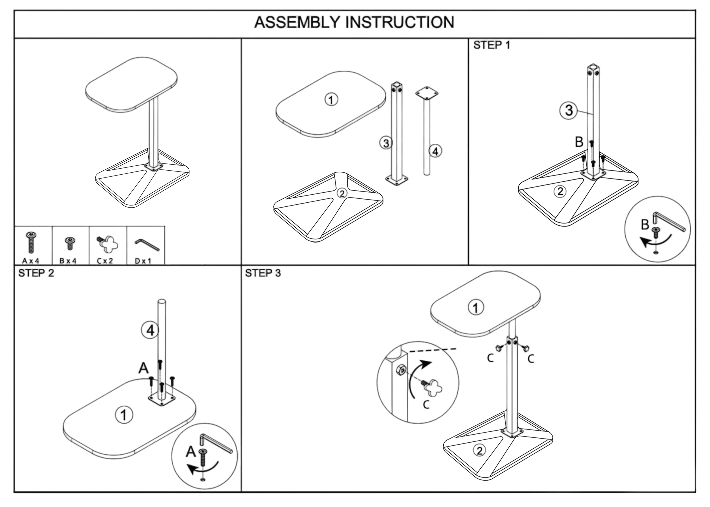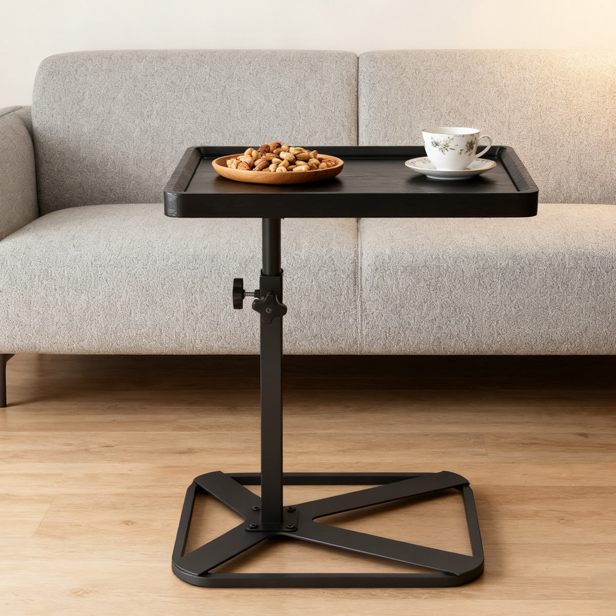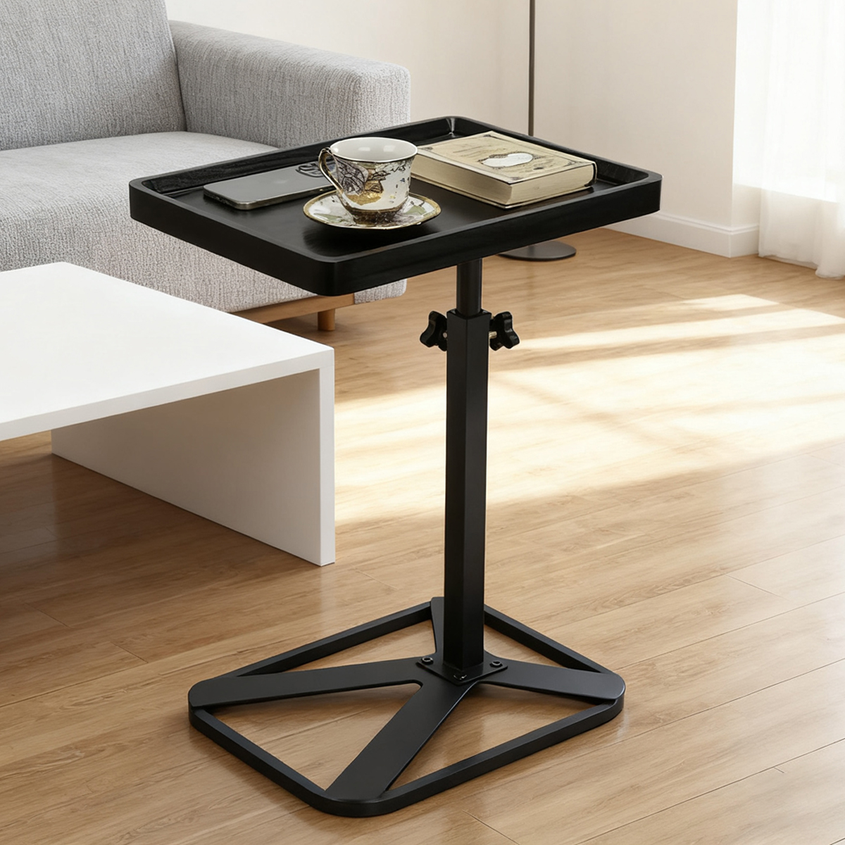 Medium Density Fiberboard & Iron adjustable Side Table durable black PC