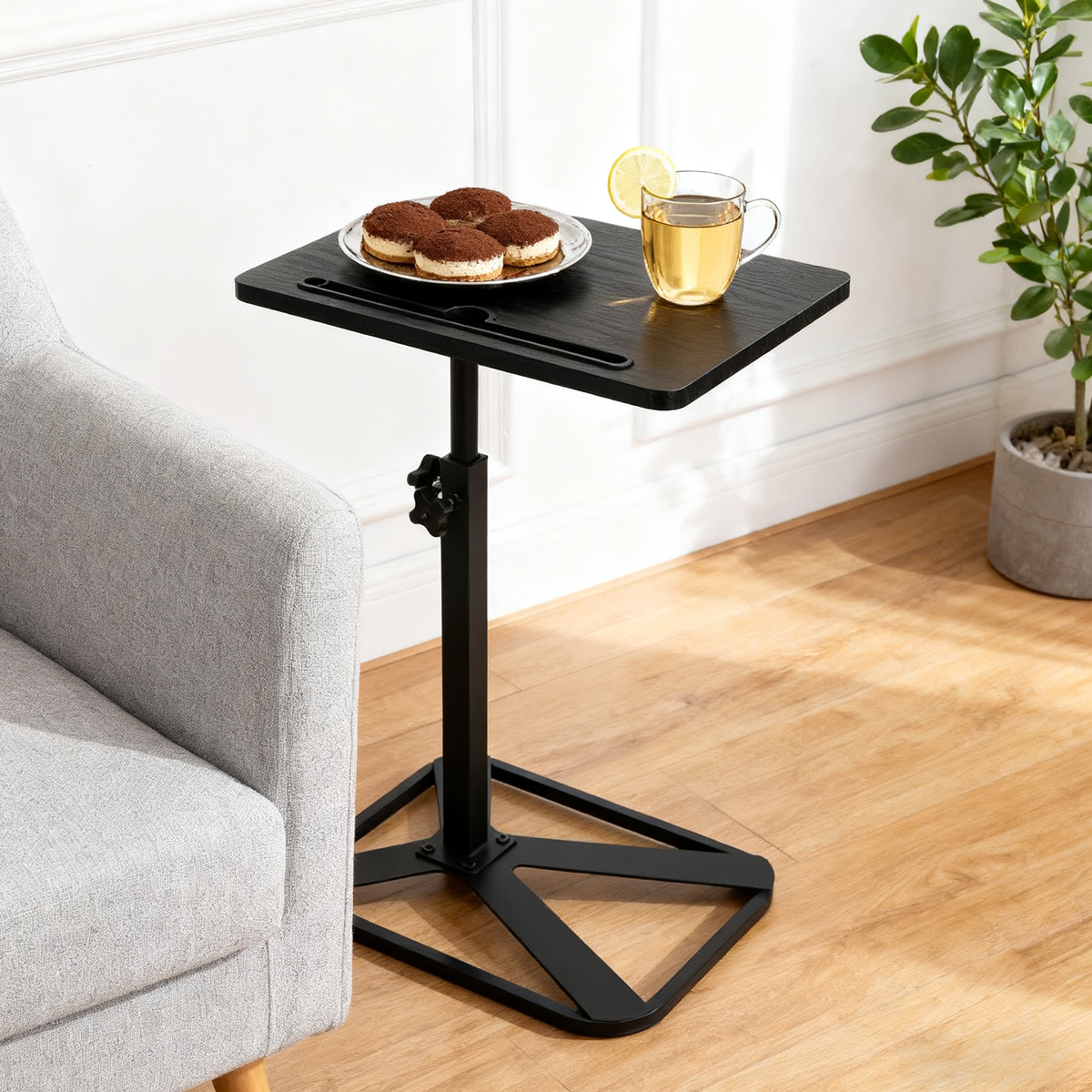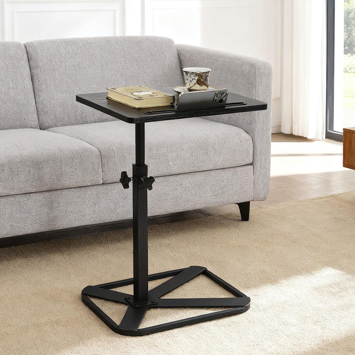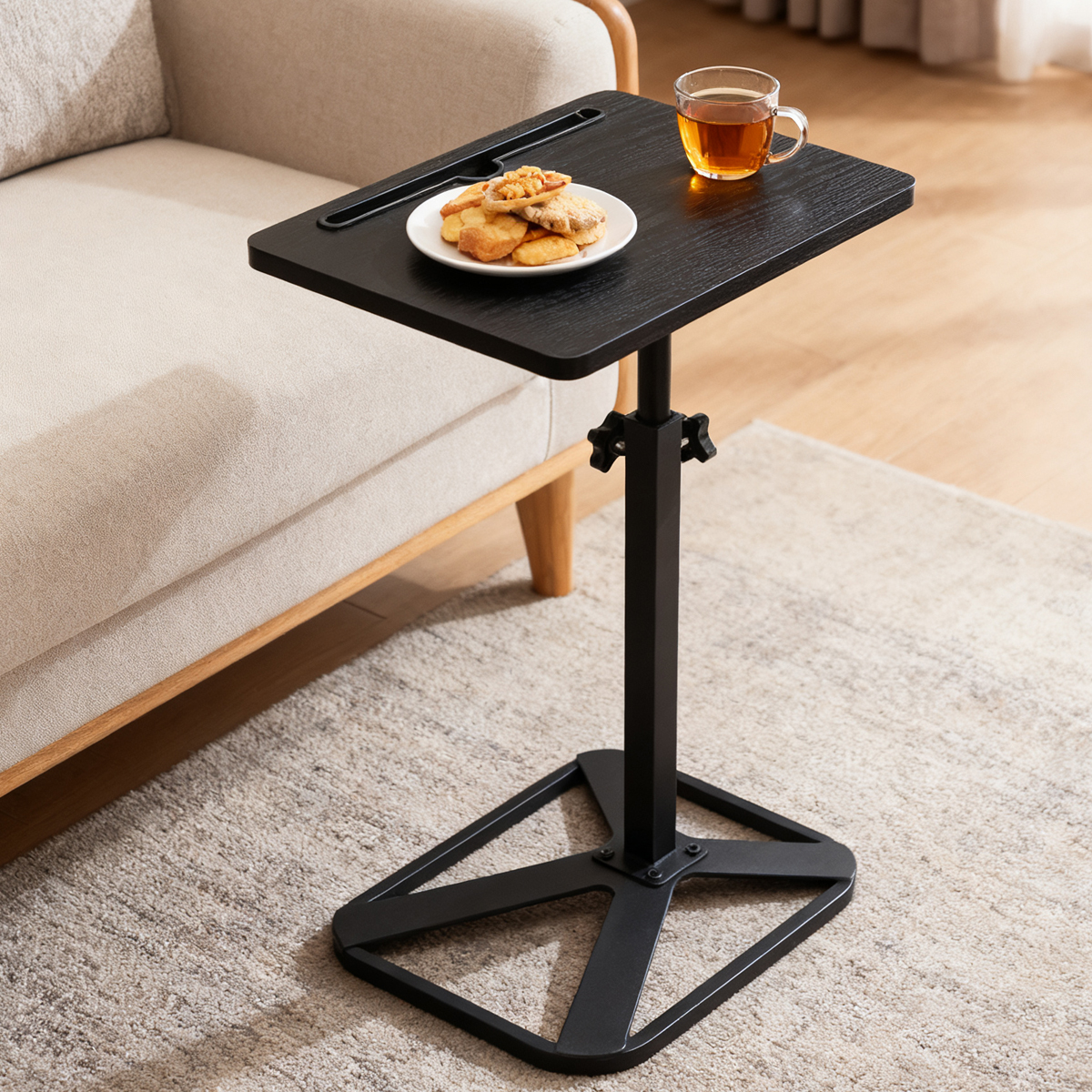 Medium Density Fiberboard & Iron adjustable Side Table durable black PC