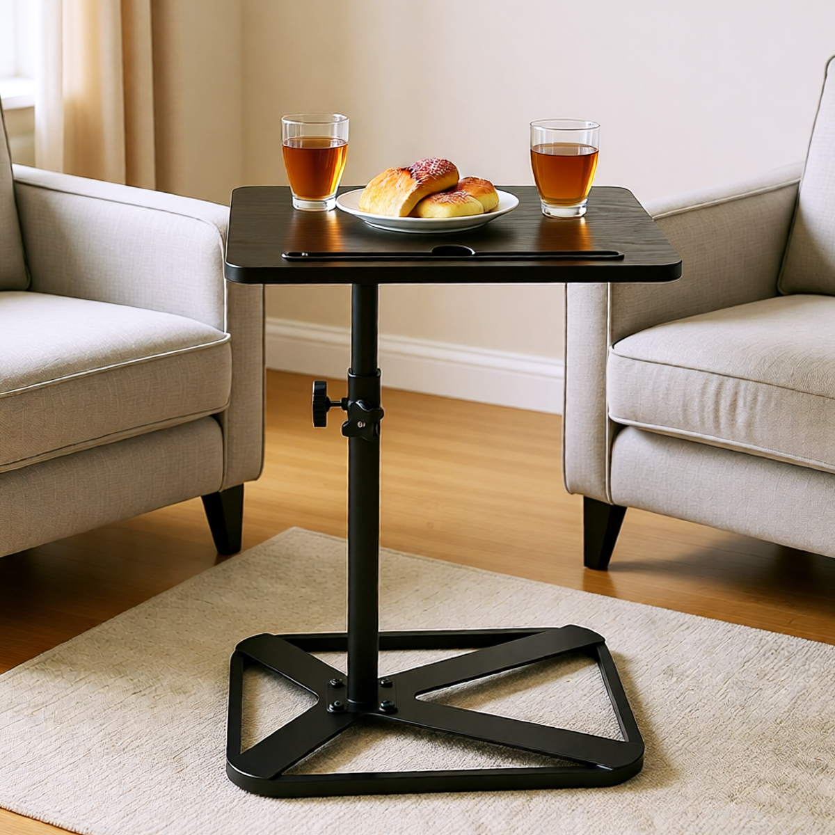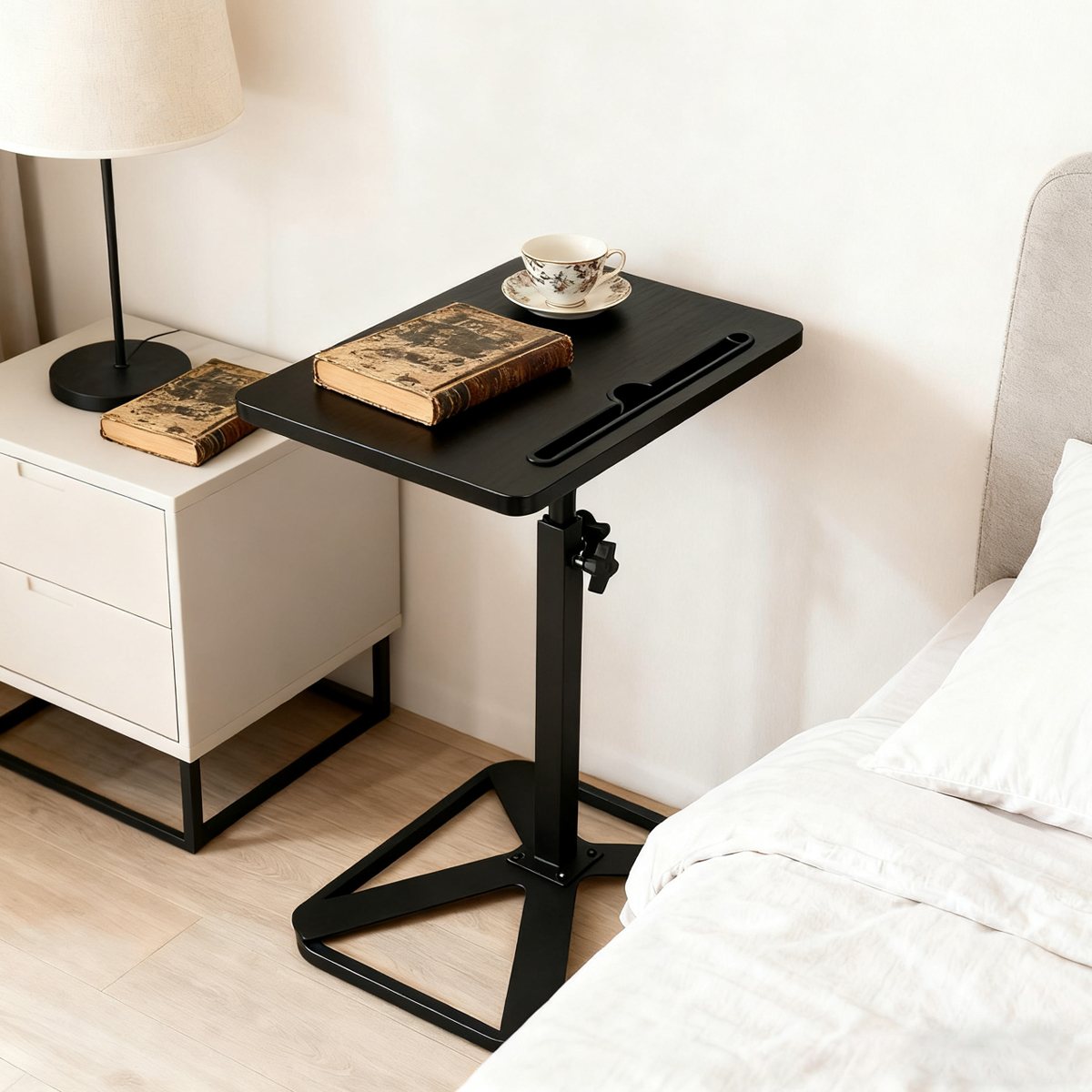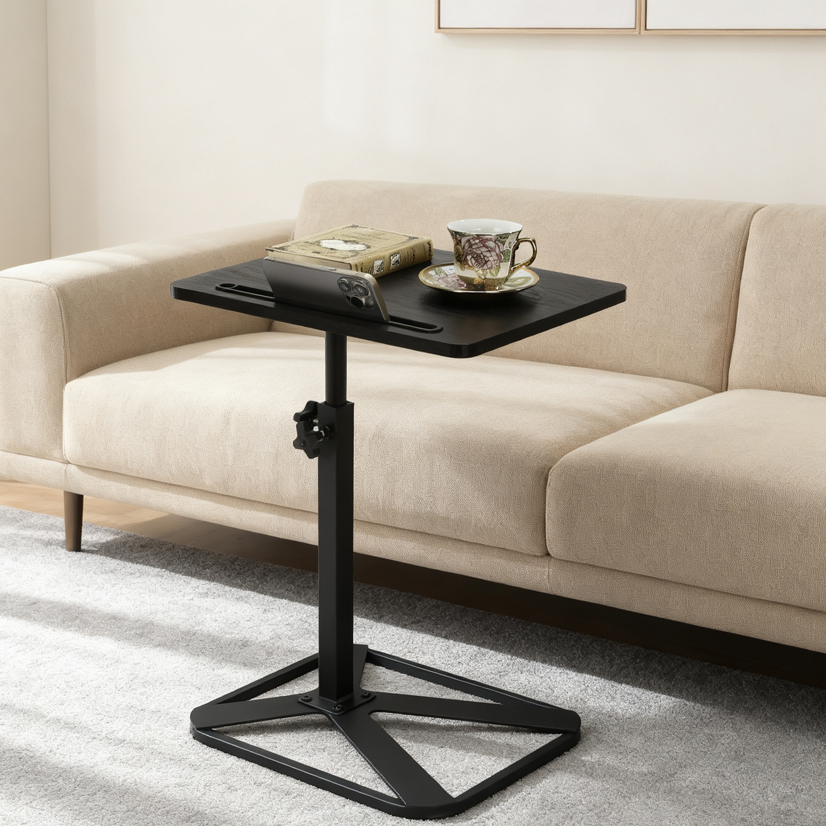 Medium Density Fiberboard & Iron adjustable Side Table durable black PC