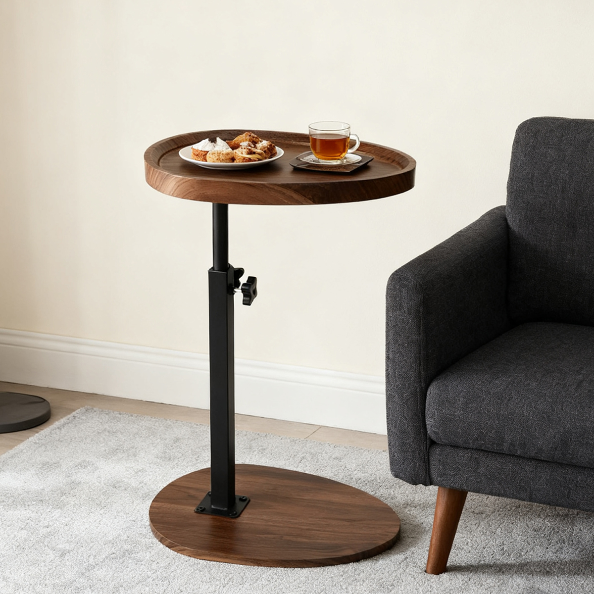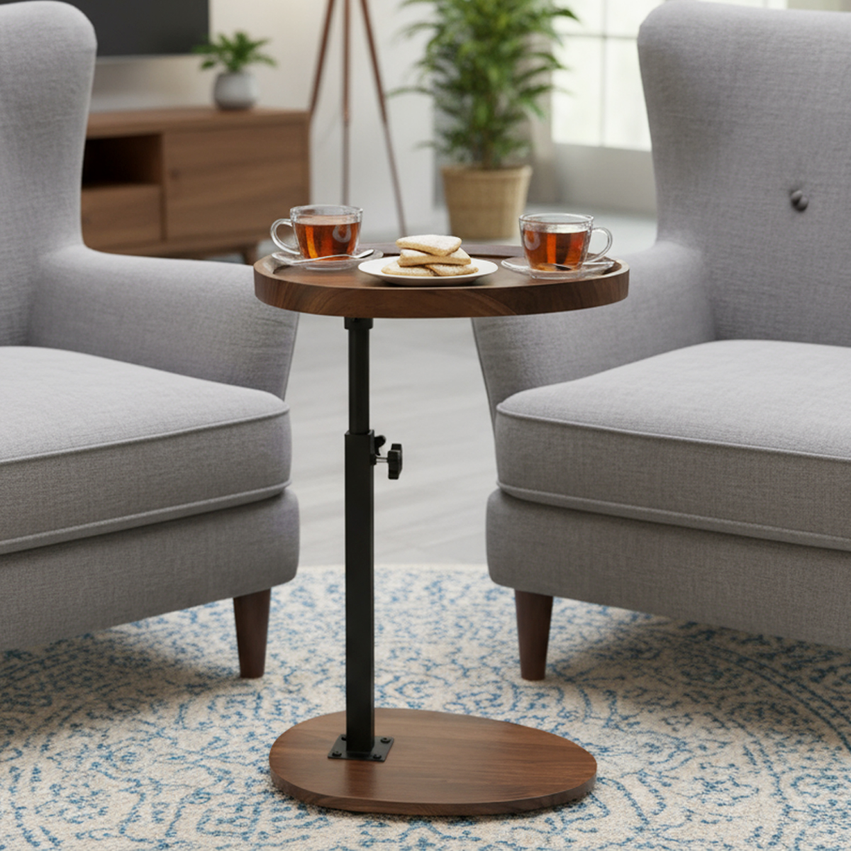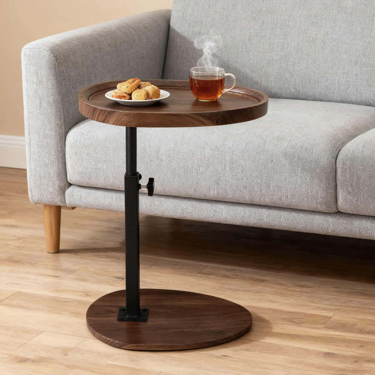 Medium Density Fiberboard & Iron adjustable Side Table durable dark coffee PC