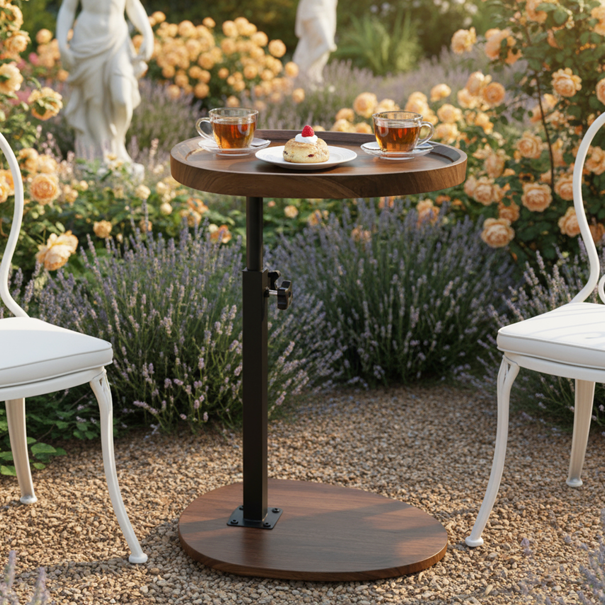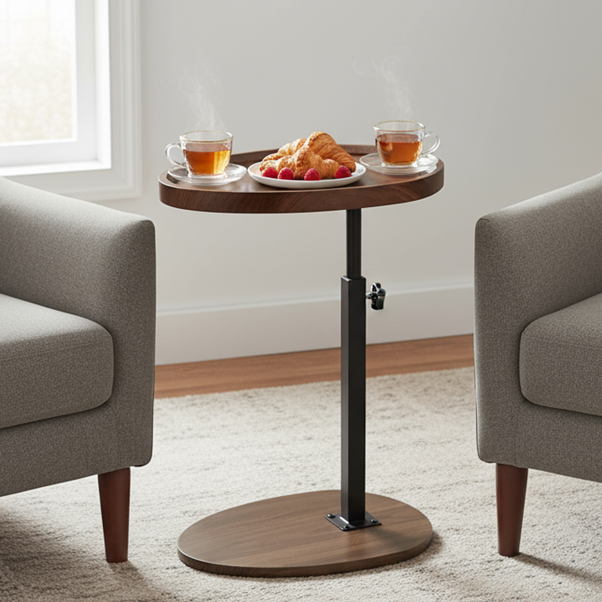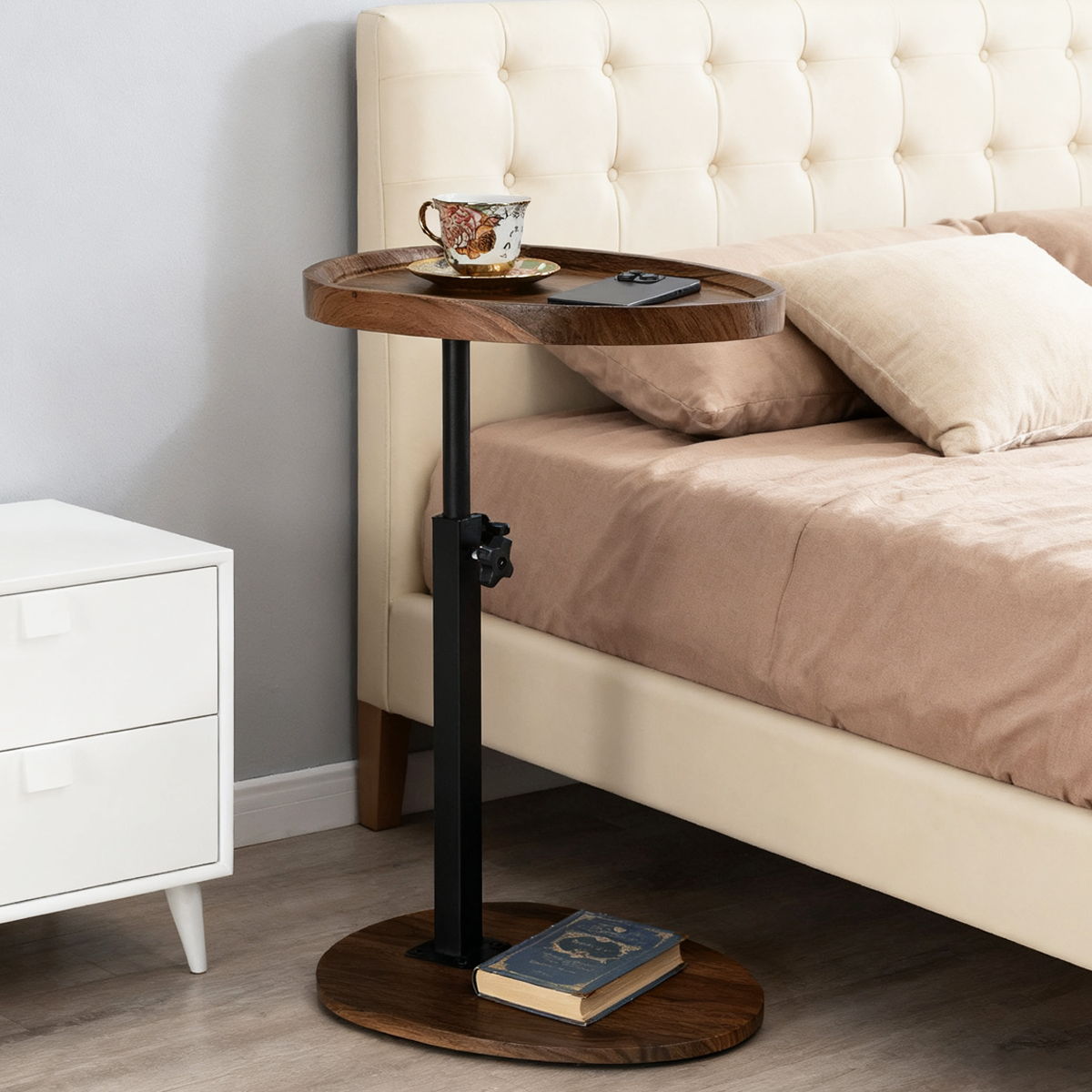 Medium Density Fiberboard & Iron adjustable Side Table durable dark coffee PC