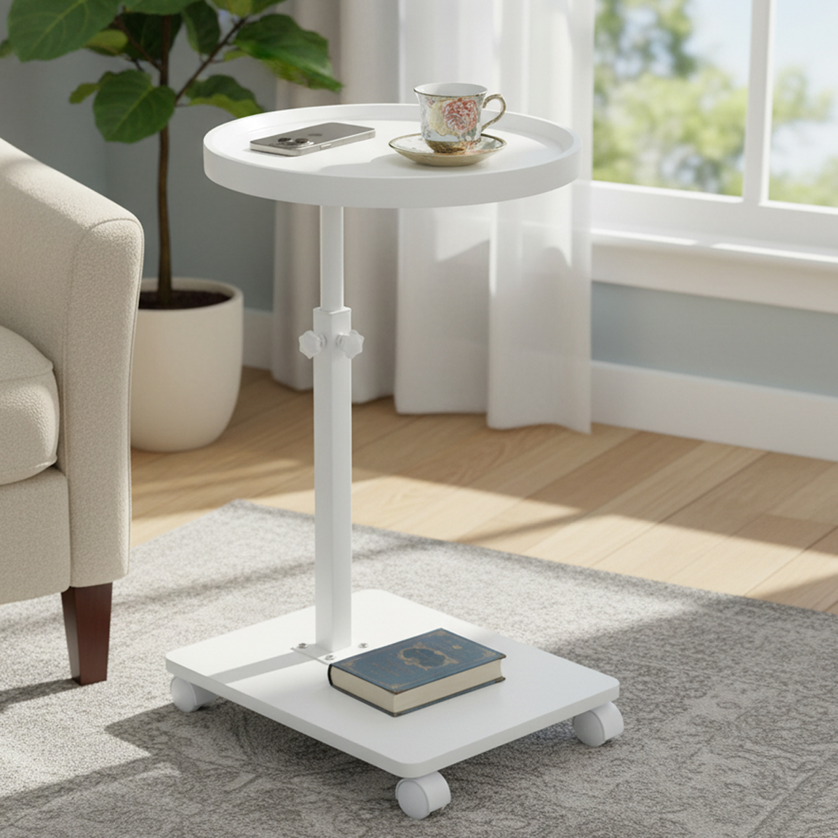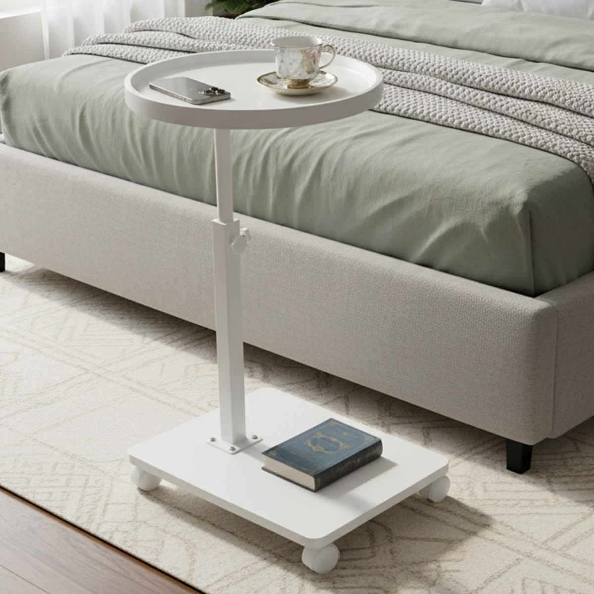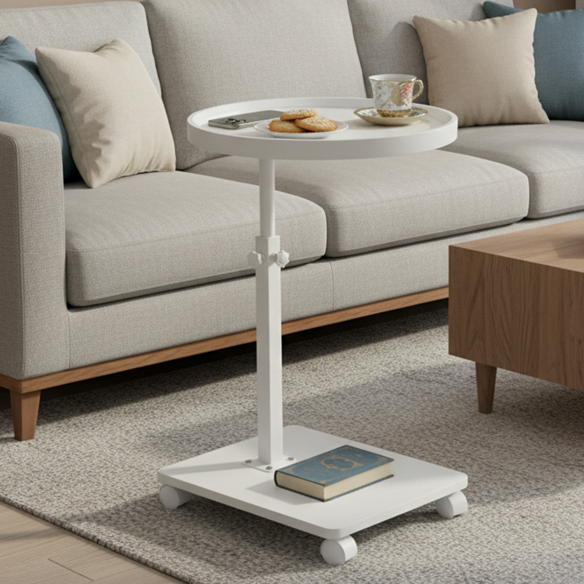 Medium Density Fiberboard & Iron adjustable Side Table durable white PC
