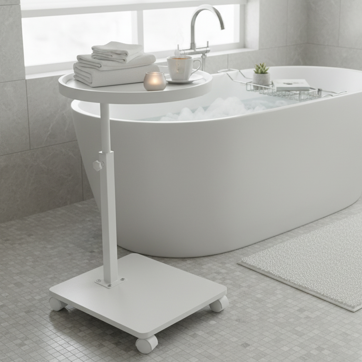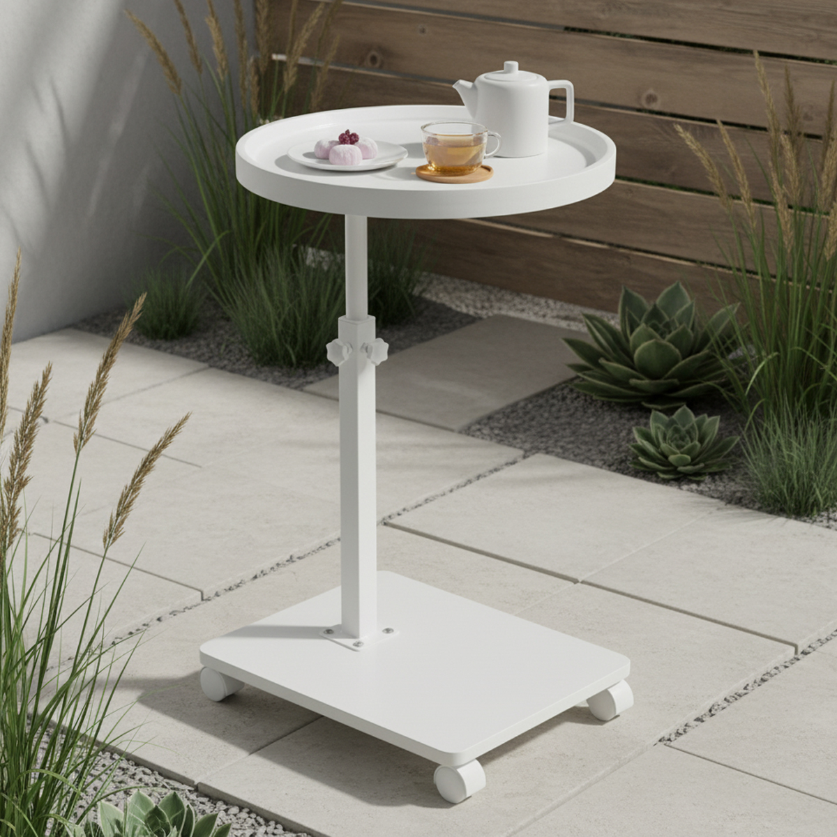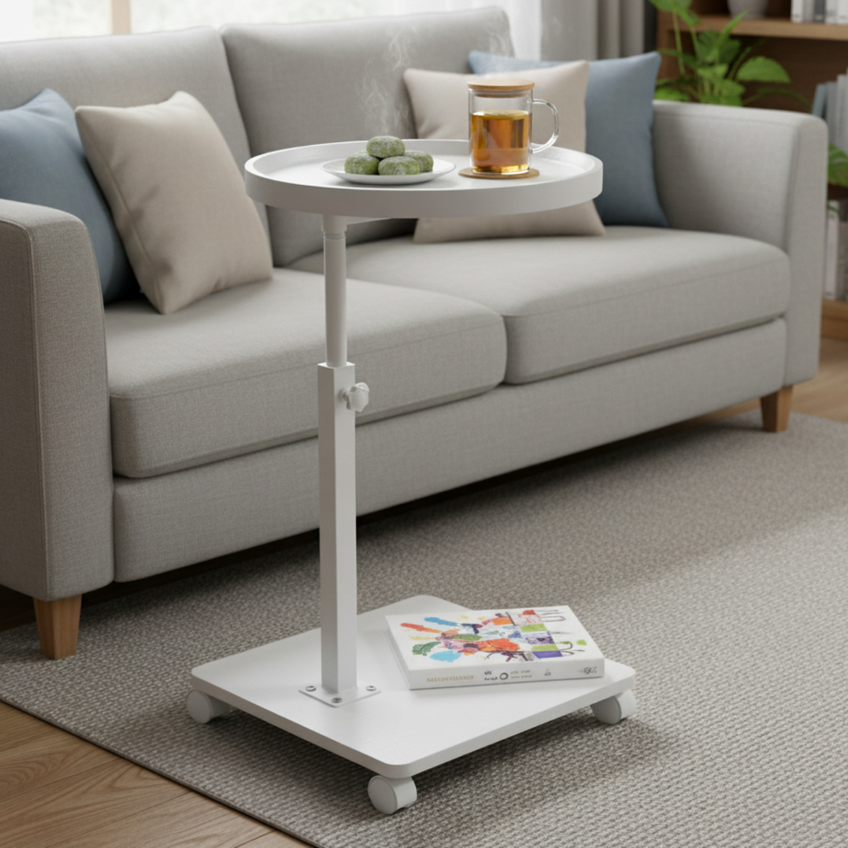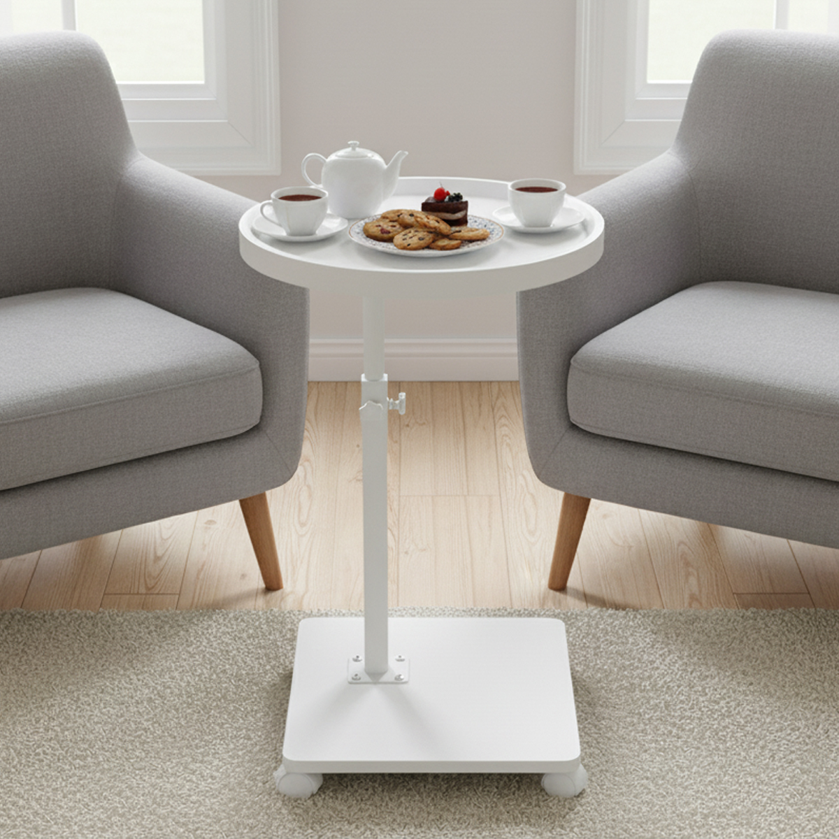 Medium Density Fiberboard & Iron adjustable Side Table durable white PC