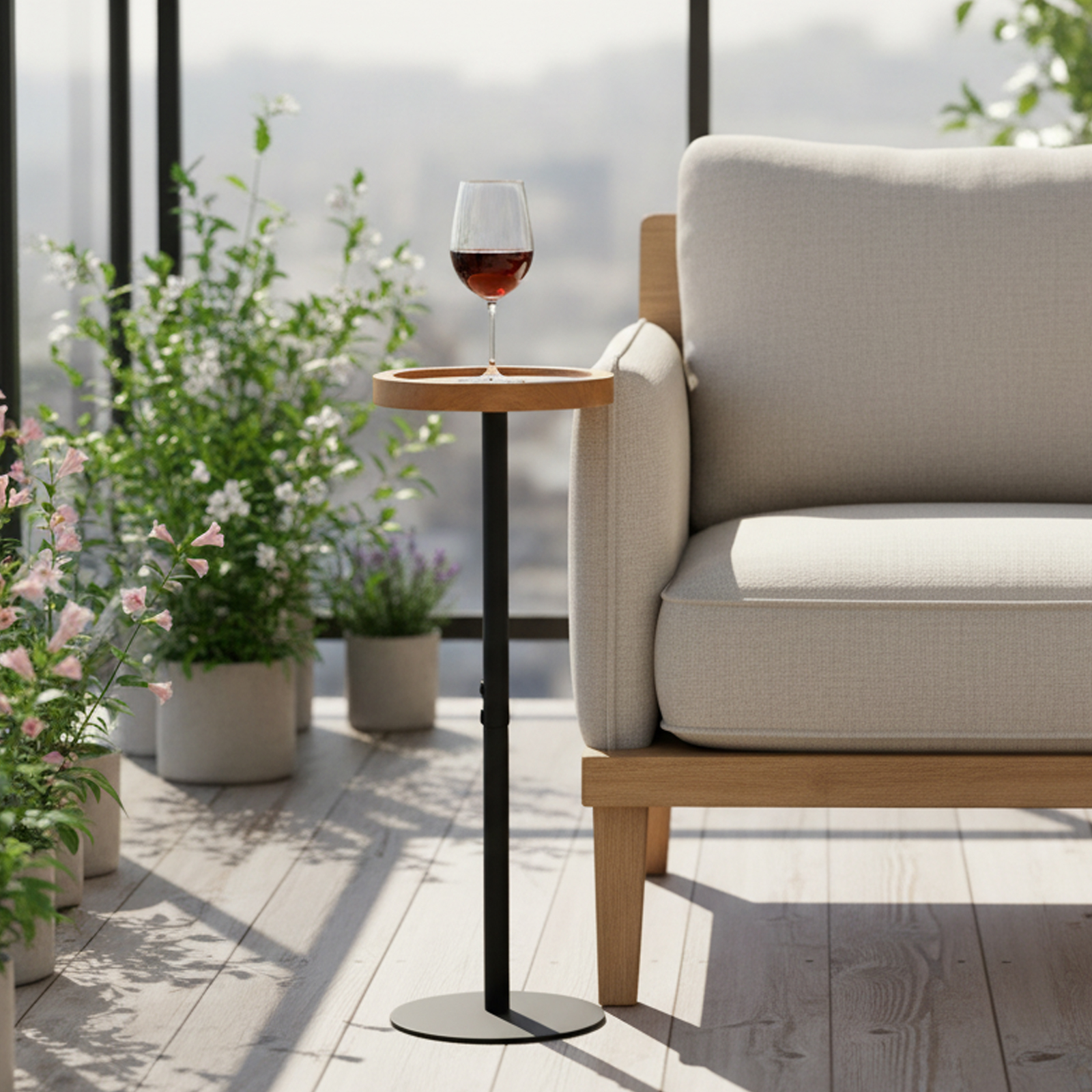 Medium Density Fiberboard & Steel Tube adjustable Side Table durable khaki PC