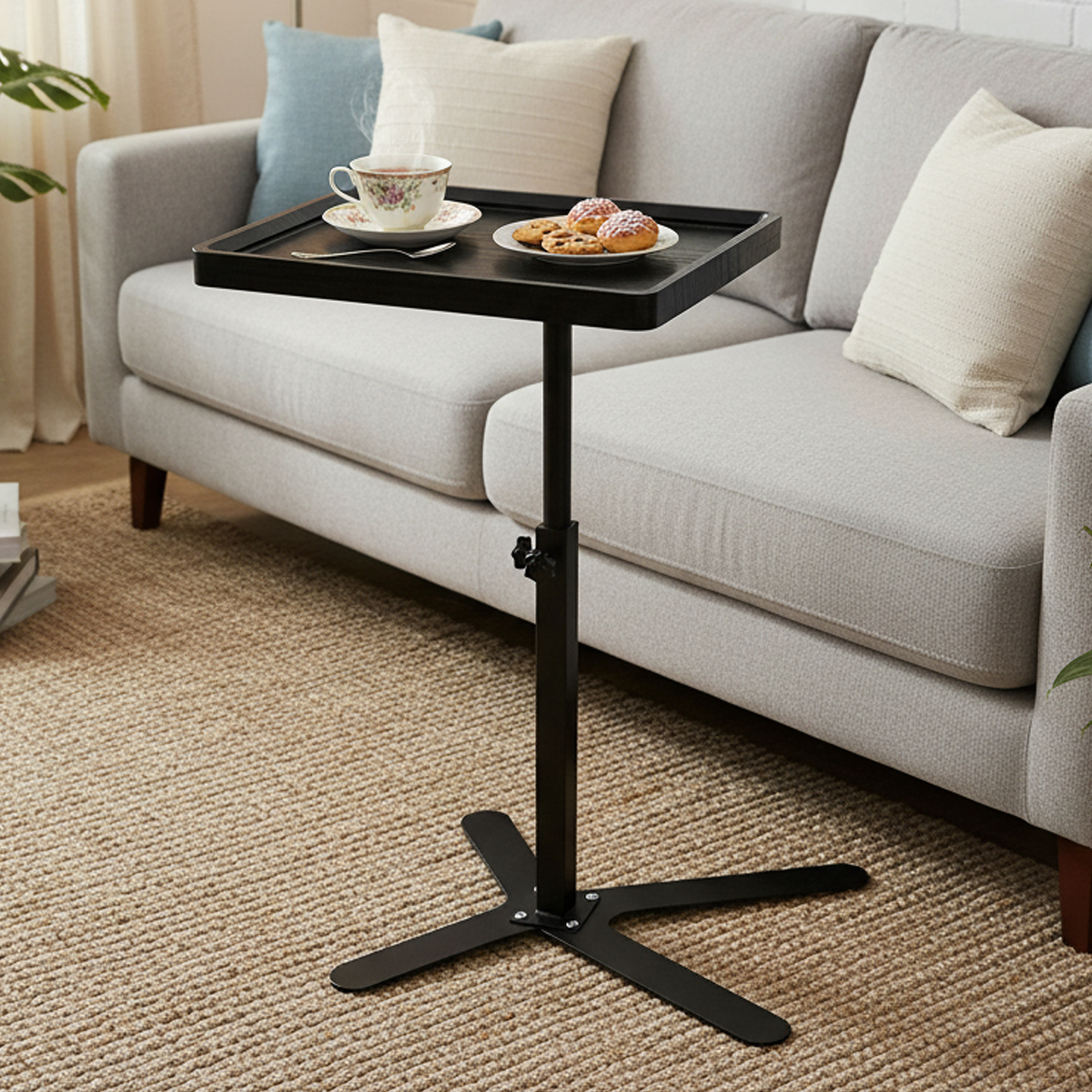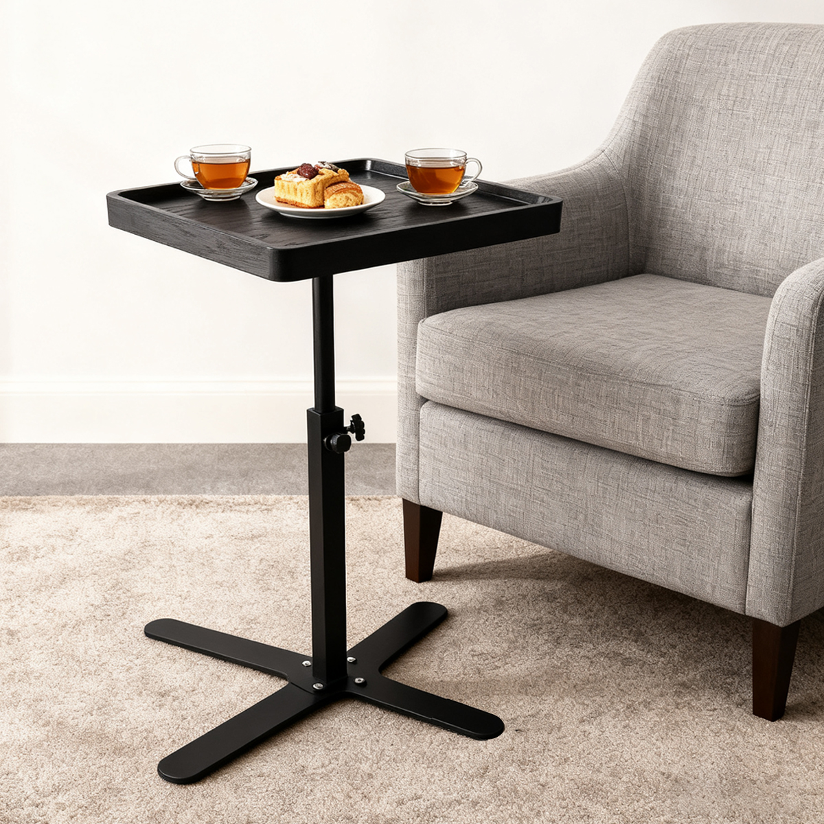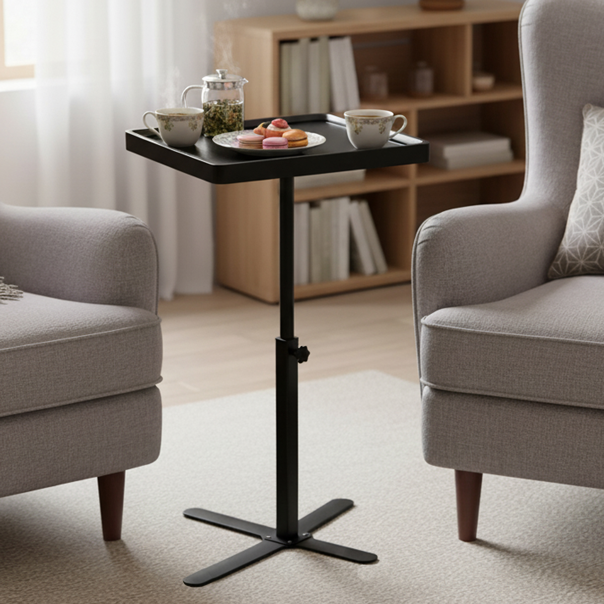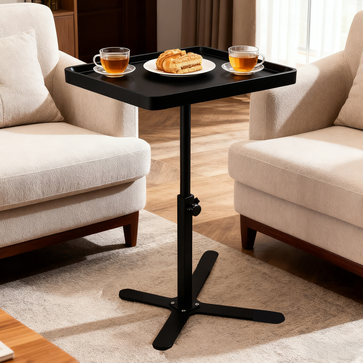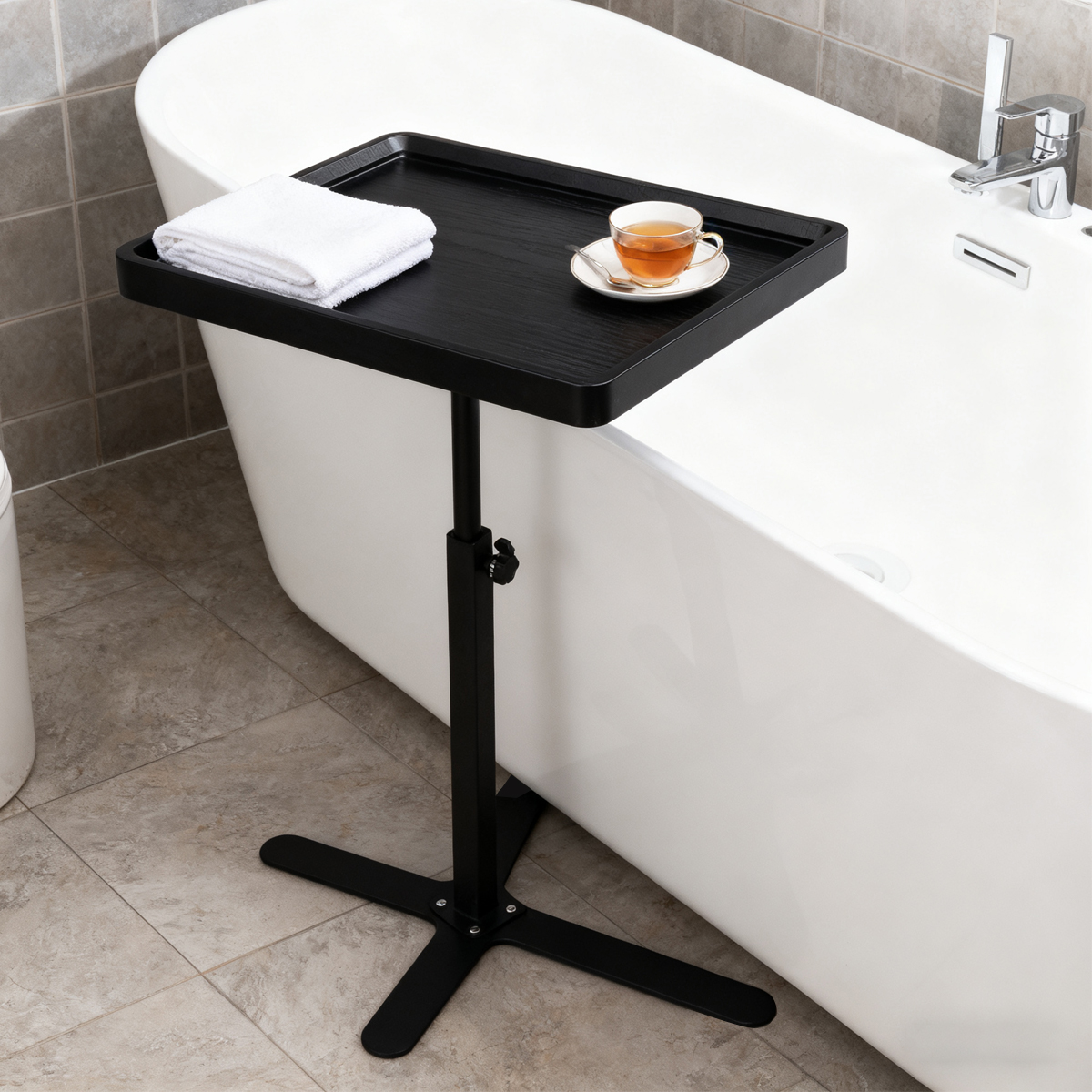 Medium Density Fiberboard & Steel Tube adjustable Tea Table durable black PC