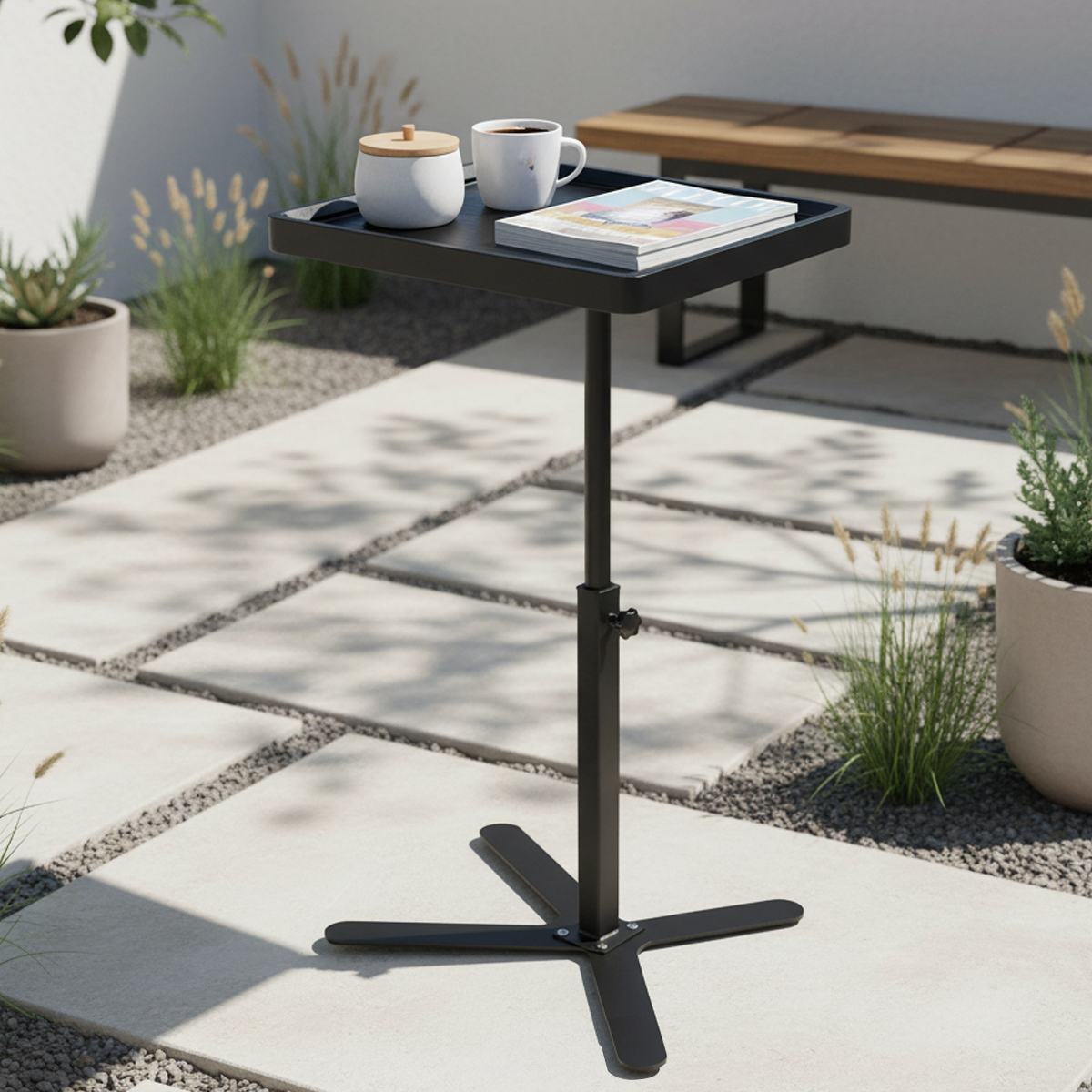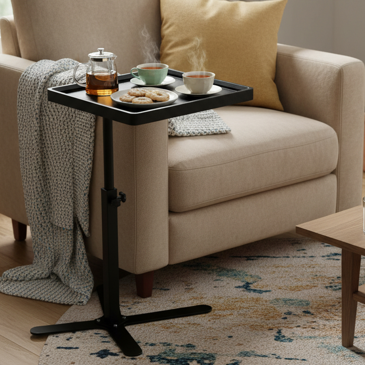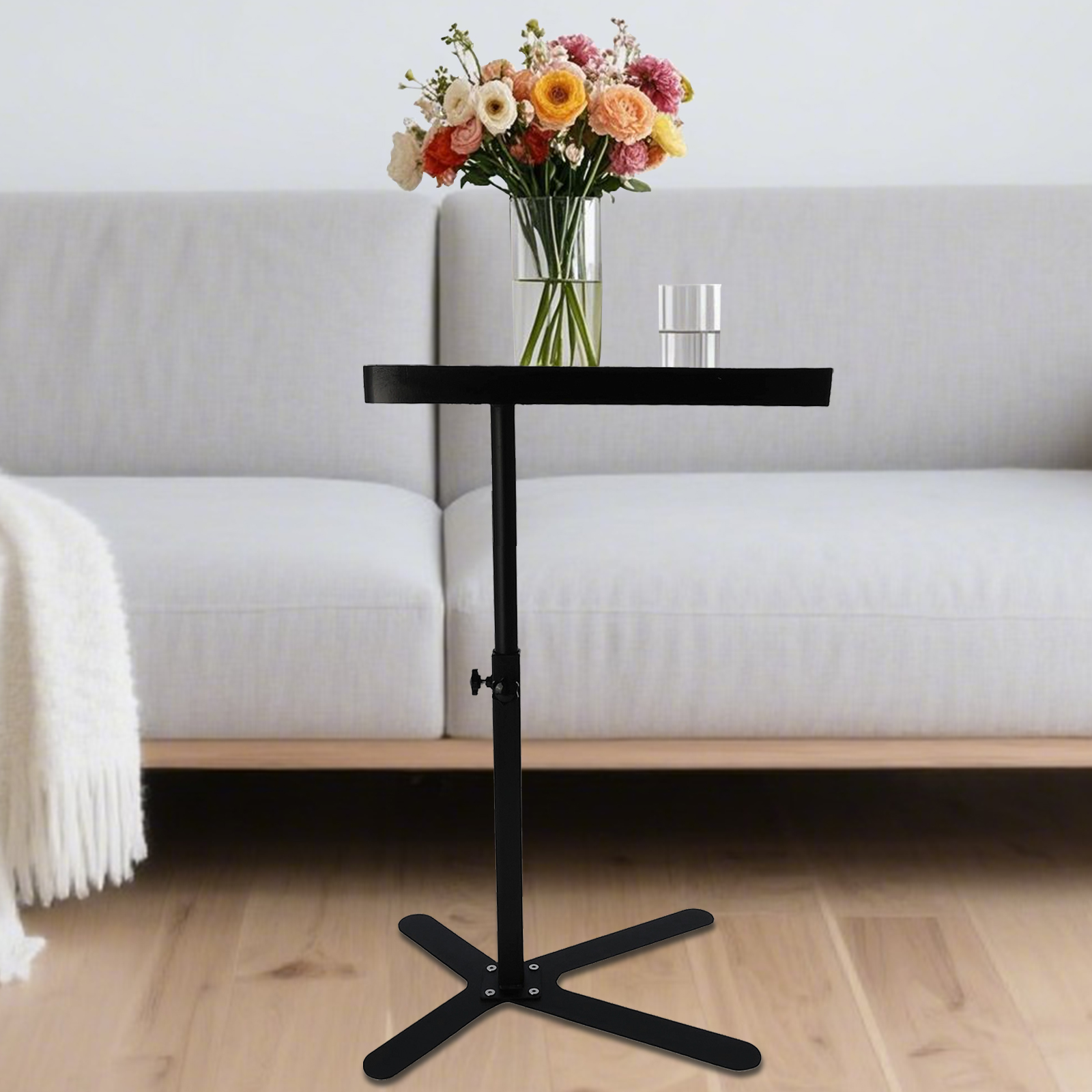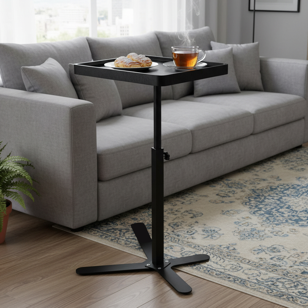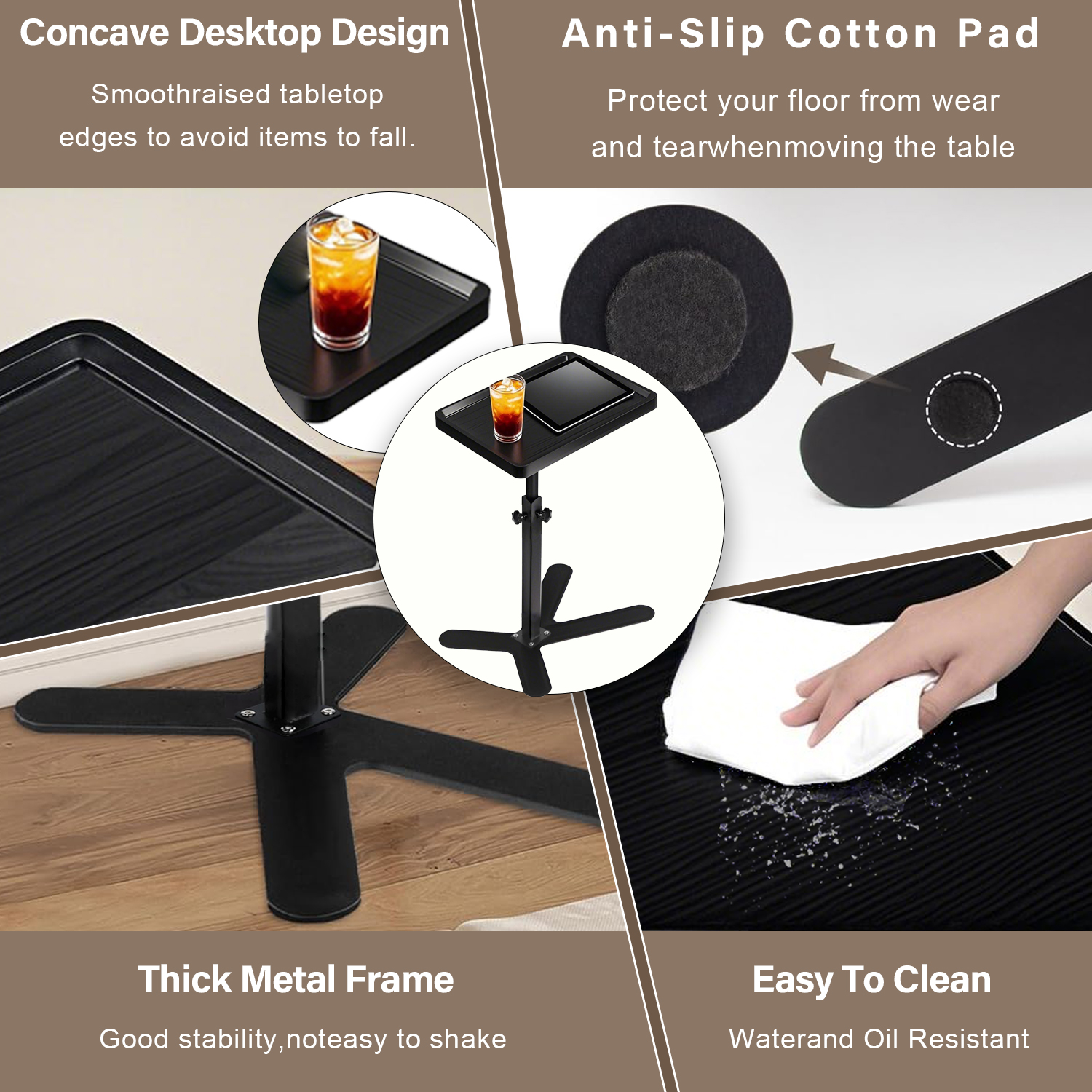 Medium Density Fiberboard & Steel Tube adjustable Tea Table durable black PC