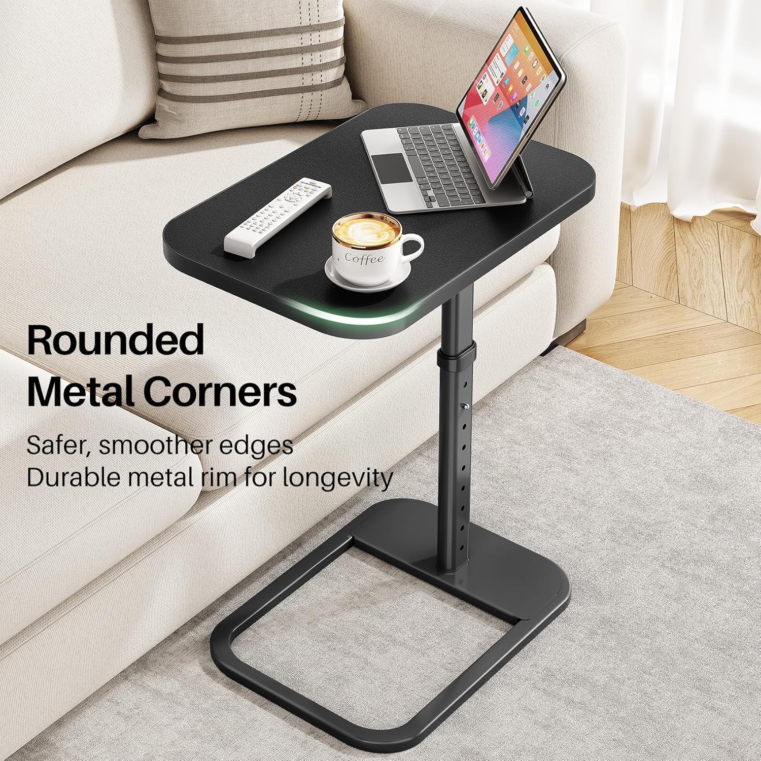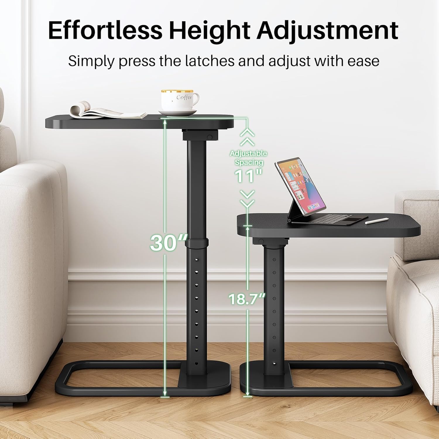 Medium Density Fiberboard & Wire Spring adjustable & Multifunction Tea Table Solid black PC