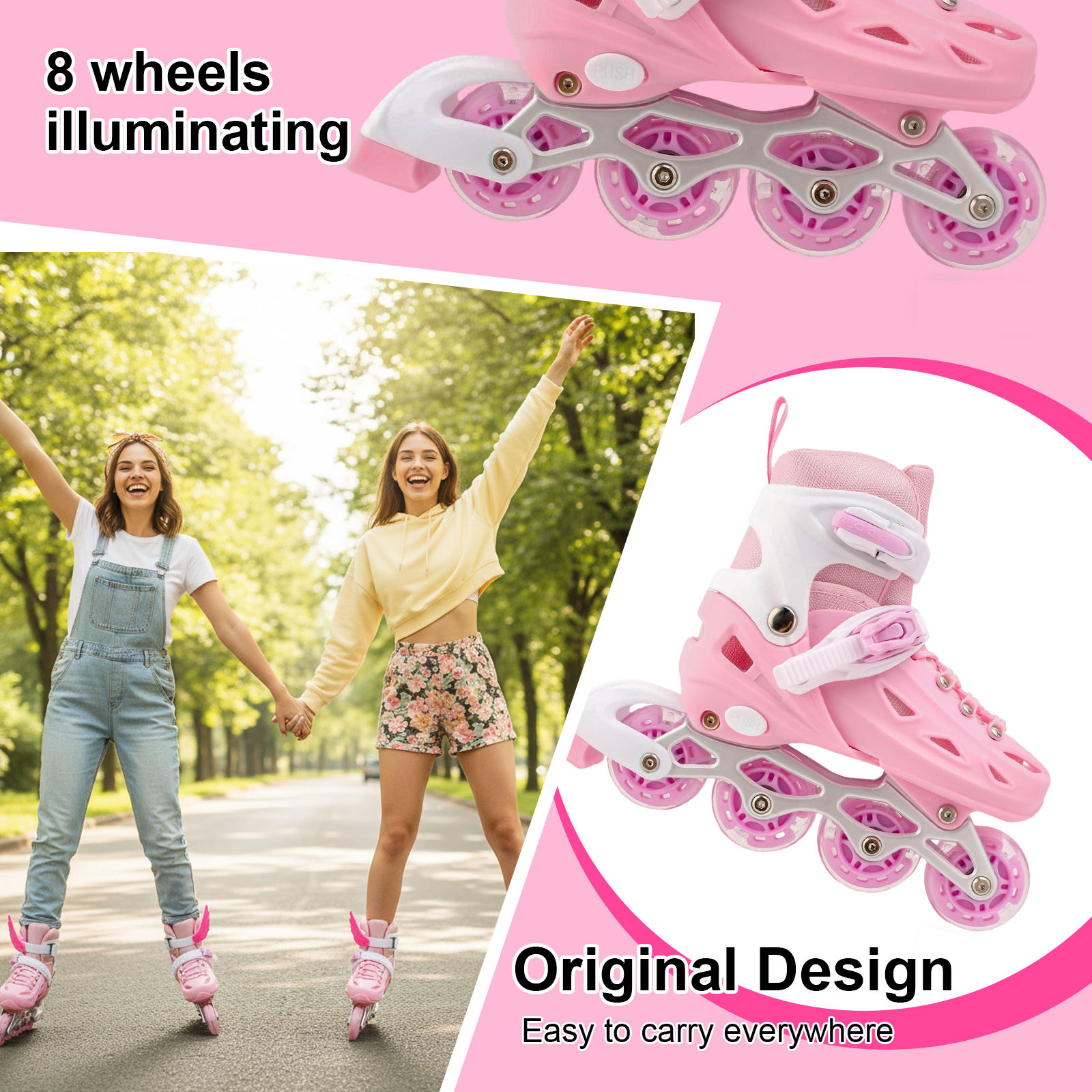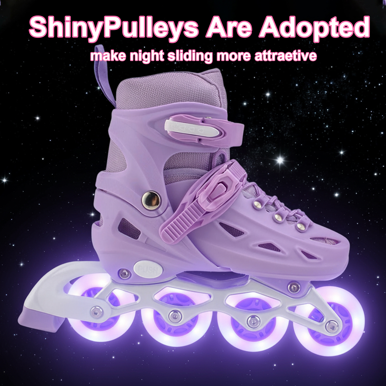 pink no flash wheelblue no flash wheelpurple no flash wheelupgrade pink flash wheelupgrade blue flash wheelupgrade purple flash wheelA pair of standard, non-shiny, elegant pink shoesStandard style without sparkle - a pair of lilac purple shoesStandard style without sparkle - a pair of sky blue shoesDouble buckle upgraded PU all-flash - a pair of elegant pink shoesDouble buckle upgraded PU all-flash - a pair of lilac purple shoesDouble buckle upgraded PU all-flash - a pair of sky blue shoes