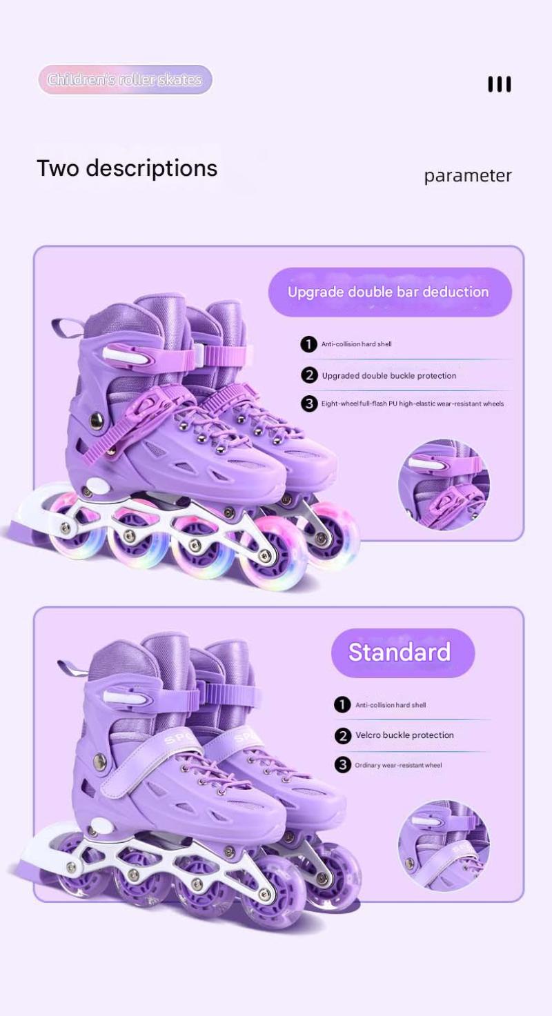 Blue standard non-flash backpack set--(including backpack   helmet   protective gear)Pink standard non-flash backpack set--(including backpack   helmet   protective gear)Purple standard non-flash backpack set--(including backpack   helmet   protective gear)Blue upgraded buckle pu full flash backpack set--(including backpack   helmet   protective gear)Pink upgraded buckle pu full flash backpack set--(including backpack   helmet   protective gear)Purple upgraded buckle pu full flash backpack set--(including backpack   helmet   protective gear)