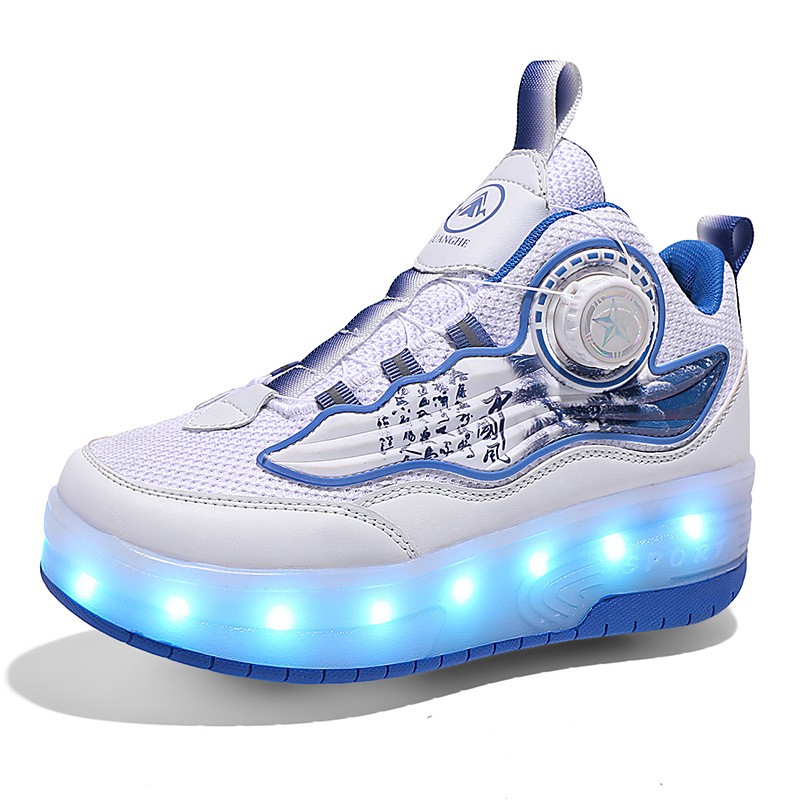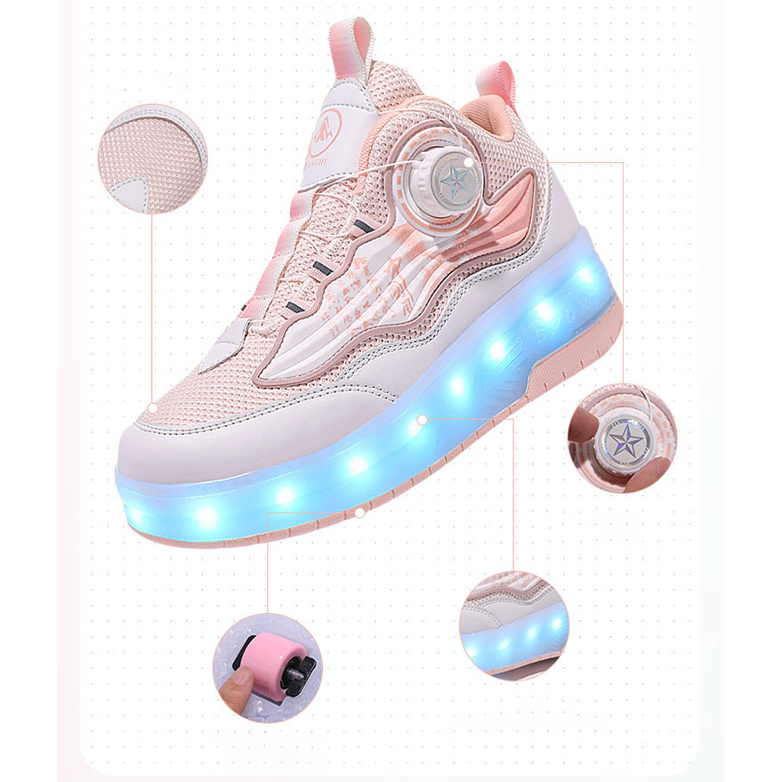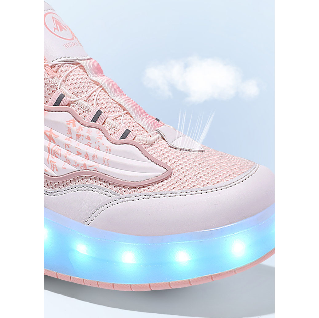Mesh Fabric & Thermo Plastic Rubber Children Wheels Shoes hardwearing & with LED lights & anti-skidding & breathable Pair