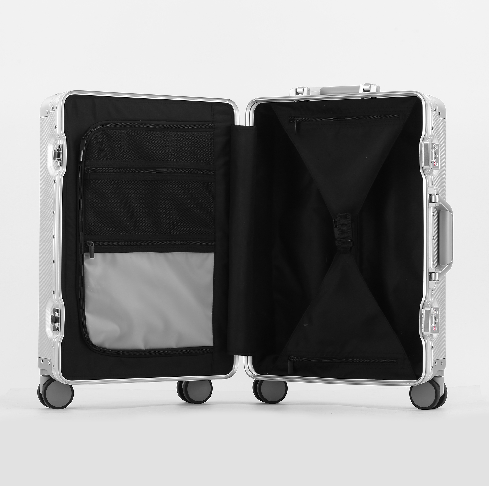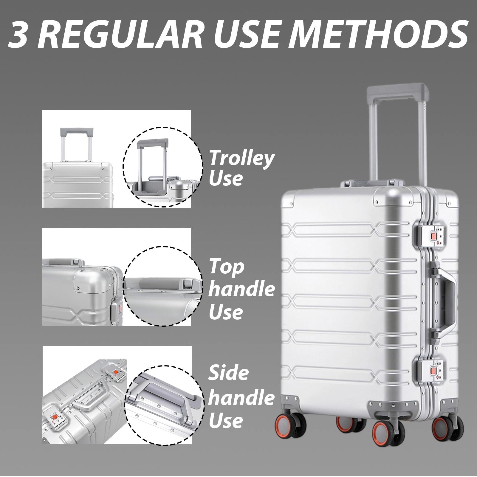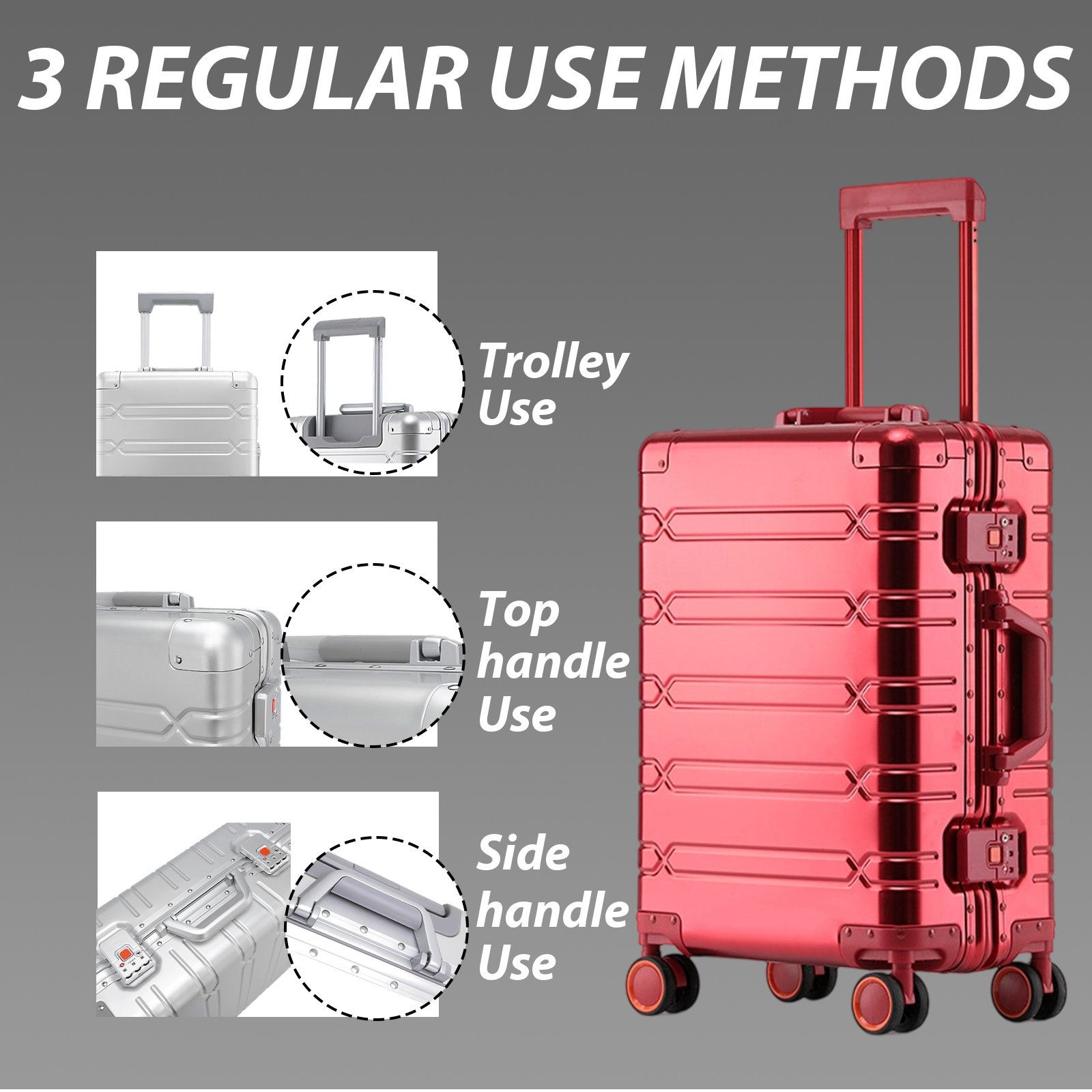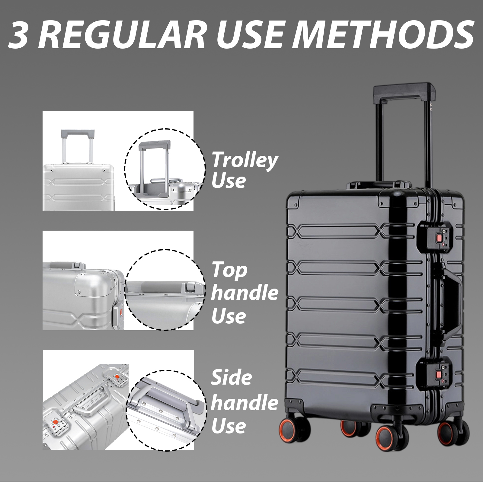 Metal & Aluminium Alloy Suitcase with password lock & hardwearing & waterproof Polyester Peach Skin PC
