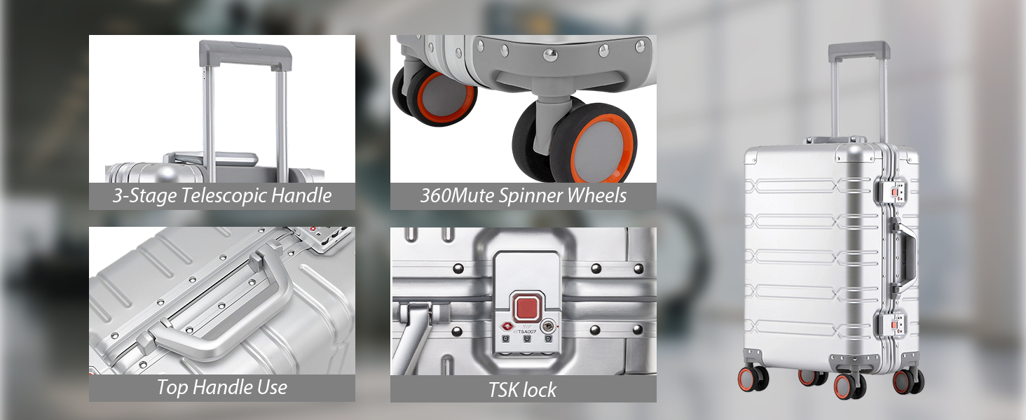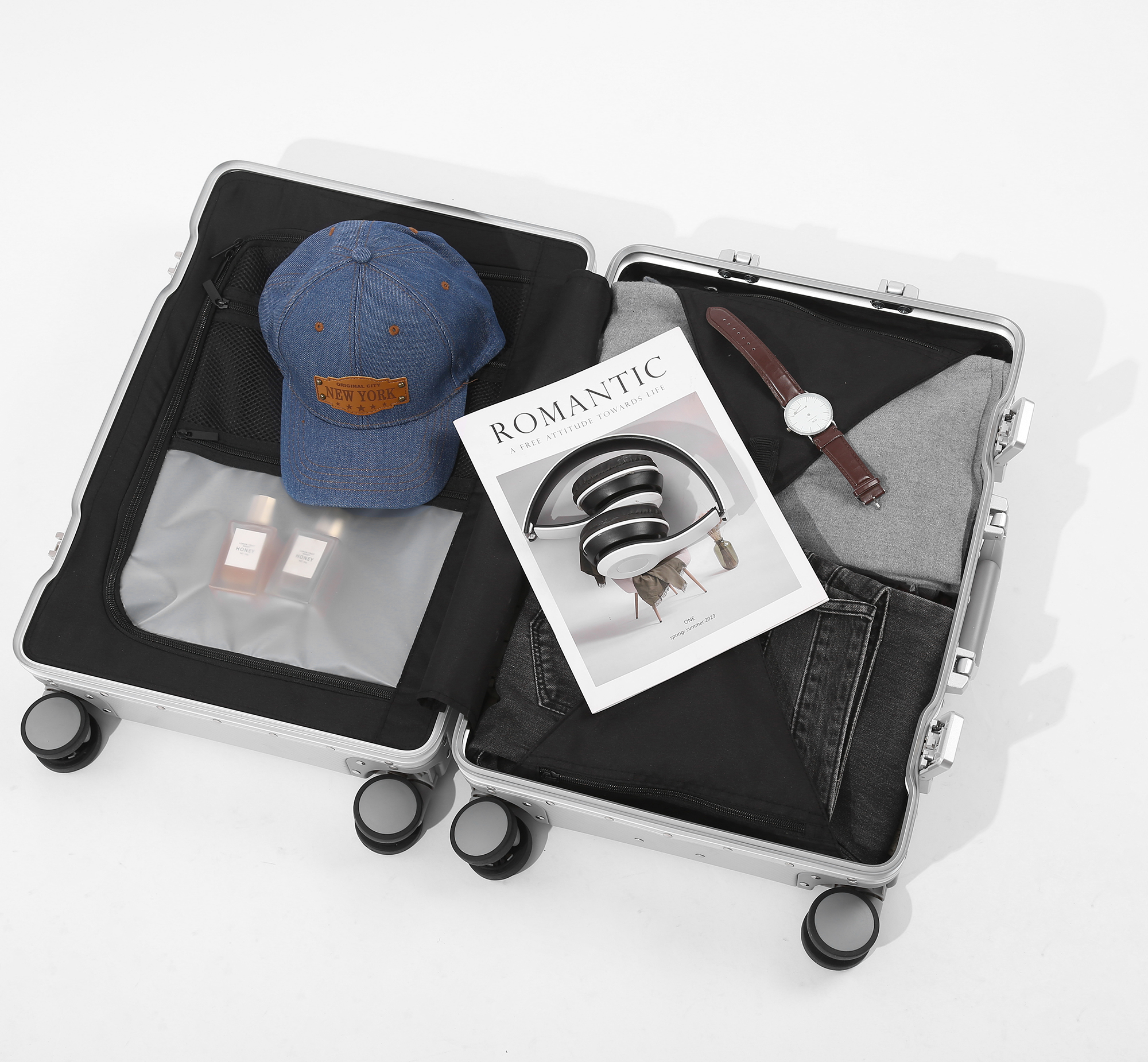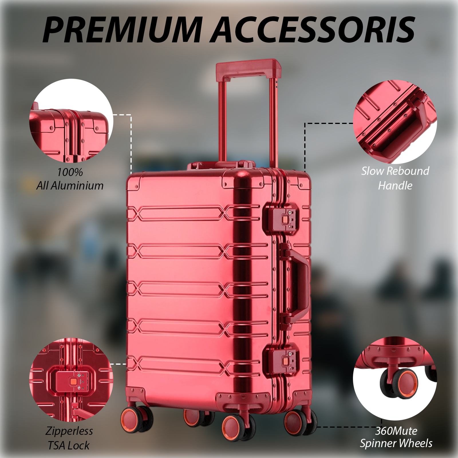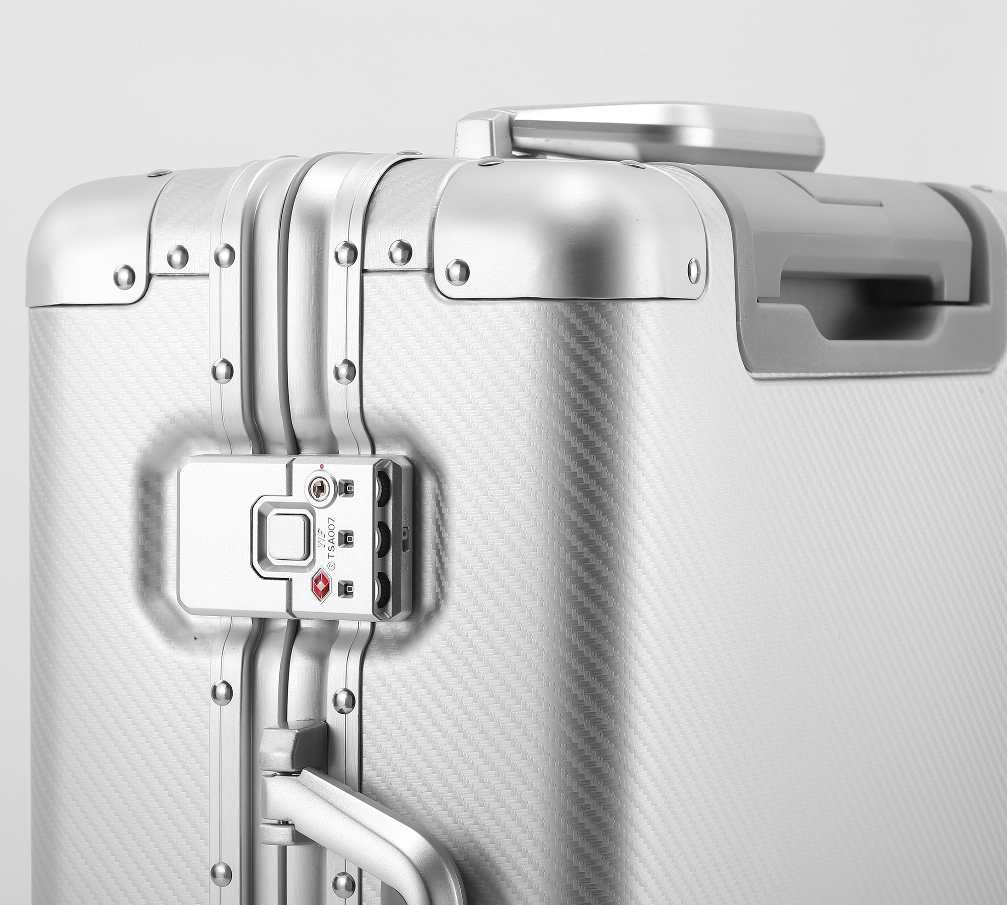 Metal & Aluminium Alloy Suitcase with password lock & hardwearing & waterproof Polyester Peach Skin PC